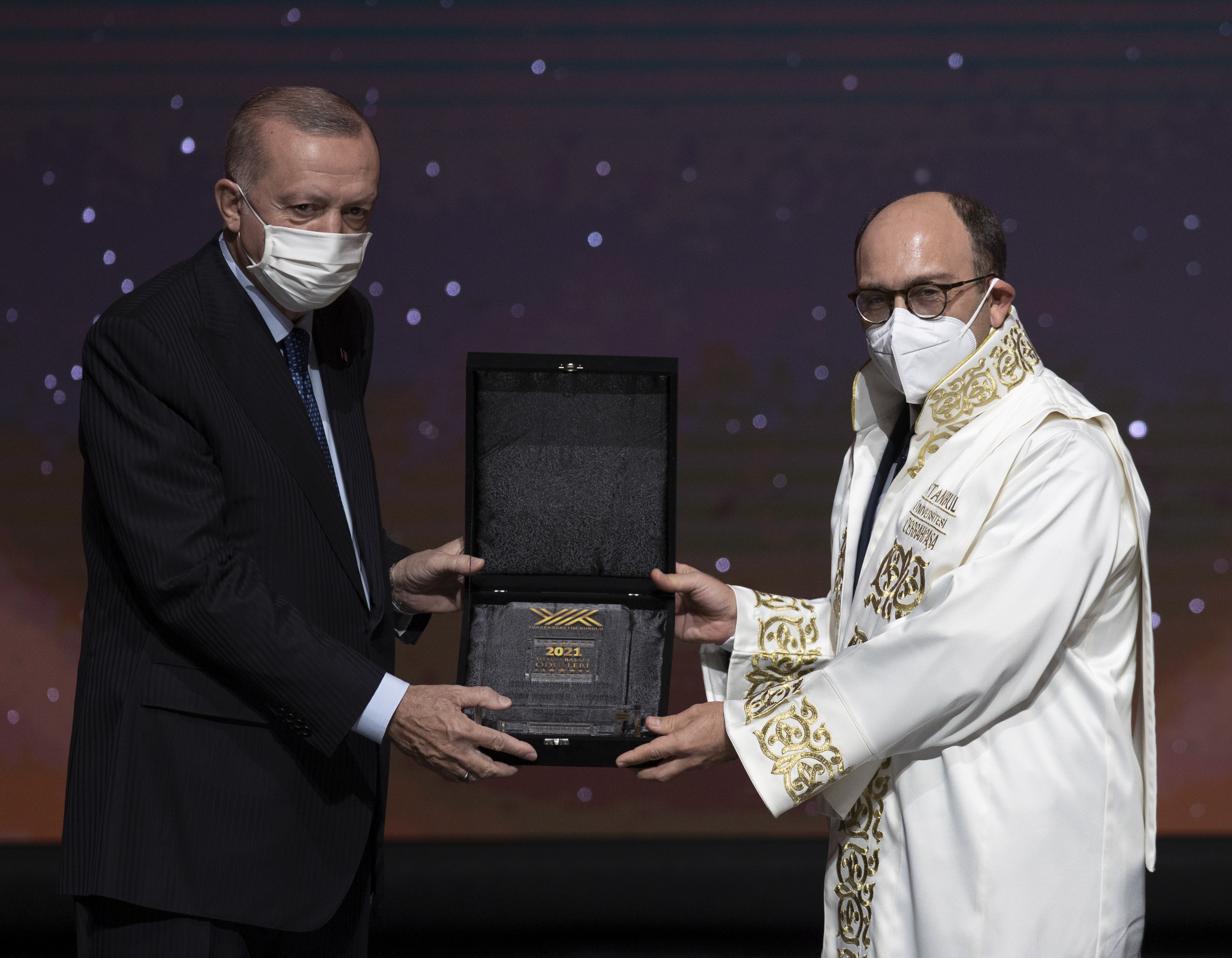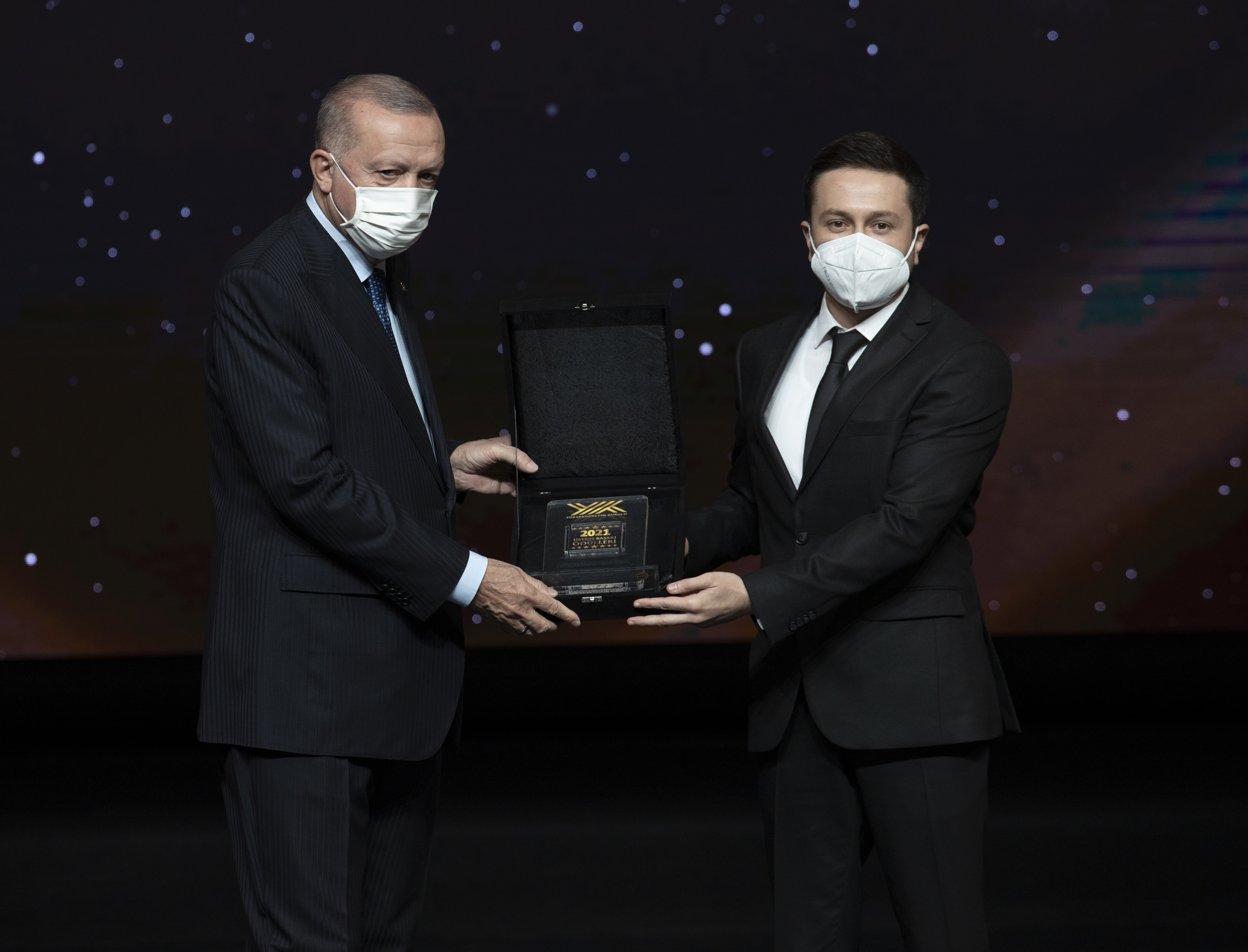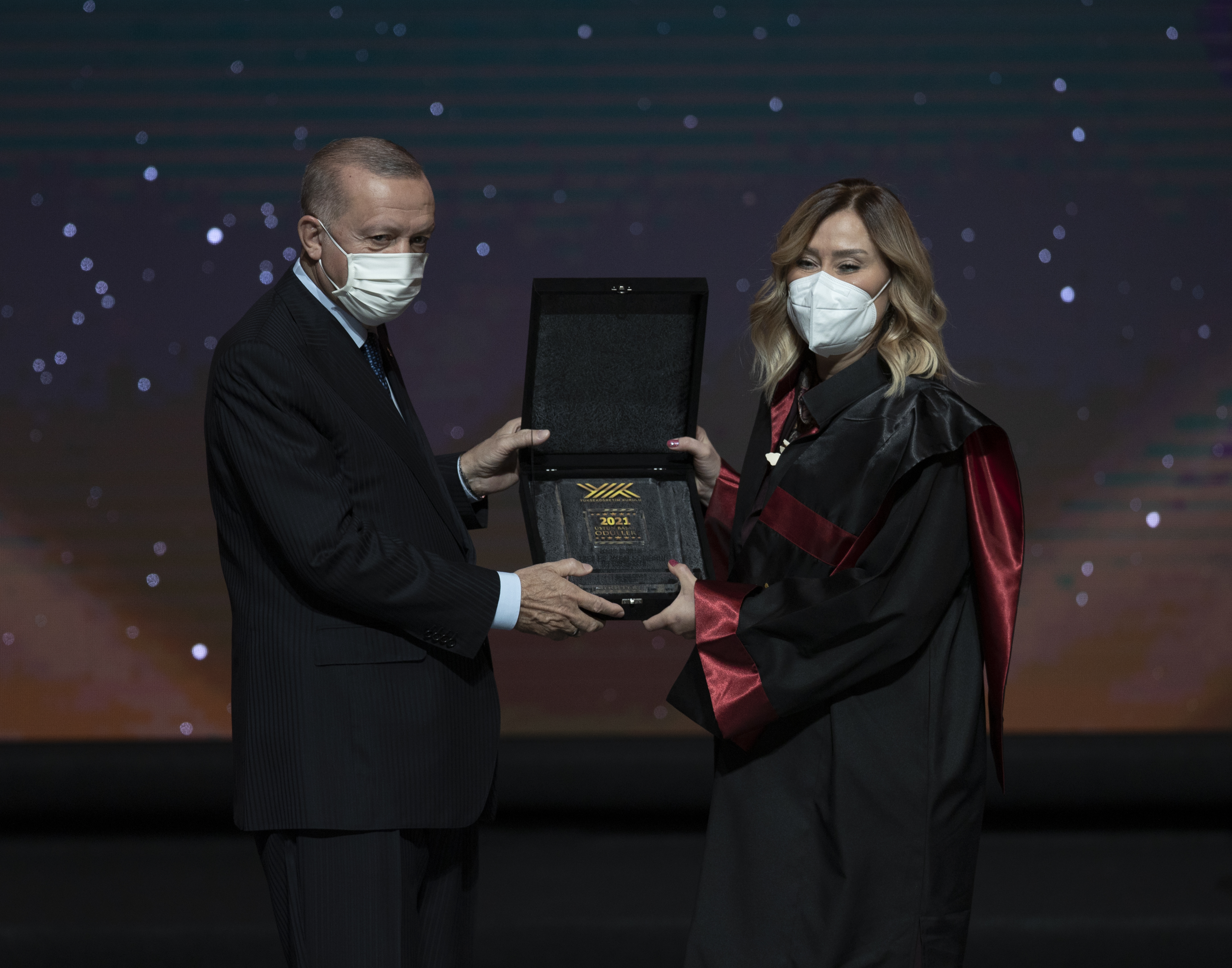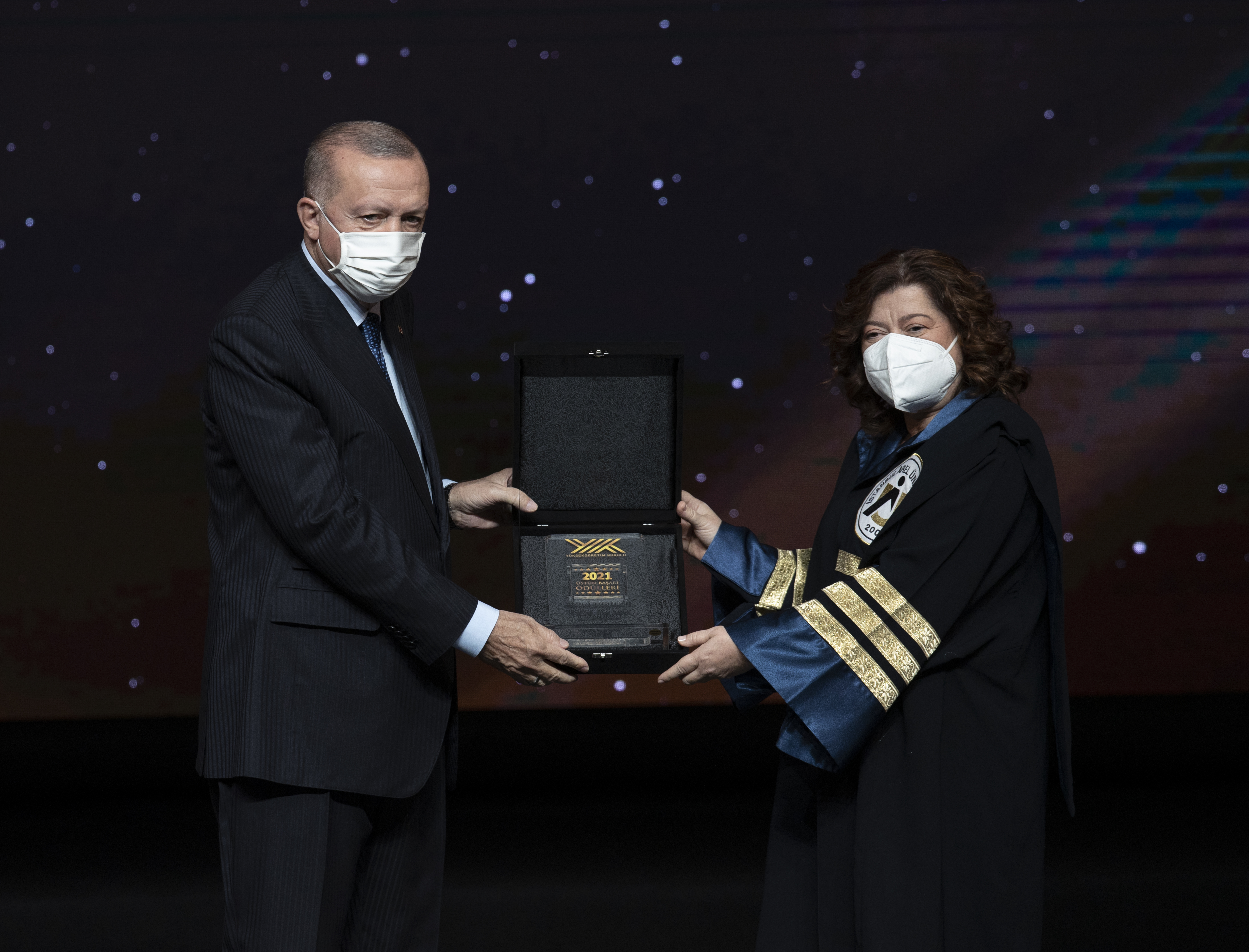 Cumhurbaşkanı Erdoğan, hitabının ardından YÖK Üstün Başarı Ödüllerini almaya hak kazanlara verdi.