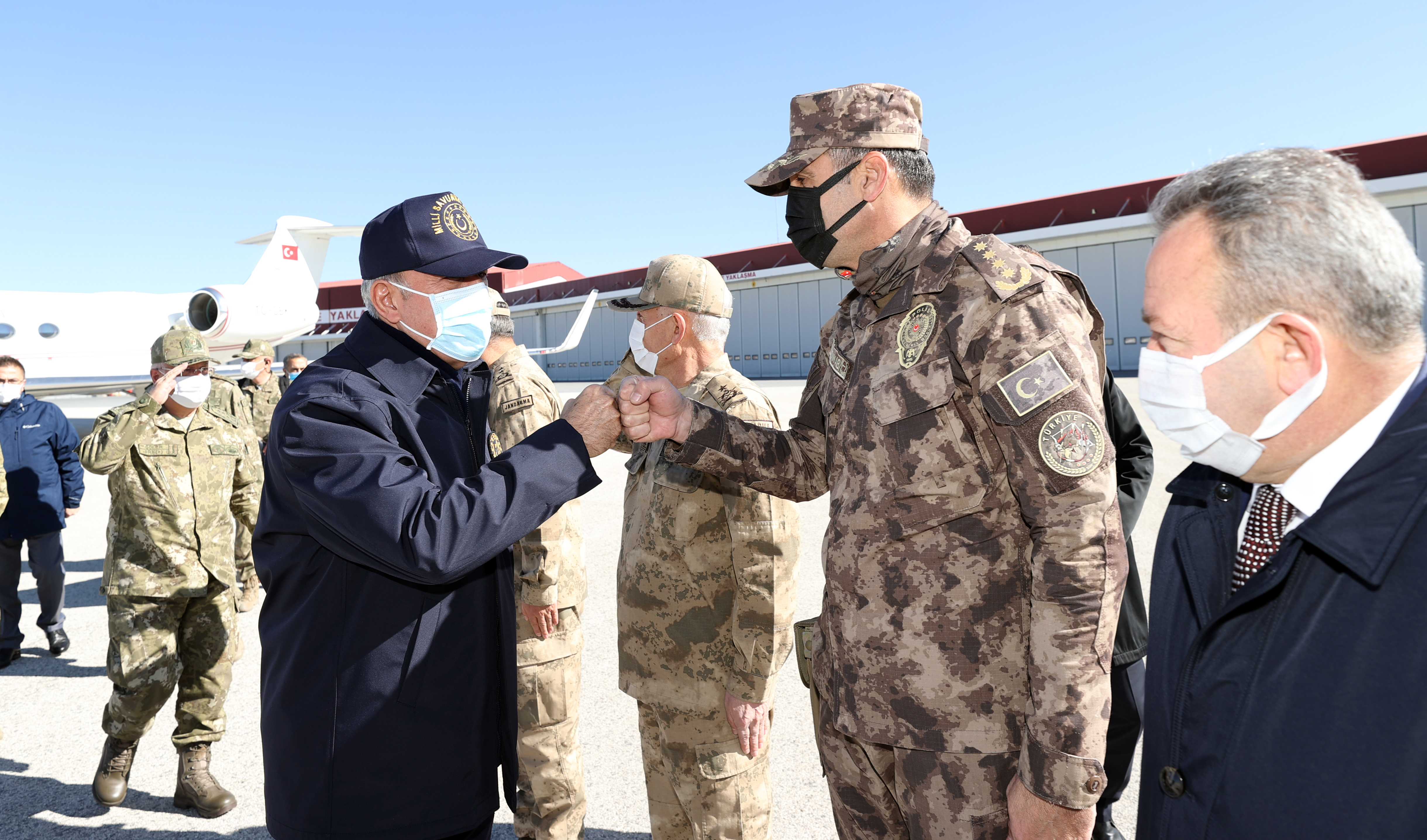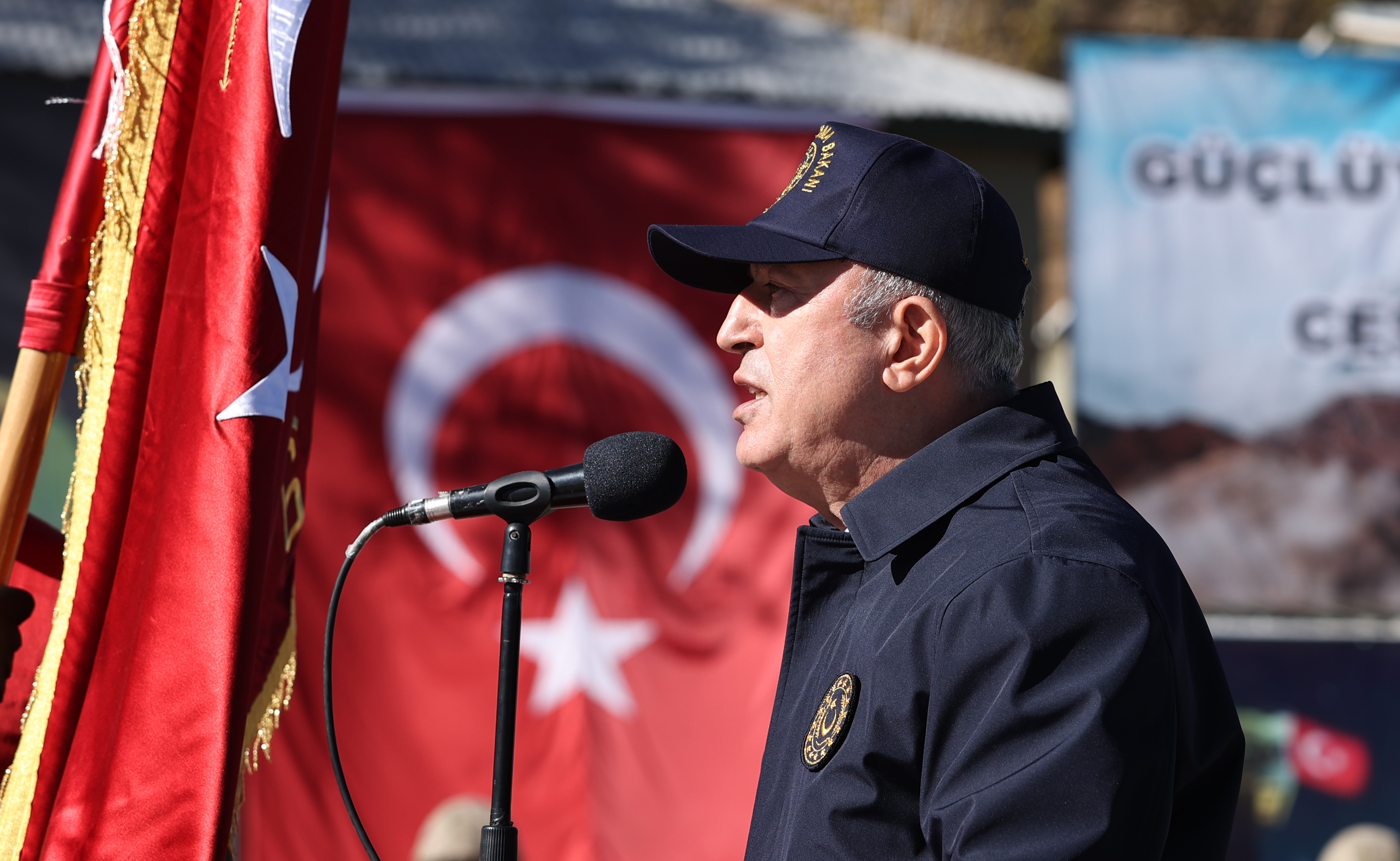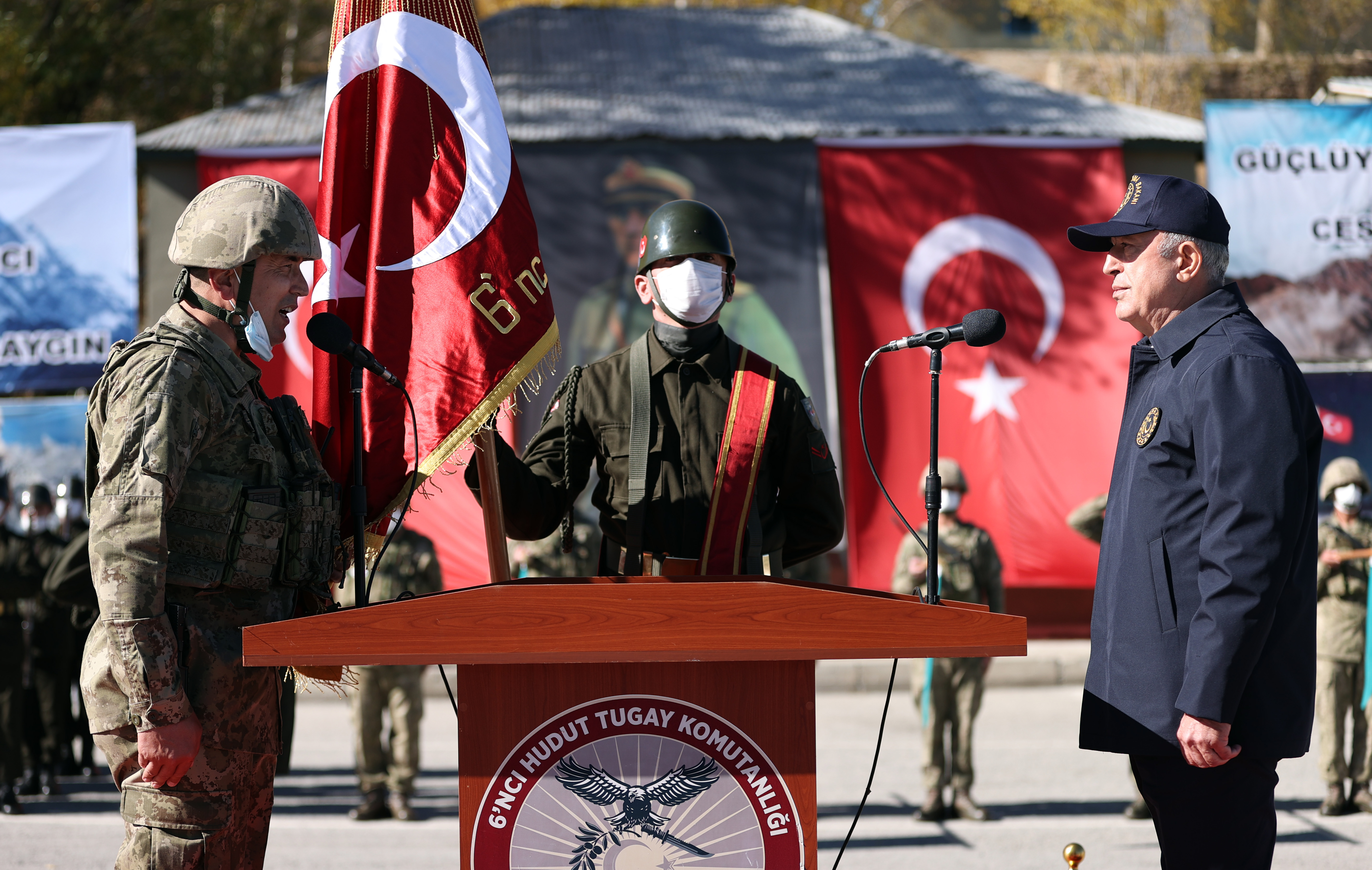 Millî Savunma Bakanı Akar'ın sancağı, 6. Hudut Tugay Komutanı Tuğgeneral İlker Ertuğrul'a tesliminin ardından Cumhurbaşkanı Erdoğan, telefondan Mehmetçiğe hitap etti.