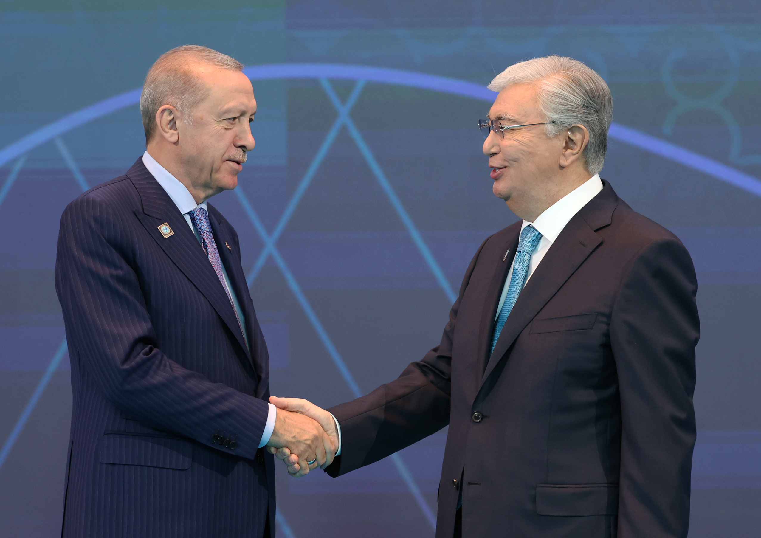 Cumhurbaşkanı Erdoğan, Kazakistan Cumhurbaşkanı Tokayev'in, Şanghay İşbirliği Örgütü 24'üncü Devlet Başkanları Zirvesi kapsamında, liderler onuruna Bağımsızlık Sarayı’nda verdiği resmî yemeğe katıldı.