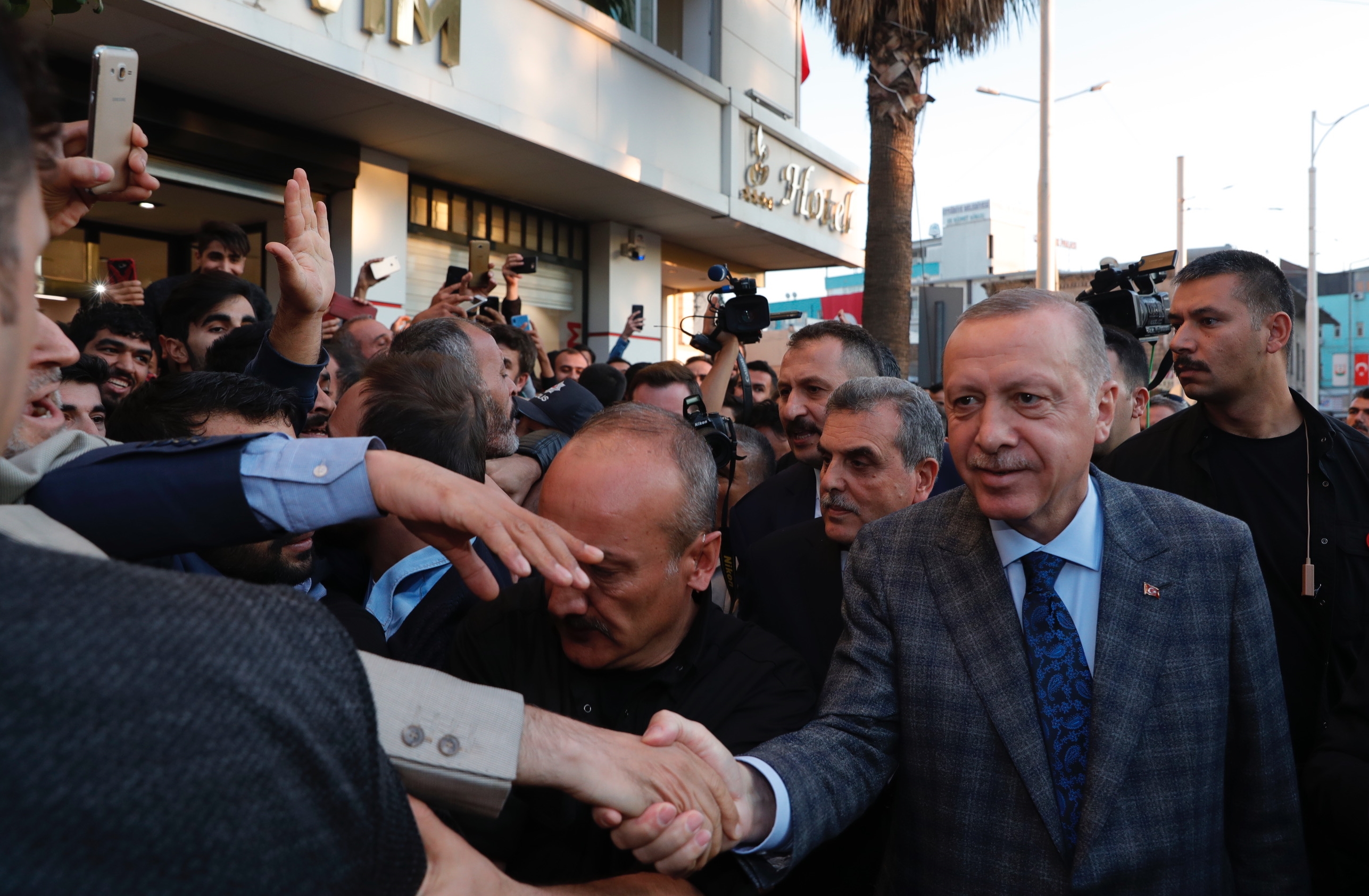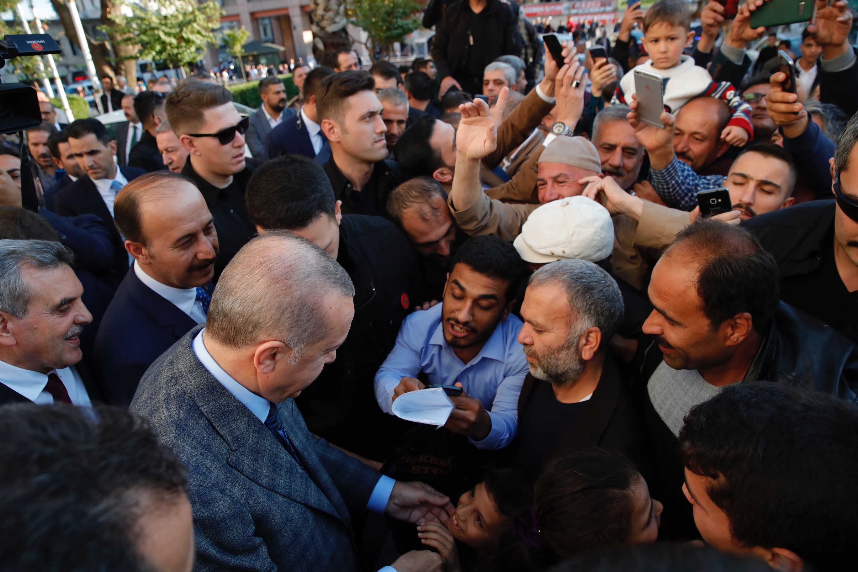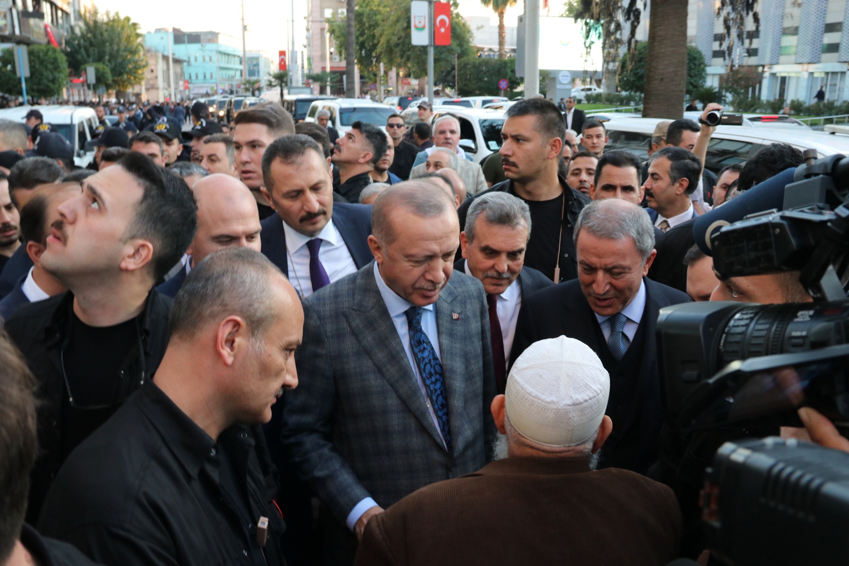 Çıkışta ise belediye binası çevresinde toplanan vatandaşların yanına giderek sohbet eden Erdoğan, kent merkezinde bir süre yürüyüş yaptı.