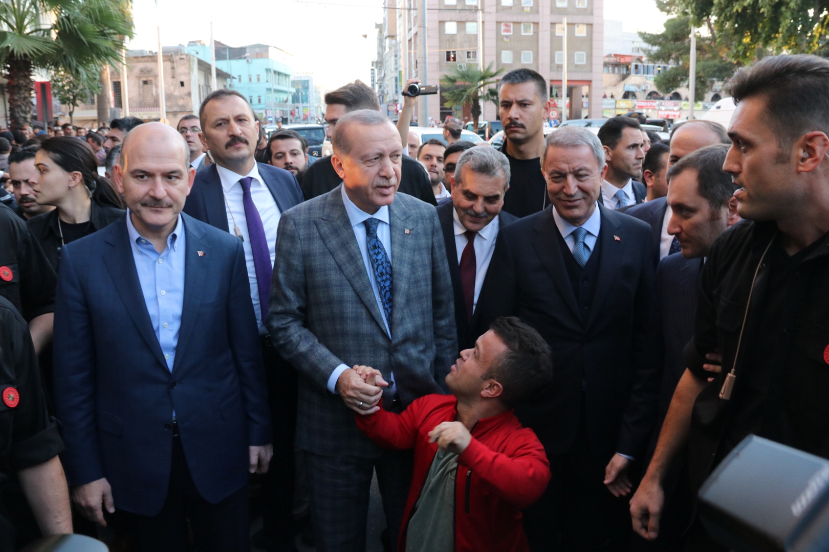 Cumhurbaşkanı Erdoğan, kentteki Kara Kuvvetleri Komutanlığı İleri Müşterek Harekat Merkezi'ni ziyaretinin ardından Şanlıurfa Valiliğine geçti.