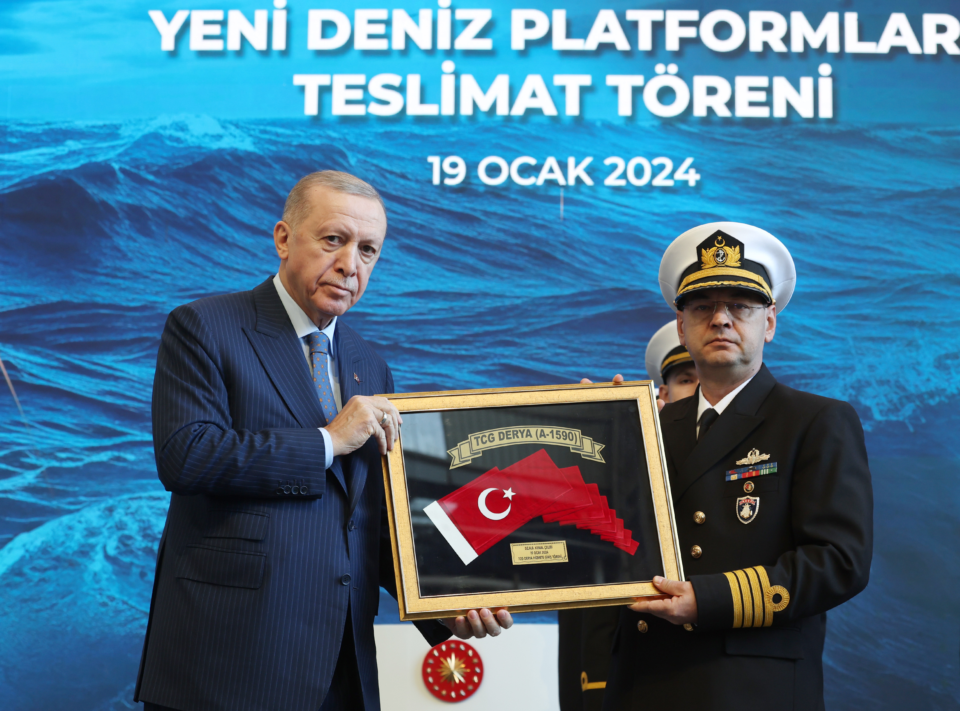 Programın ardından Cumhurbaşkanı Erdoğan'a, Deniz Kuvvetlerine teslimi gerçekleştirilen yeni deniz platformlarının bulunduğu şilt ile Türk Deniz Kuvvetlerinin yerli ve millî imkanlarla üretilen ilk fırkateyni TCG İstanbul'un maketi ve TCG Derya Gemisi'nin inşasında emek veren personelin imzalarının yer aldığı tablo takdim edildi.