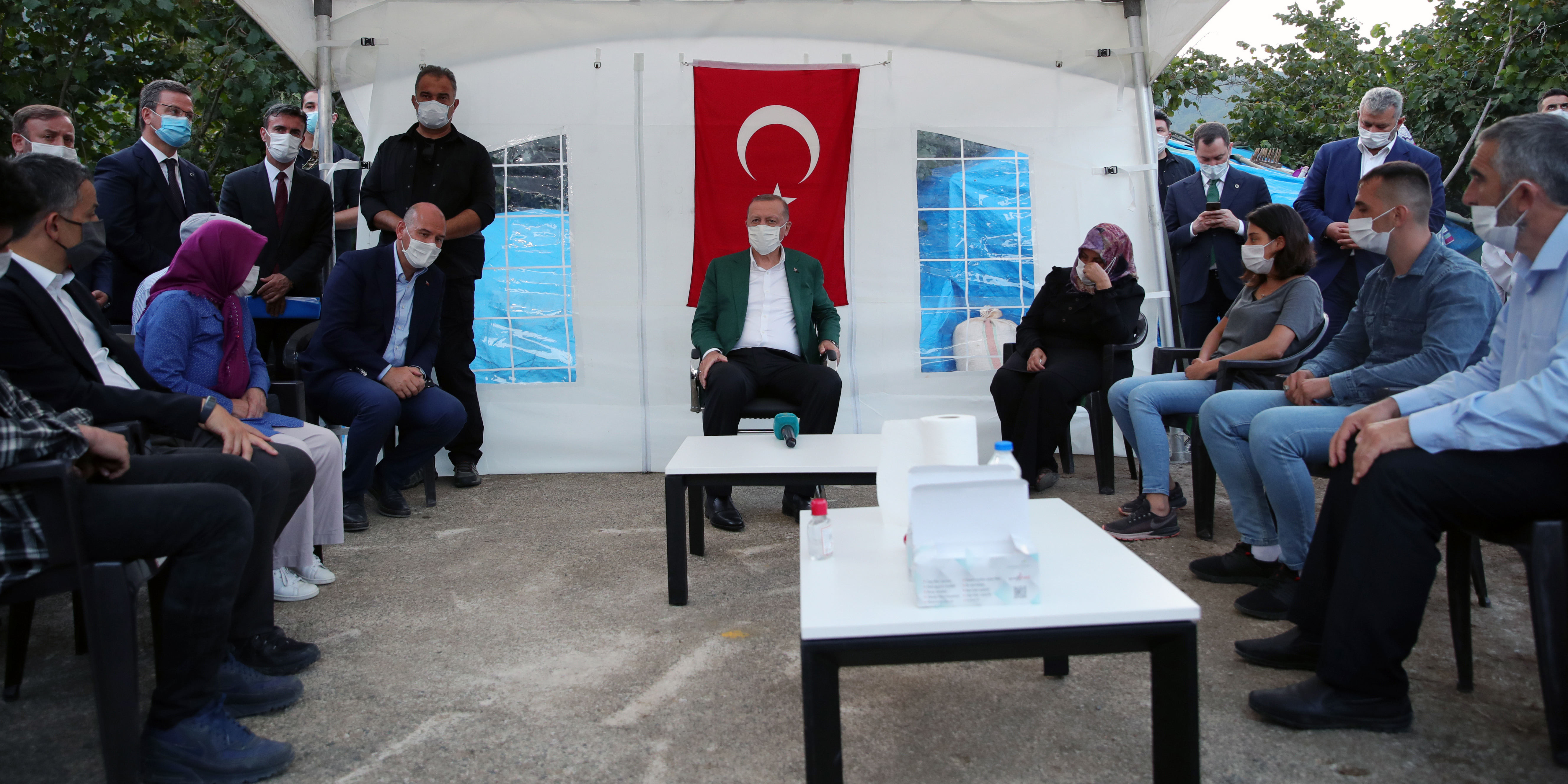 Ziyarette Cumhurbaşkanı Yardımcısı Fuat Oktay, Aile, Çalışma ve Sosyal Hizmetler Bakanı Zehra Zümrüt Selçuk, İçişleri Bakanı Süleyman Soylu, Ulaştırma ve Altyapı Bakanı Adil Karaismailoğlu, Tarım ve Orman Bakanı Bekir Pakdemirli'nin yanı sıra öteki yetkililer yer aldı.