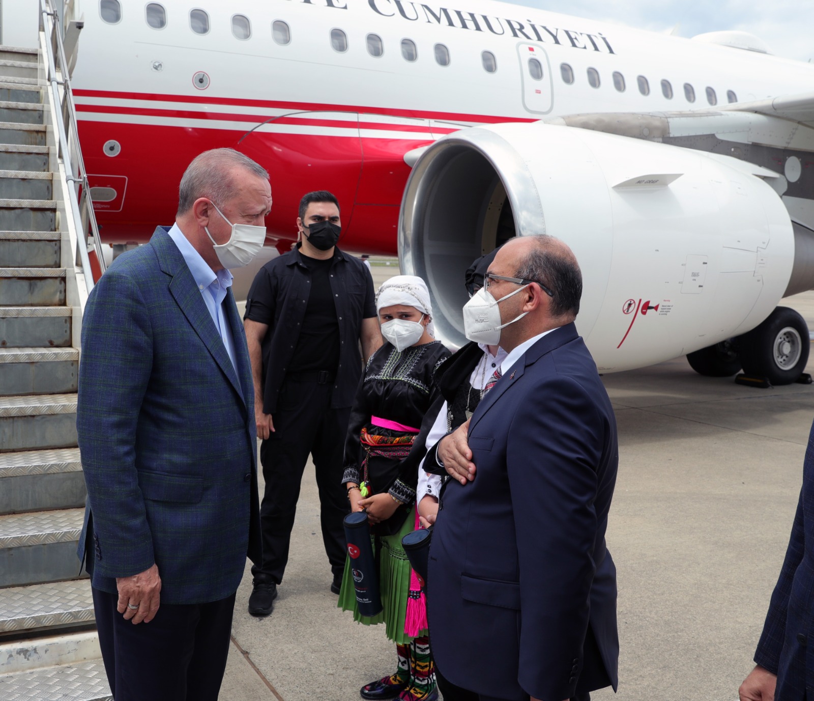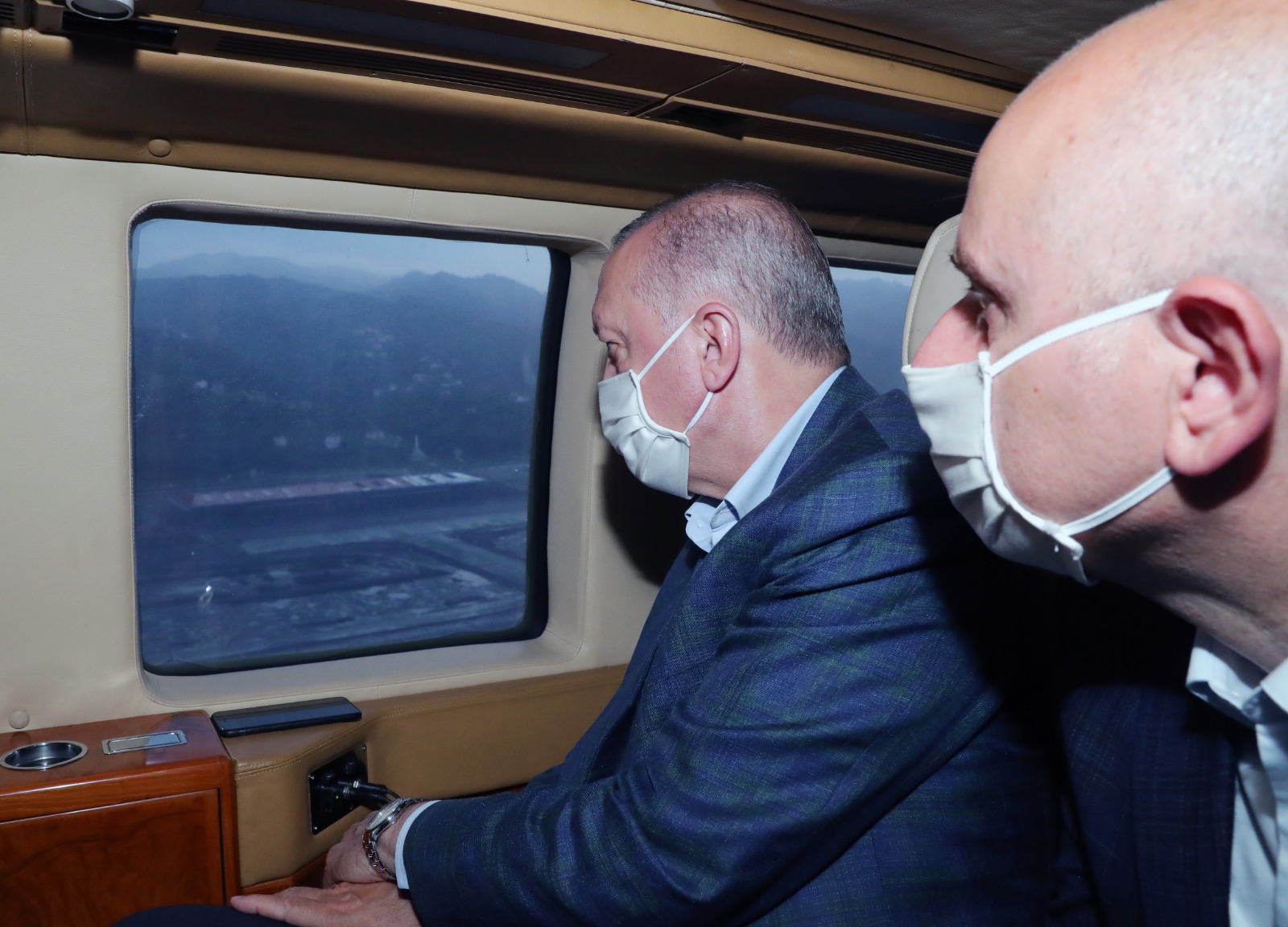 Cumhurbaşkanı Erdoğan, Rize'deki incelemelerinin ardından Pazar ilçesinde inşası süren havalimanı hakkında Ulaştırma ve Altyapı Bakanı Adil Karaismailoğlu'ndan bilgi aldı.