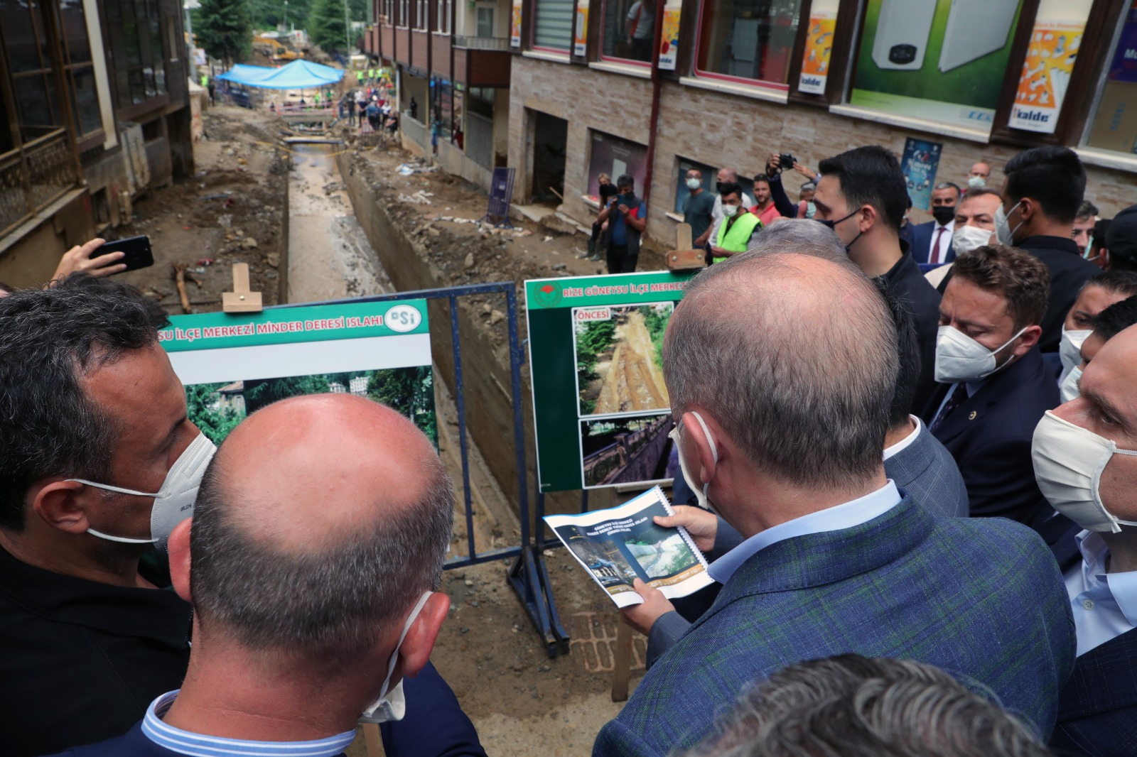 Vatandaşların ihtiyacı doğrultusunda 5 çay evi yapma kararı aldıklarını da aktaran Cumhurbaşkanı Erdoğan, "İnşallah bir sene içinde konutlarımızı tamamlayarak vatandaşlarımızı güvenli yuvalarına kavuşturacağız. Evleri taşkın riski altında olan vatandaşlarımızı da inşa edeceğimiz konutlarımıza taşıyacağız." dedi.
