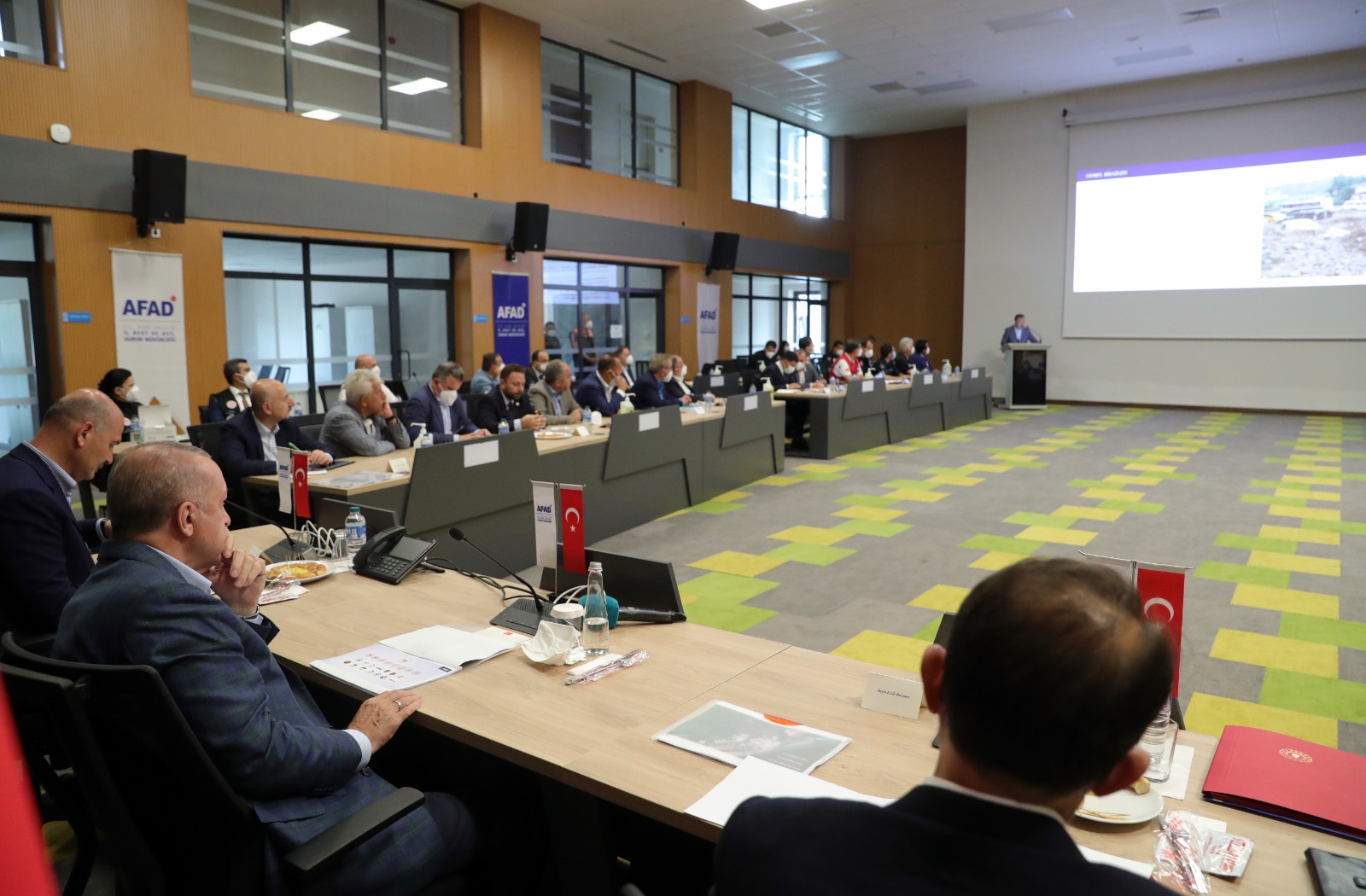 Cumhurbaşkanı Erdoğan, daha sonra Rize-Güneysu kara yolu üzerindeki Rize AFAD Koordinasyon Merkezine geçti. Burada koordinasyon toplantısına başkanlık eden Cumhurbaşkanı Erdoğan, yapılan çalışmalar ve son duruma ilişkin yetkililerden bilgi aldı.