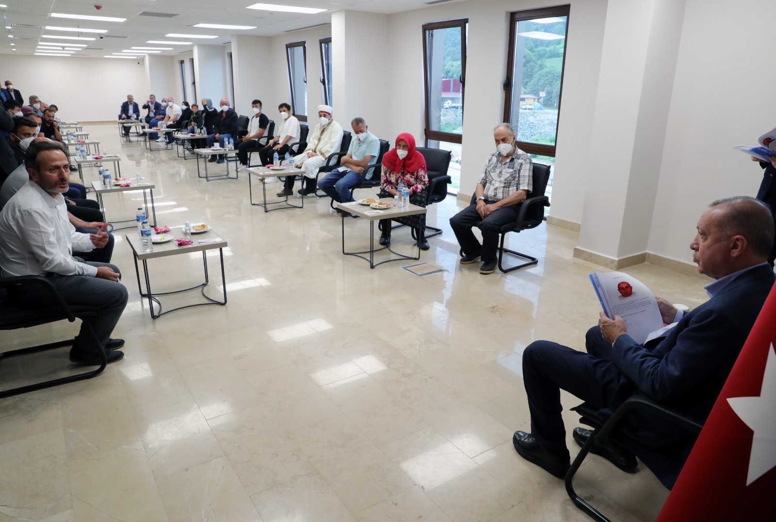 Cumhurbaşkanı Erdoğan, ayrıca Merkez'de afette hayatını kaybedenlerin yakınlarıyla bir araya gelerek, kendilerine başsağlığı dileğinde bulundu.