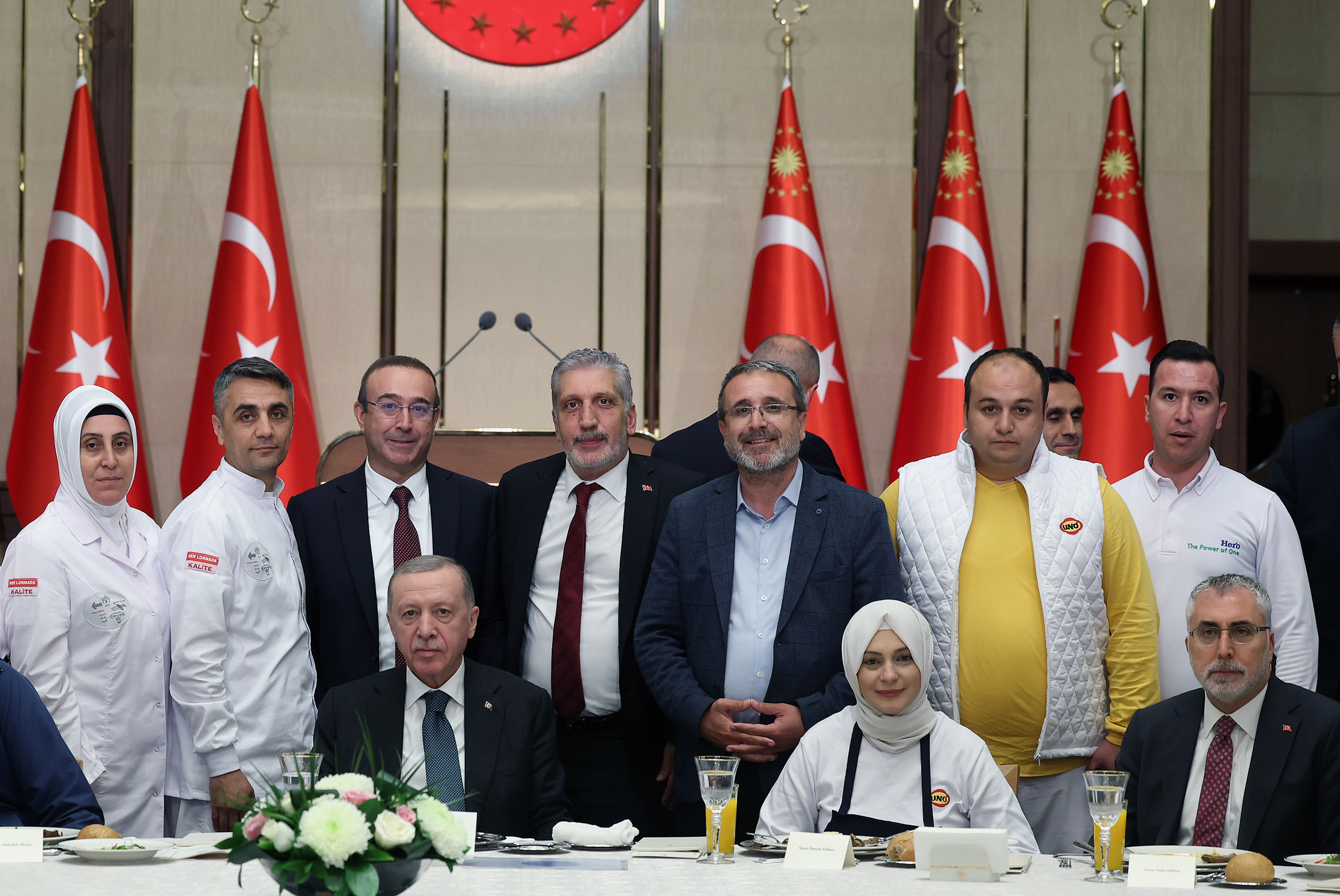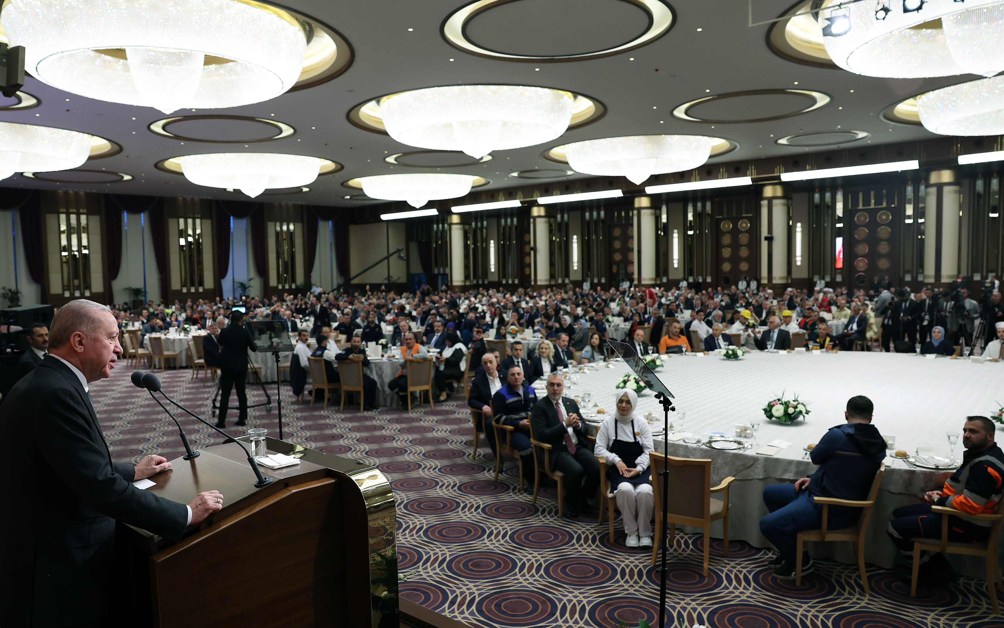 Kendilerinin de hem Meclis toplantılarına iştirak ederek hem de taraflarla farklı vesilelerle bir araya gelerek, gündemdeki konuları değerlendirdiklerini belirten Cumhurbaşkanı Erdoğan, "Çalışma hayatımıza dair kritik kararların arifesinde sizlerin görüşlerine başvurduk. Sizden gelen teklifler, tenkitler ve fikirler çerçevesinde meselelerimize çözüm yolları geliştirdik. Göreve geldiğimiz andan itibaren sürdürdüğümüz diyaloğu bugün de aynı yoğunlukla ve hassasiyetle devam ettiriyoruz." diye konuştu.