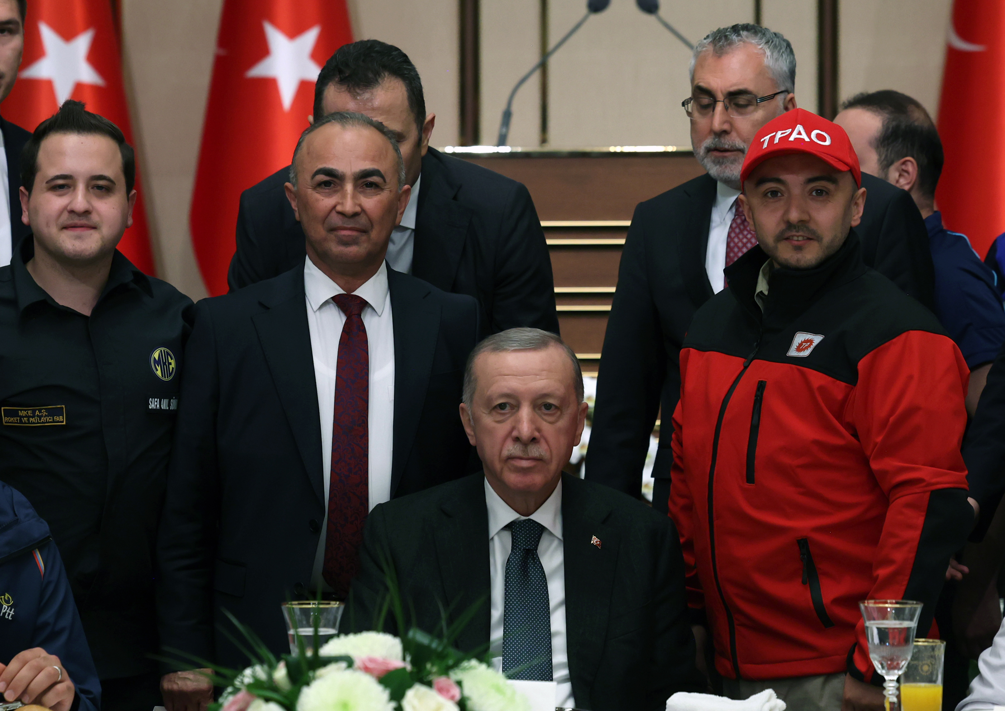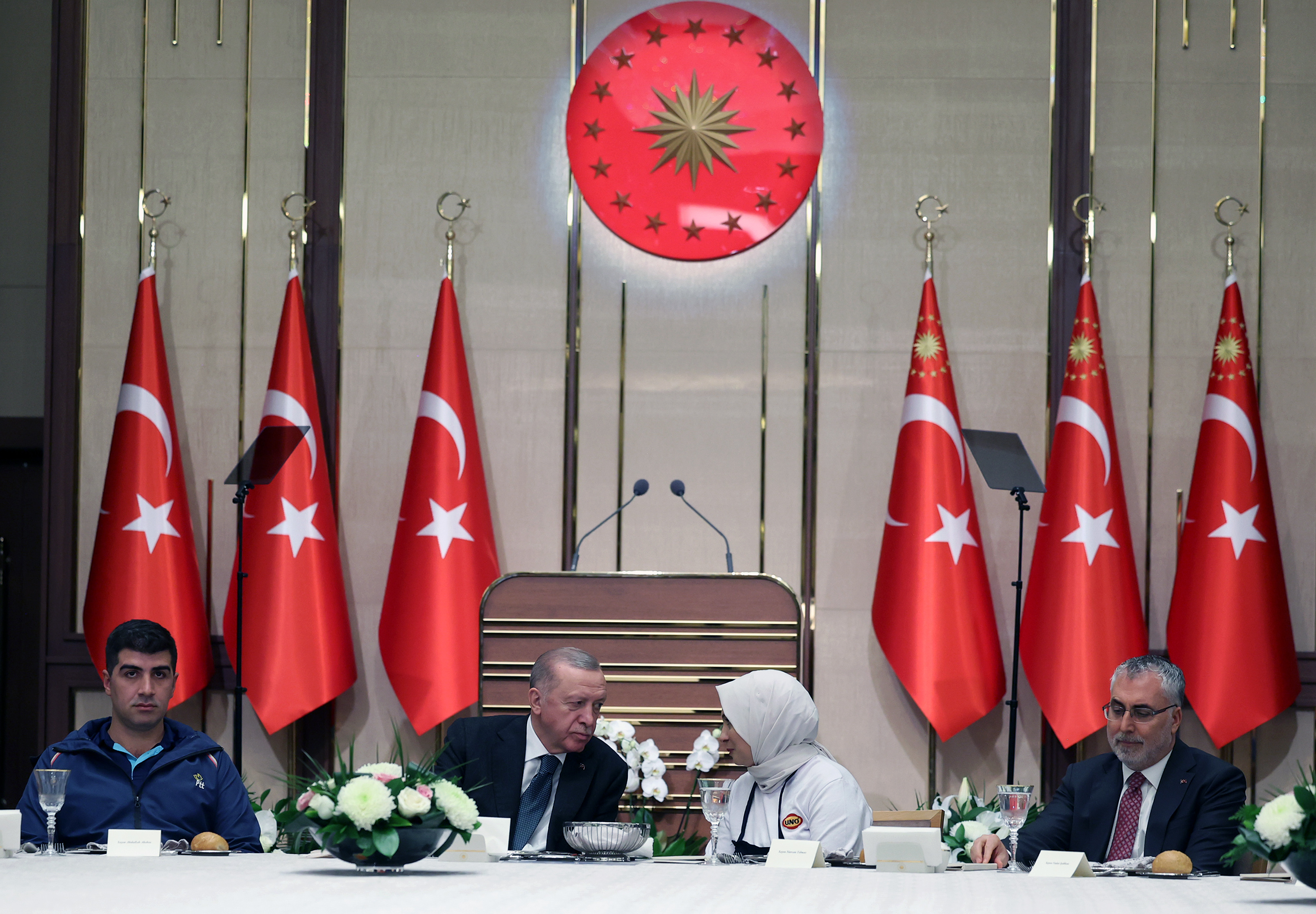 Cumhurbaşkanı Recep Tayyip Erdoğan, Cumhurbaşkanlığı Külliyesi Sergi Salonu'nda "Emeğin, Sendikal Örgütlenmenin ve İstihdamın Geleceği" temasıyla düzenlenen 13. Çalışma Meclisi Yemeğine katıldı.