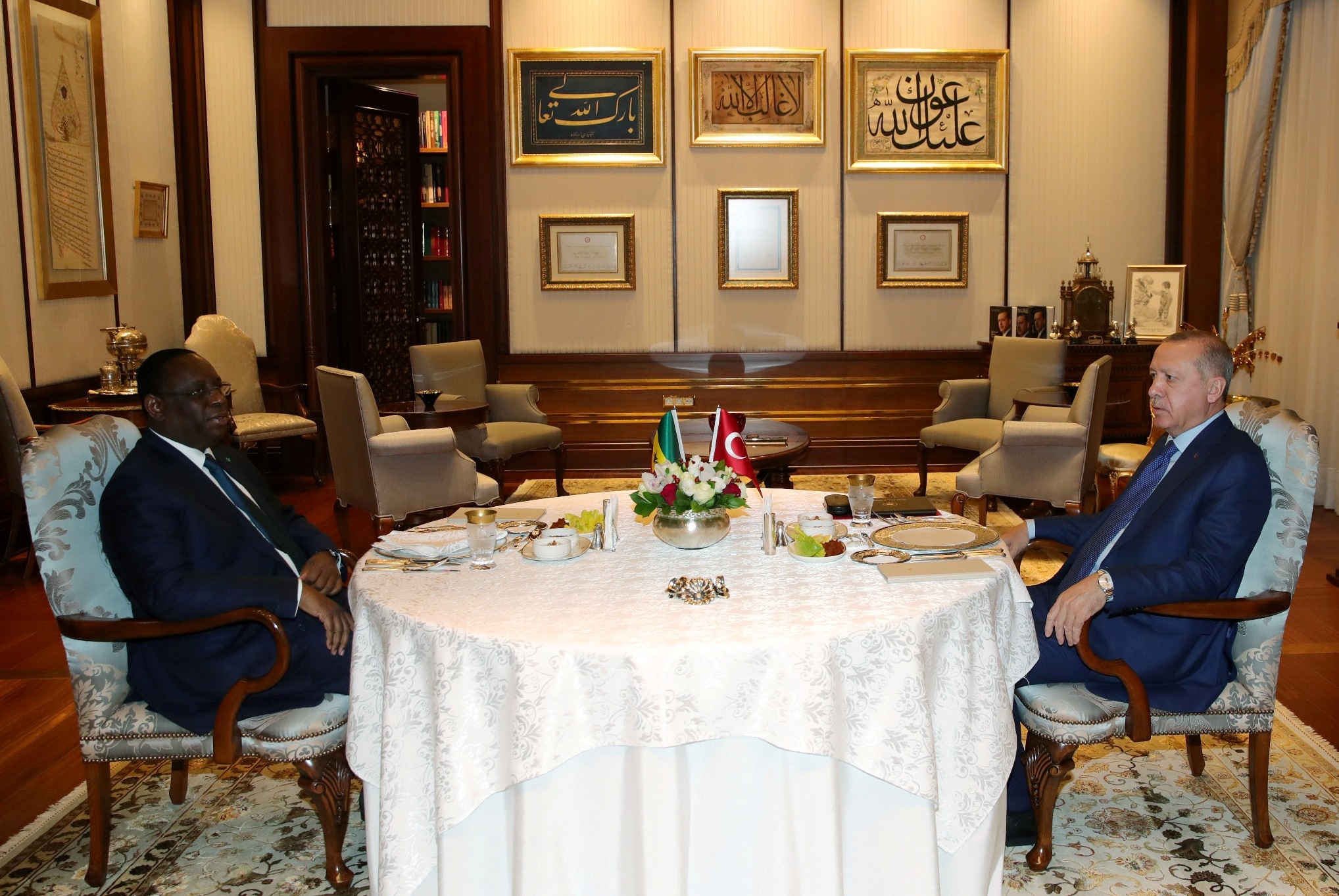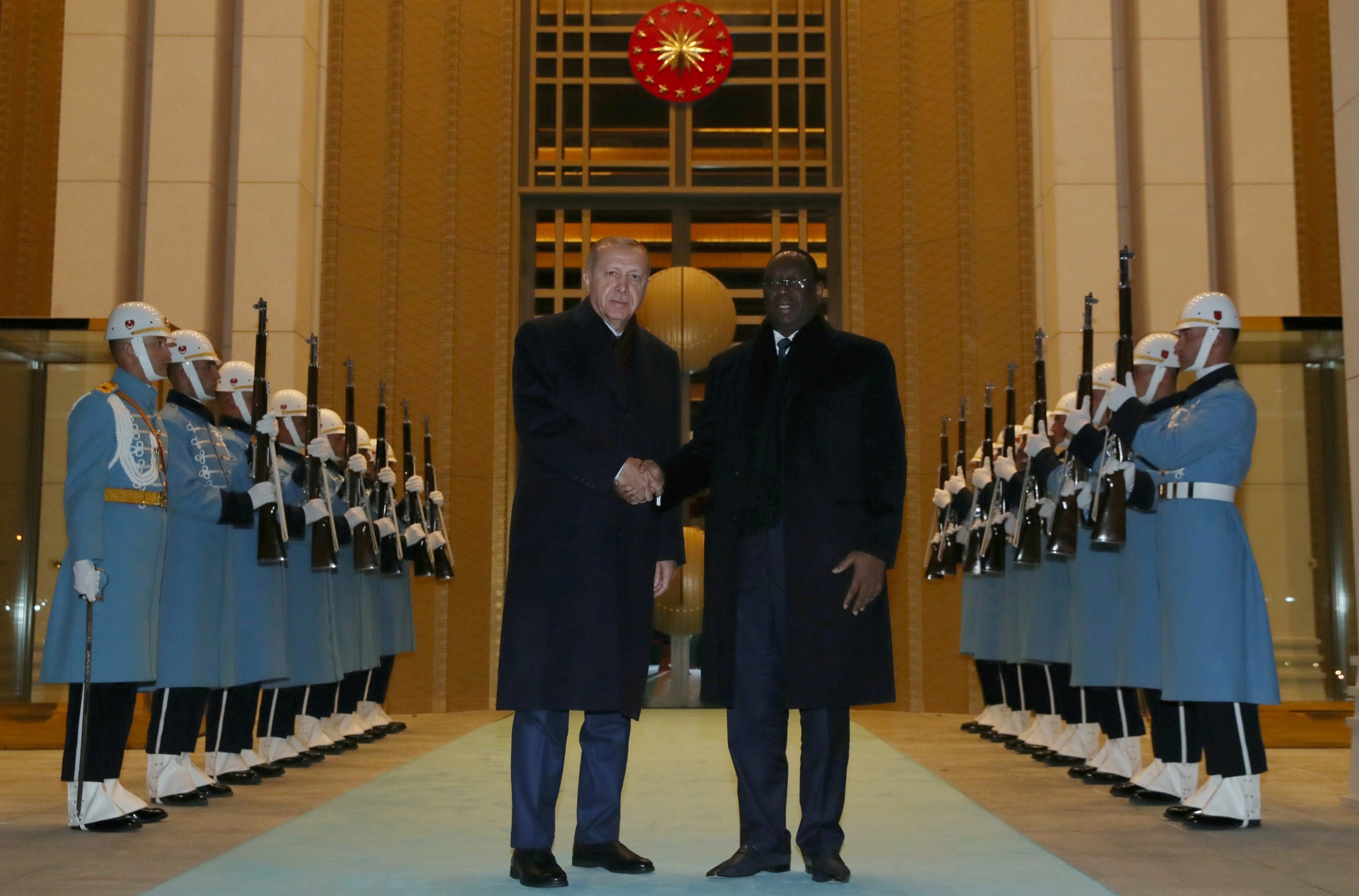 Senegal Cumhurbaşkanı Sall'i, Cumhurbaşkanlığı Külliyesi'ne gelişinde törenle karşılayan Erdoğan, daha sonra mevkidaşıyla bir araya geldi.