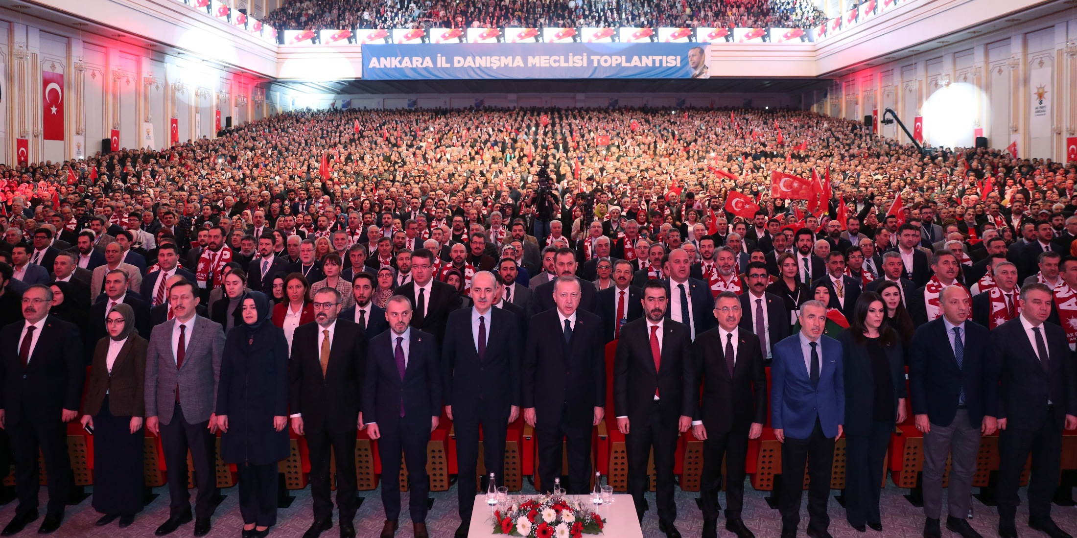 Toplantıda partililere hitap eden Cumhurbaşkanı Erdoğan, sözlerine, Türkiye'nin bağımsızlığı, milletin birliği, vatanın bütünlüğü, bayrağın gururla dalgalanması, ezanların ilanihaye semâlarda yankılanması için toprağa verilen tüm şehitlere Allah'tan rahmet dileyerek başladı.