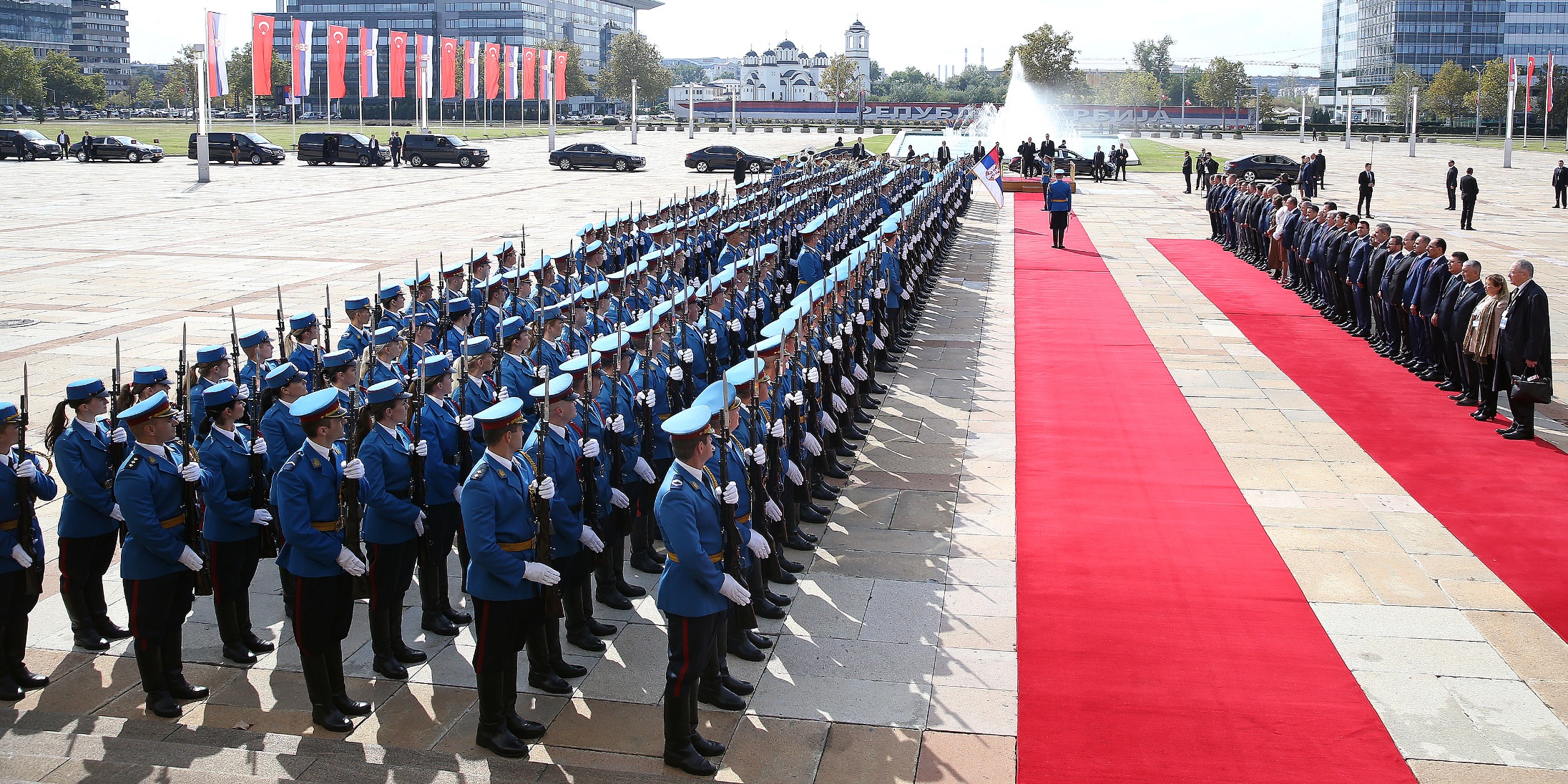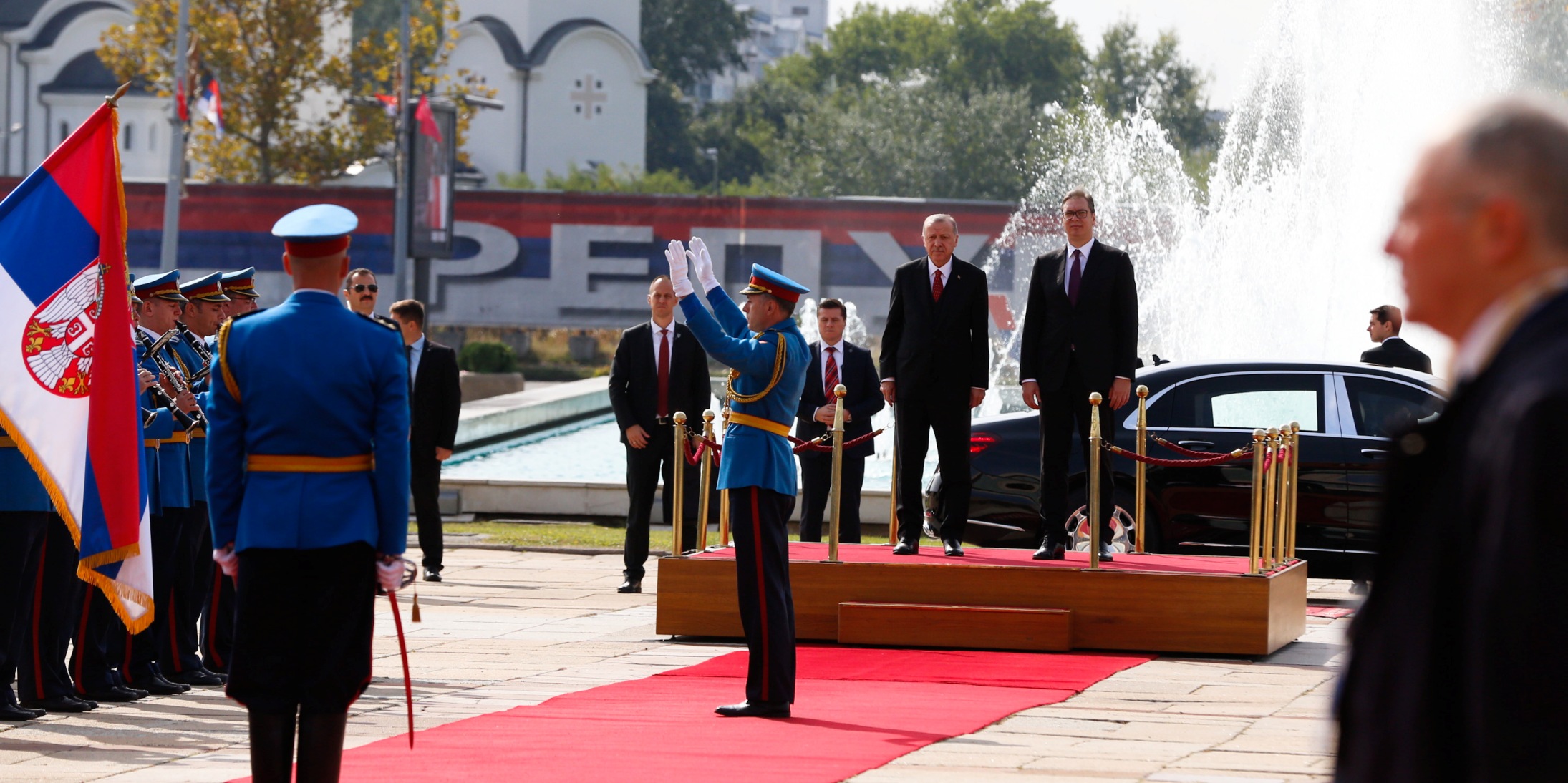 Cumhurbaşkanı Recep Tayyip Erdoğan, Sırbistan Cumhurbaşkanı Aleksandar Vucic tarafından resmi törenle karşılandı.