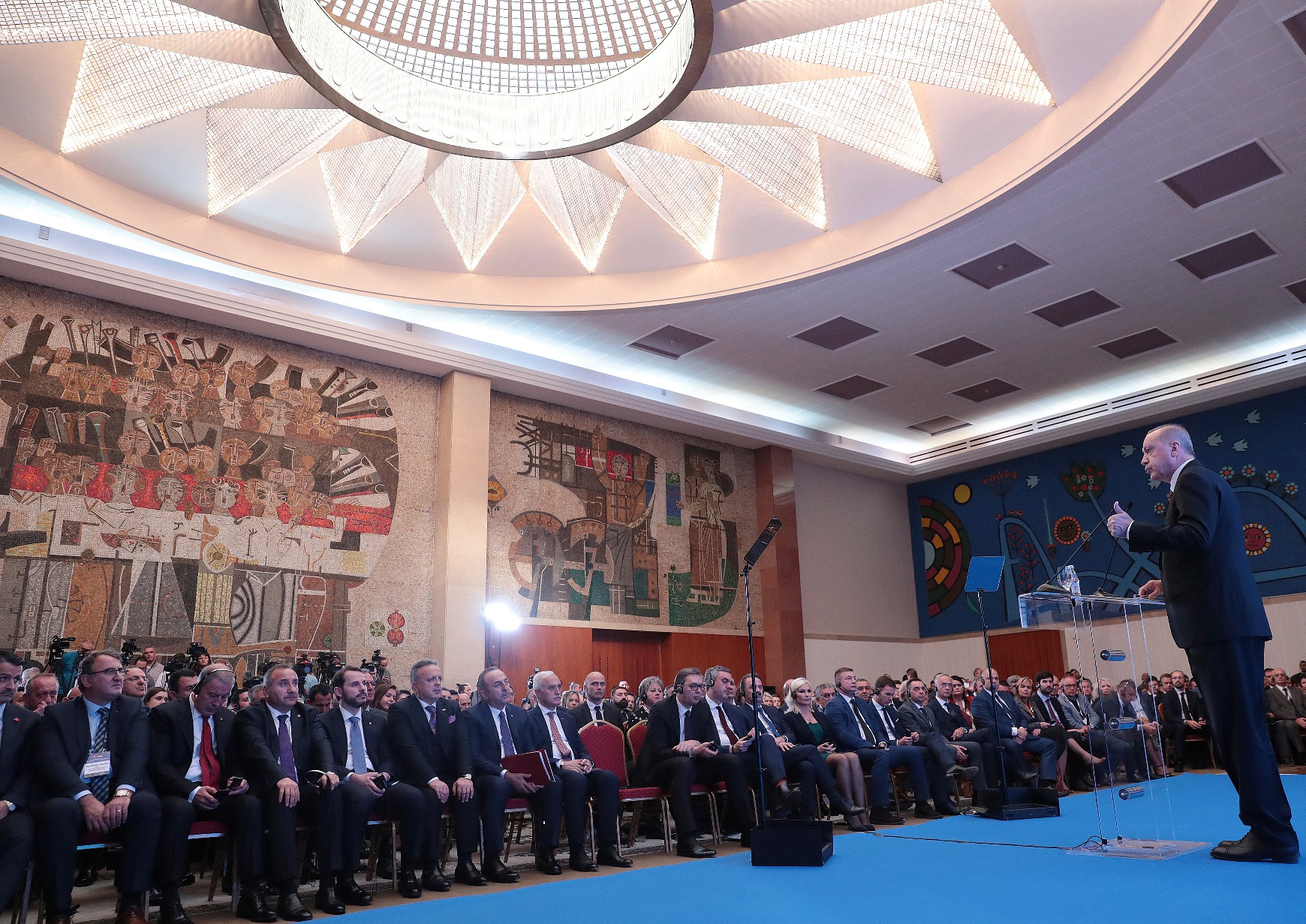 Buradaki konuşmasına iki ülkenin diplomatik ilişkilerinin 140'ıncı yıl dönümünde Sırbistan'ı tekrar ziyaret etmekten duyduğu memnuniyeti dile getirerek başlayan Cumhurbaşkanı Erdoğan, daveti ve ev sahipliği için mevkidaşına teşekkürlerini iletti.