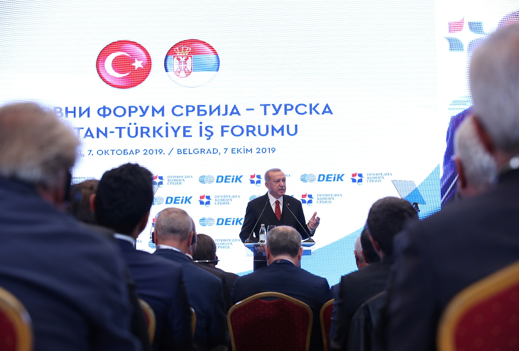 Sırbistan'da Türk-Sırp İş Derneğinin kurulmasını desteklediklerini ifade eden Erdoğan, "Burada bir noktayı altını çizerek ifade etmek istiyorum bir yerde niyet varsa, inanç varsa imkan da muhakkak bulunur. Azim ve kararlılık olduğu müddetçe hiçbir engel aşılamayacak kadar büyük değildir. Türkiye ile Sırbistan arasında her alanda ikili münasebetlerin ilerletilmesi noktasında çok güçlü bir irade olduğunu biliyorum. Son dönemdeki başarılarımız işte bu güçlü iradenin birer yansımasıdır. Elbette geldiğimiz seviyeyi yeterli görmüyoruz. İki ülke olarak iş birliğimizi daha da derinleştirmek, çeşitlendirmek, yeni alanlara teşmil etmek istiyoruz." değerlendirmesinde bulundu.