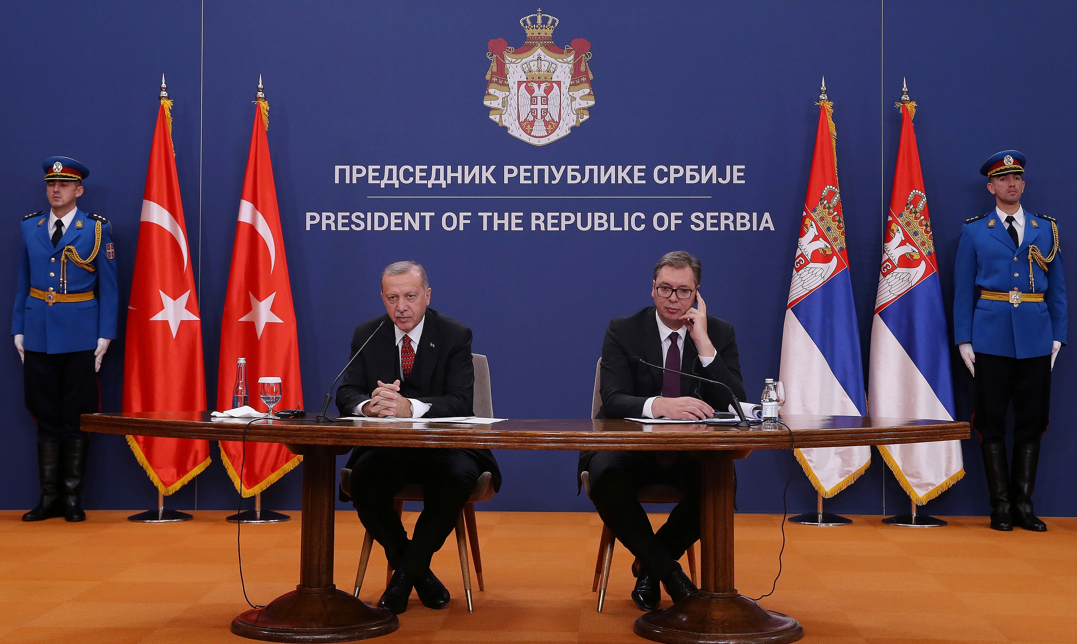 Cumhurbaşkanı Recep Tayyip Erdoğan ve Sırbistan Cumhurbaşkanı Aleksandar Vucic, Sırbistan Sarayı'nda başkanlık ettikleri Türkiye-Sırbistan Yüksek Düzeyli İşbirliği Konseyinin ardından ortak basın toplantısı düzenledi.