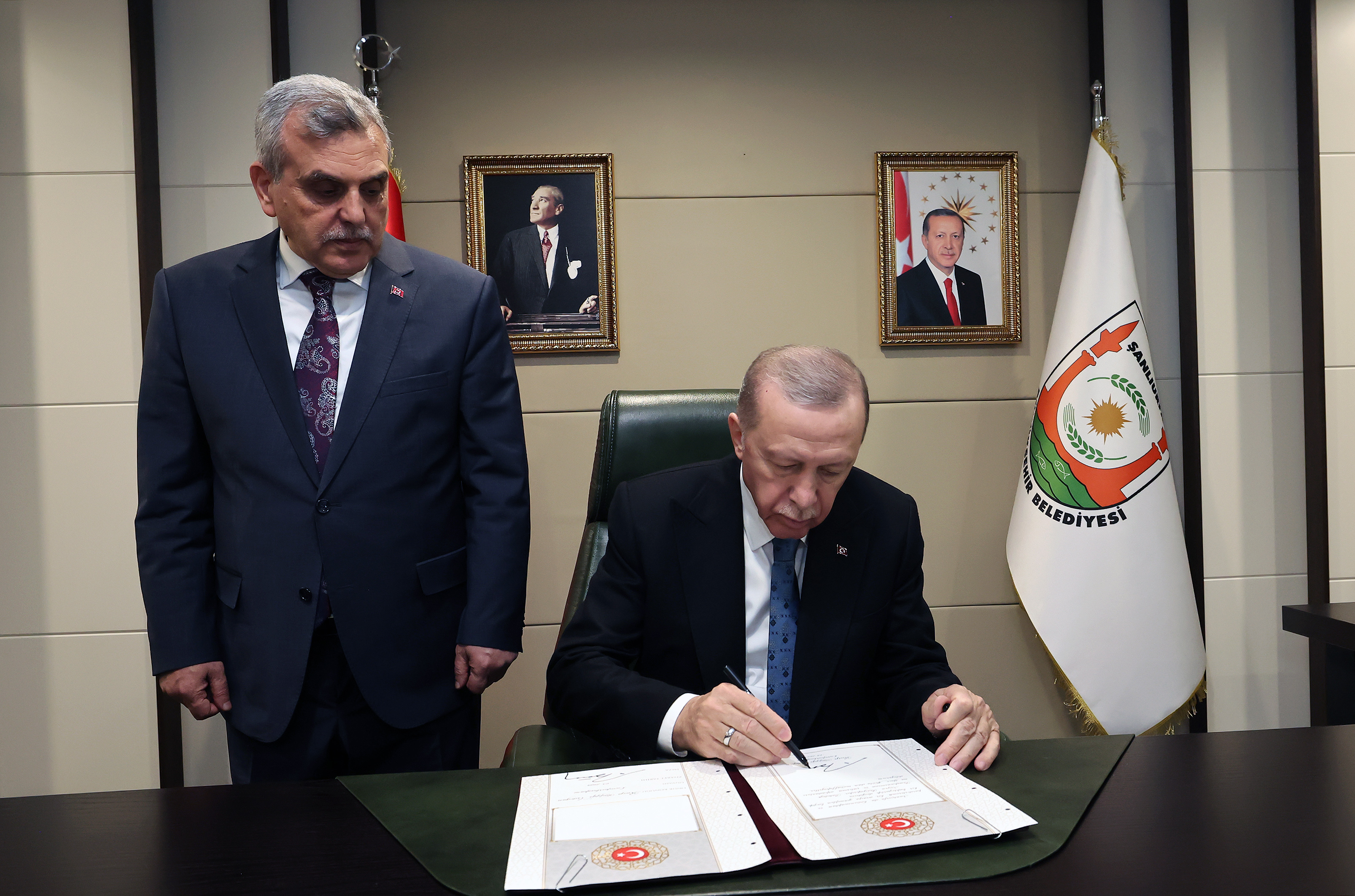 Cumhurbaşkanı Erdoğan, miting sonrası AK Parti Şanlıurfa Büyükşehir Belediye Başkanı ve başkan adayı Zeynel Abidin Beyazgül'ü kabul ederek Belediye Şeref Defteri'ni imzaladı.