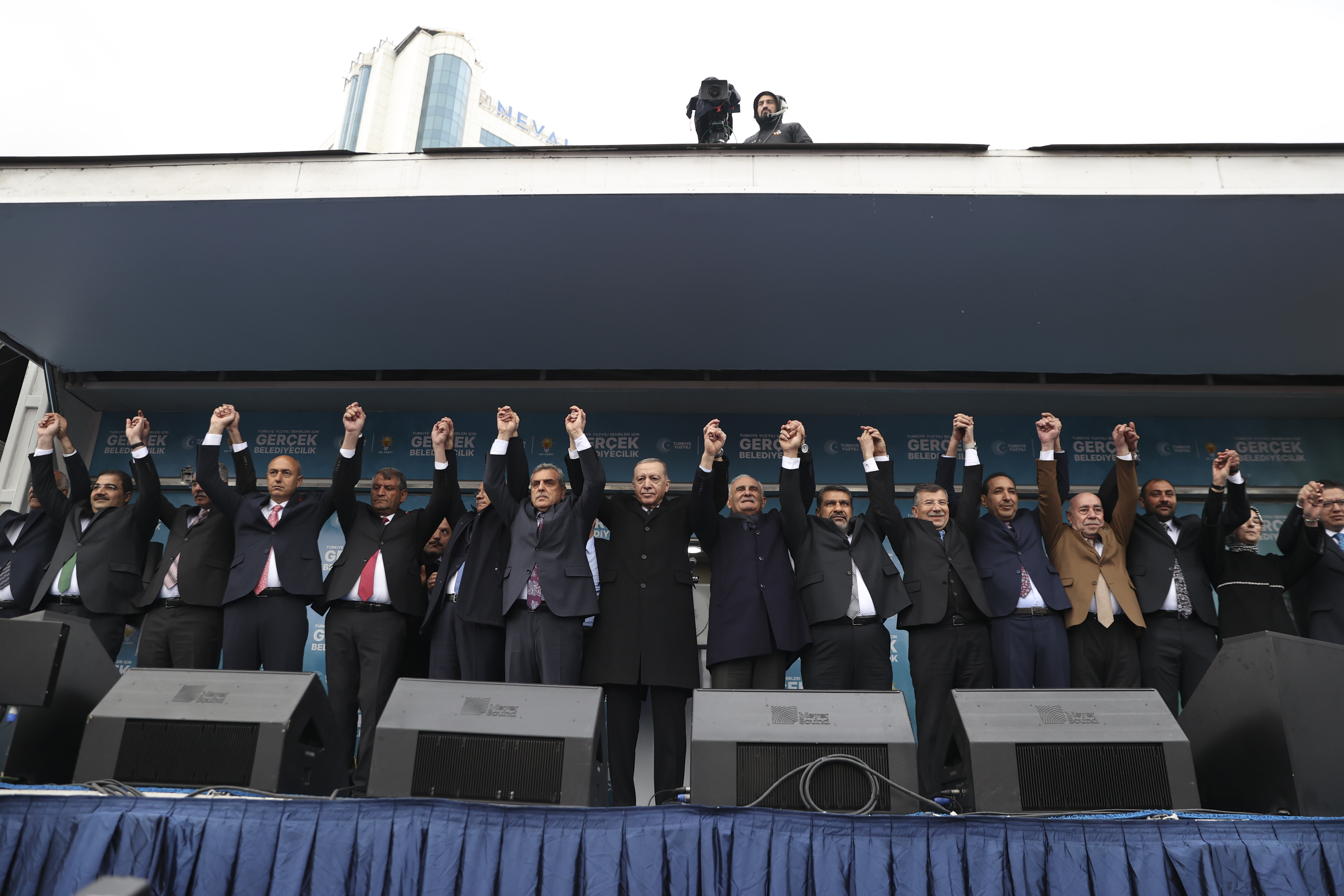Türkiye Yüzyılı vizyonuyla sadece bugünkü sorunların üstesinden gelme değil, daha huzurlu, güvenli, müreffeh bir gelecek için mücadele etme sözü verdiklerini dile getiren Cumhurbaşkanı Erdoğan, yerel seçimde şehirleri emanet edecekleri belediye başkanlarını da bu anlayışla belirlediklerini vurguladı.