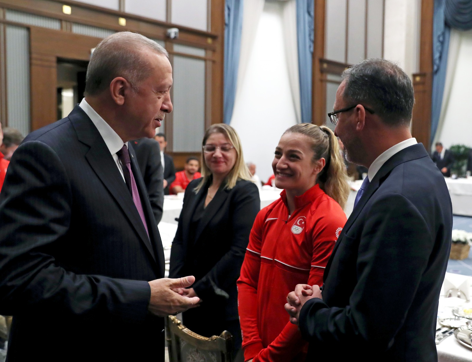 Cumhurbaşkanlığı Külliyesi'nde, 2020 Tokyo Olimpiyat Oyunları'nda madalya alan milli sporcular ile akşam yemeğinde bir araya gelen Cumhurbaşkanı Erdoğan, ülkeyi gururla temsil eden sporcular ve onları yetiştiren değerli aileleri ve antrenörleriyle bir araya gelmekten şahsı ve eşi Emine Erdoğan'ın büyük bir gurur duyduğunu belirtti.