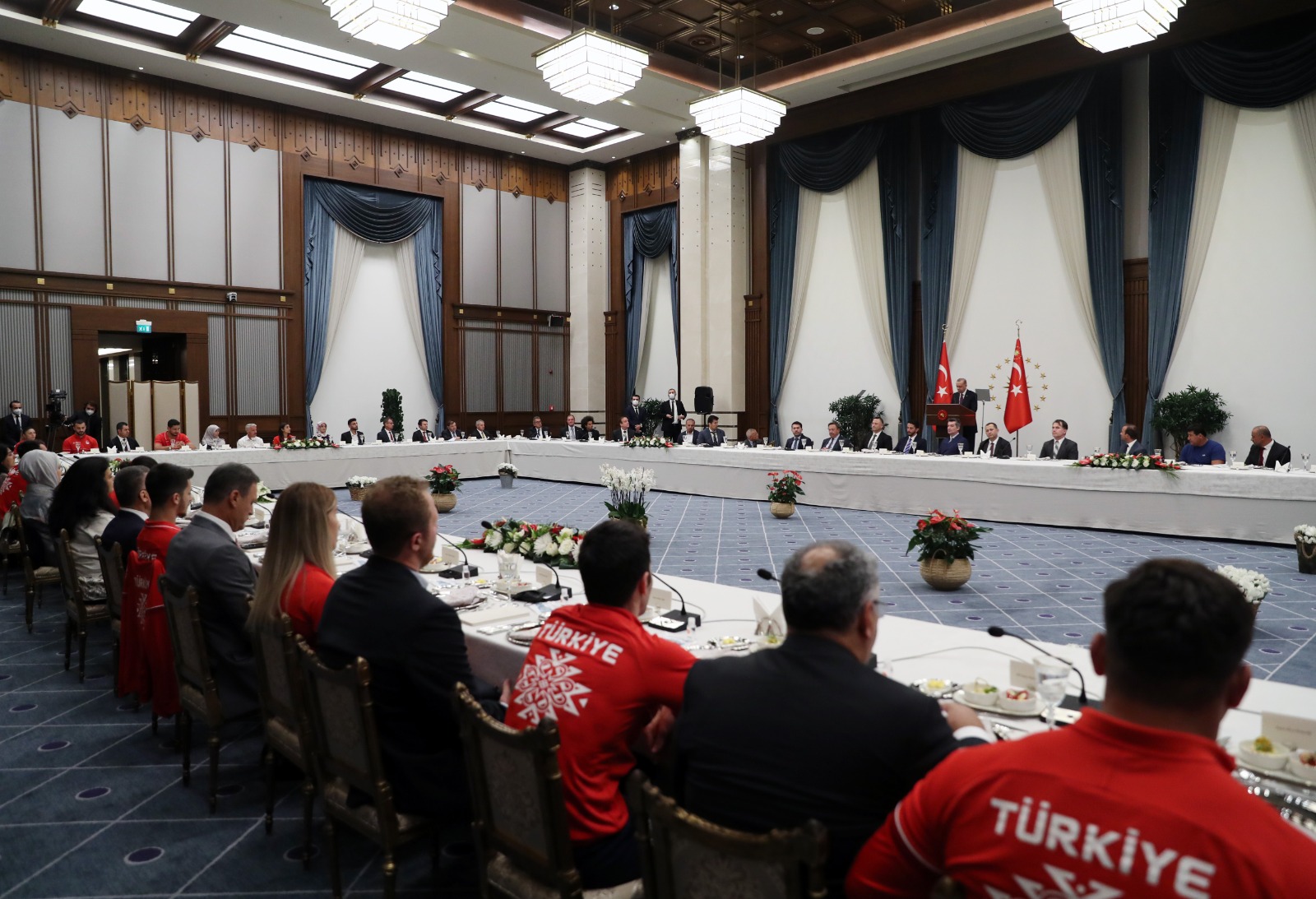 Yemekte, Cumhurbaşkanı Erdoğan'ın eşi Emine Erdoğan, Cumhurbaşkanı Yardımcısı Fuat Oktay, Gençlik ve Spor Bakanı Mehmet Muharrem Kasapoğlu, Cumhurbaşkanlığı İdari İşler Başkanı Metin Kıratlı, Cumhurbaşkanlığı İletişim Başkanı Fahrettin Altun, Spor Hizmetleri Genel Müdürü Mehmet Baykan ile milli sporcuların aileleri ve antrenörleri de yer aldı.