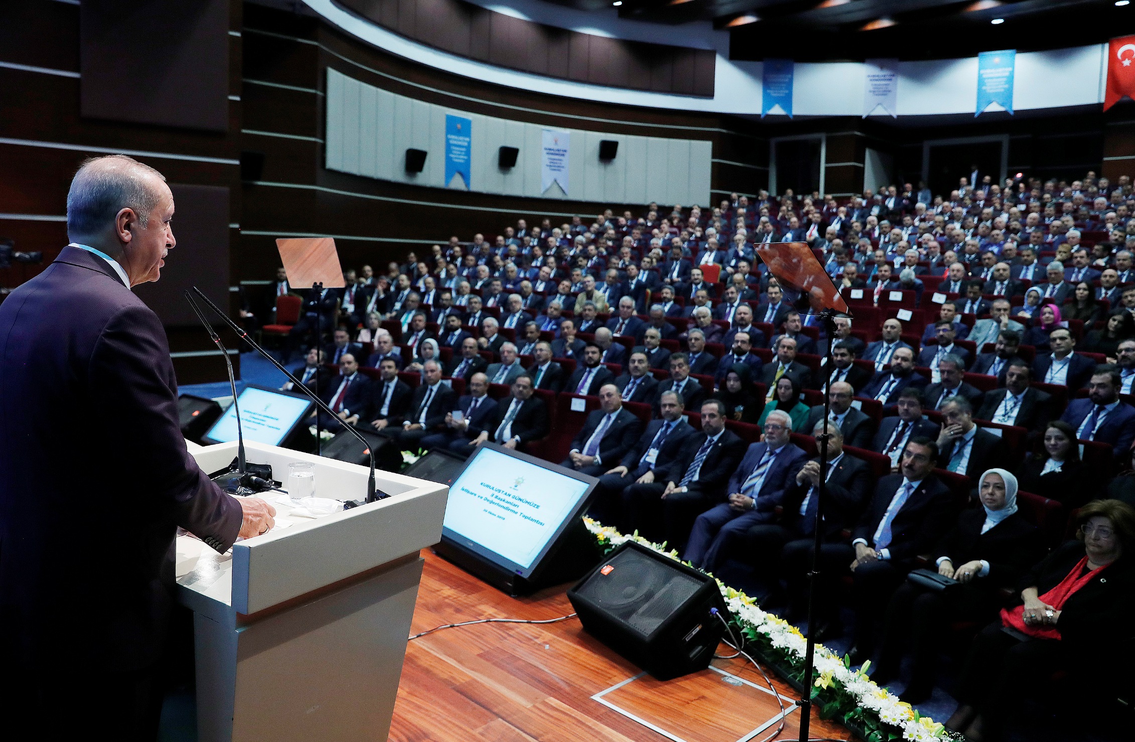 Haziran 2018'teki cumhurbaşkanlığı ve milletvekilleri seçimi ile 31 Mart mahalli idareler seçimlerinin sonuçlarının AK Parti'ye çok önemli mesajlar verdiğini işaret eden Erdoğan, "Muhtemelen önümüzdeki yıl sonuna doğru yapacağımız büyük kongremizde, milletimizin işaret ettiği şekilde kendimizi yenileyecek, kararlılığımızı bileyecek, enerjimizi de tazeleyeceğiz. Ardından 2023 yılına kadar olan seçimsiz dönemi en iyi şekilde değerlendirerek, hep birlikte AK Parti'yi çok daha ileri bir noktaya taşıyacağız." değerlendirmesinde bulundu.