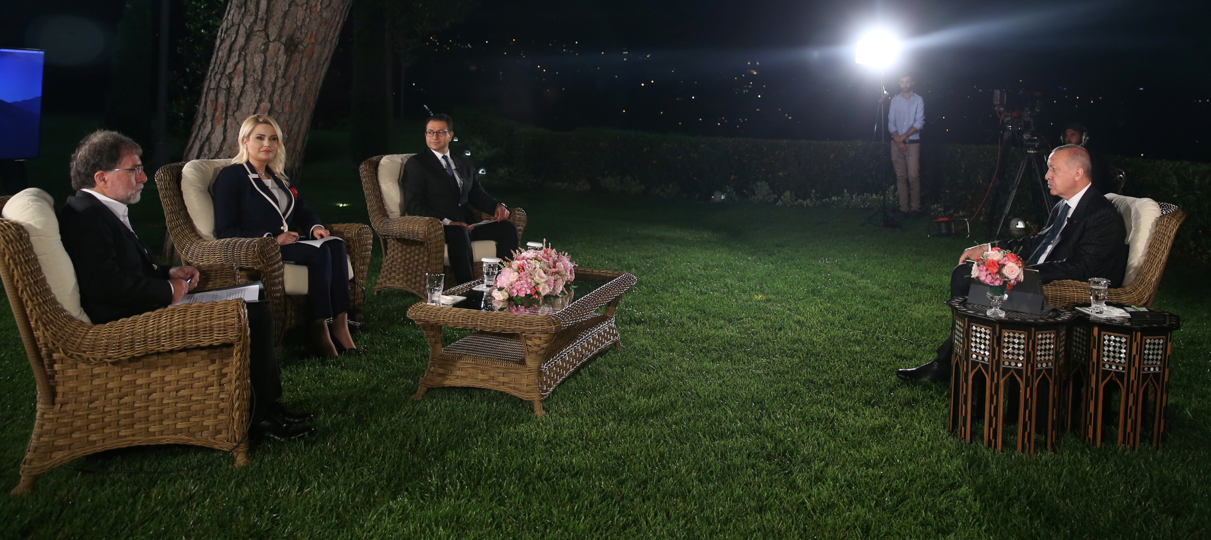 Cumhurbaşkanı Recep Tayyip Erdoğan, Vahdettin Köşkü'nde Ahmet Hakan, Işıl Açıkkar ve Salih Nayman'ın moderatörlüğünde düzenlenen sosyal medya ve televizyon ortak yayınında gündeme ilişkin sorularnı yanıtladı.