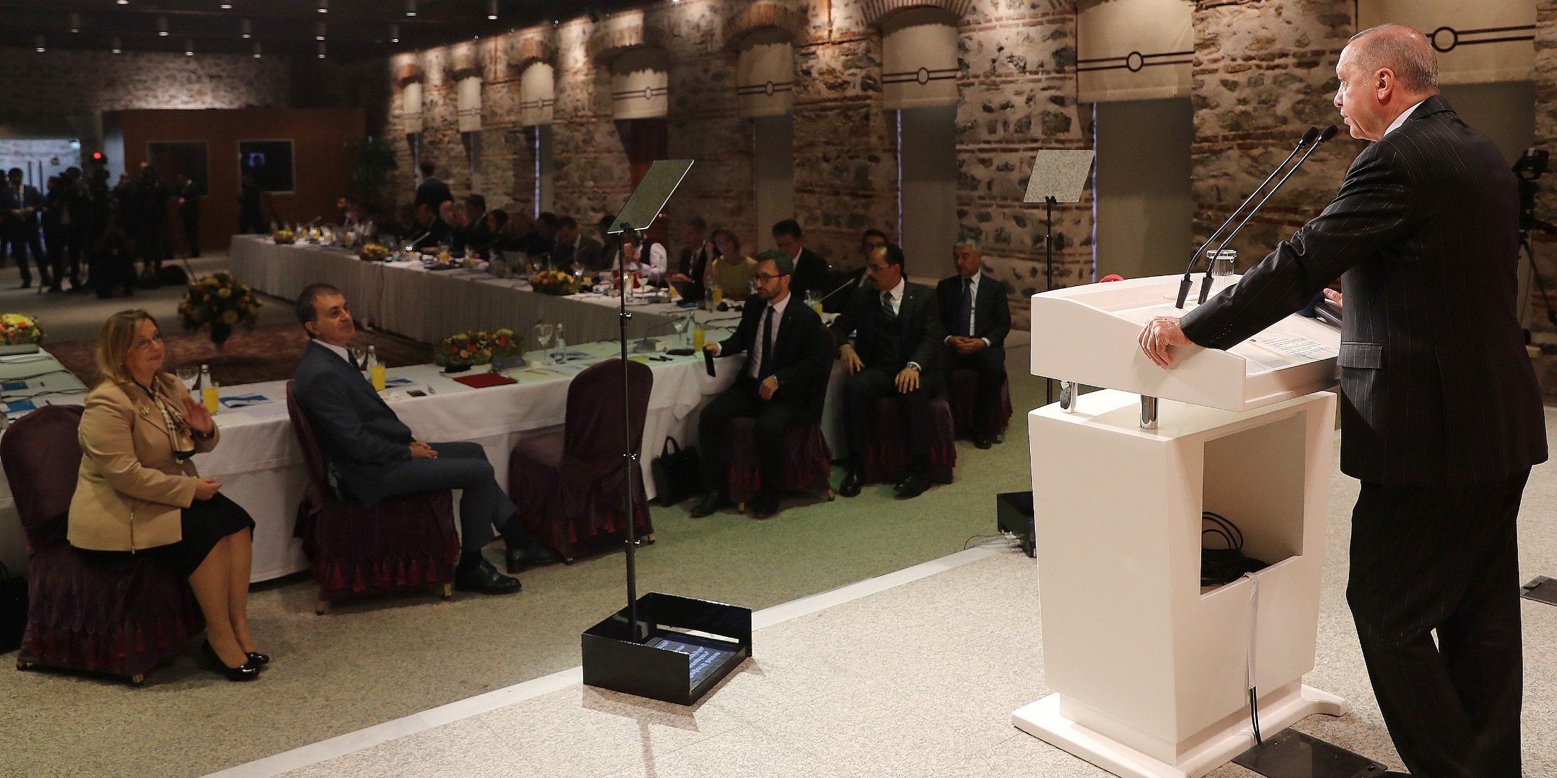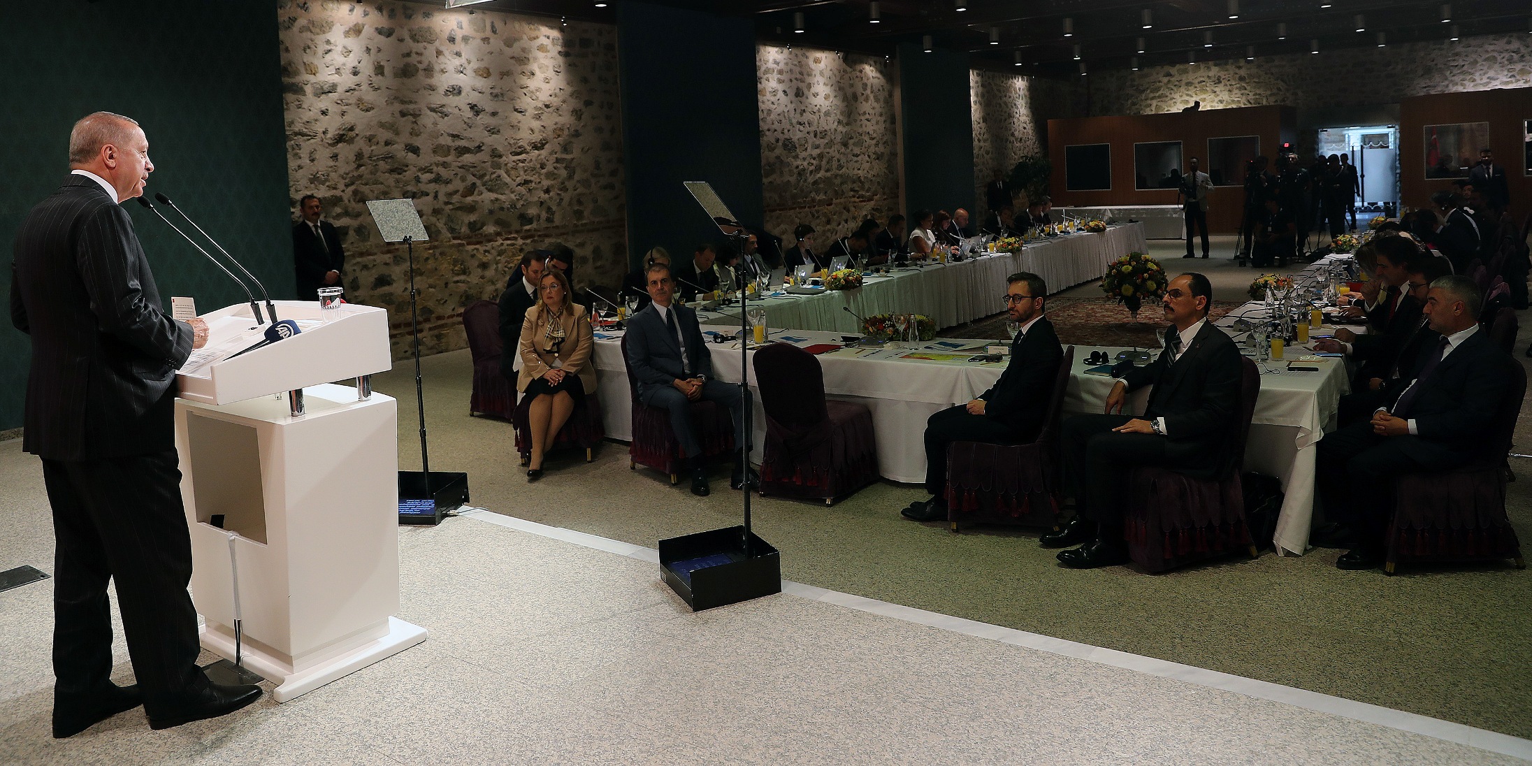 Dolmabahçe Çalışma Ofisi'nde uluslararası basın temsilcileriyle bir araya gelen Cumhurbaşkanı Erdoğan, Türkiye'nin Suriye meselesindeki duruşunu ve dün yaşanan gelişmelere kadar ki süreci paylaşmak istediğini söyledi.