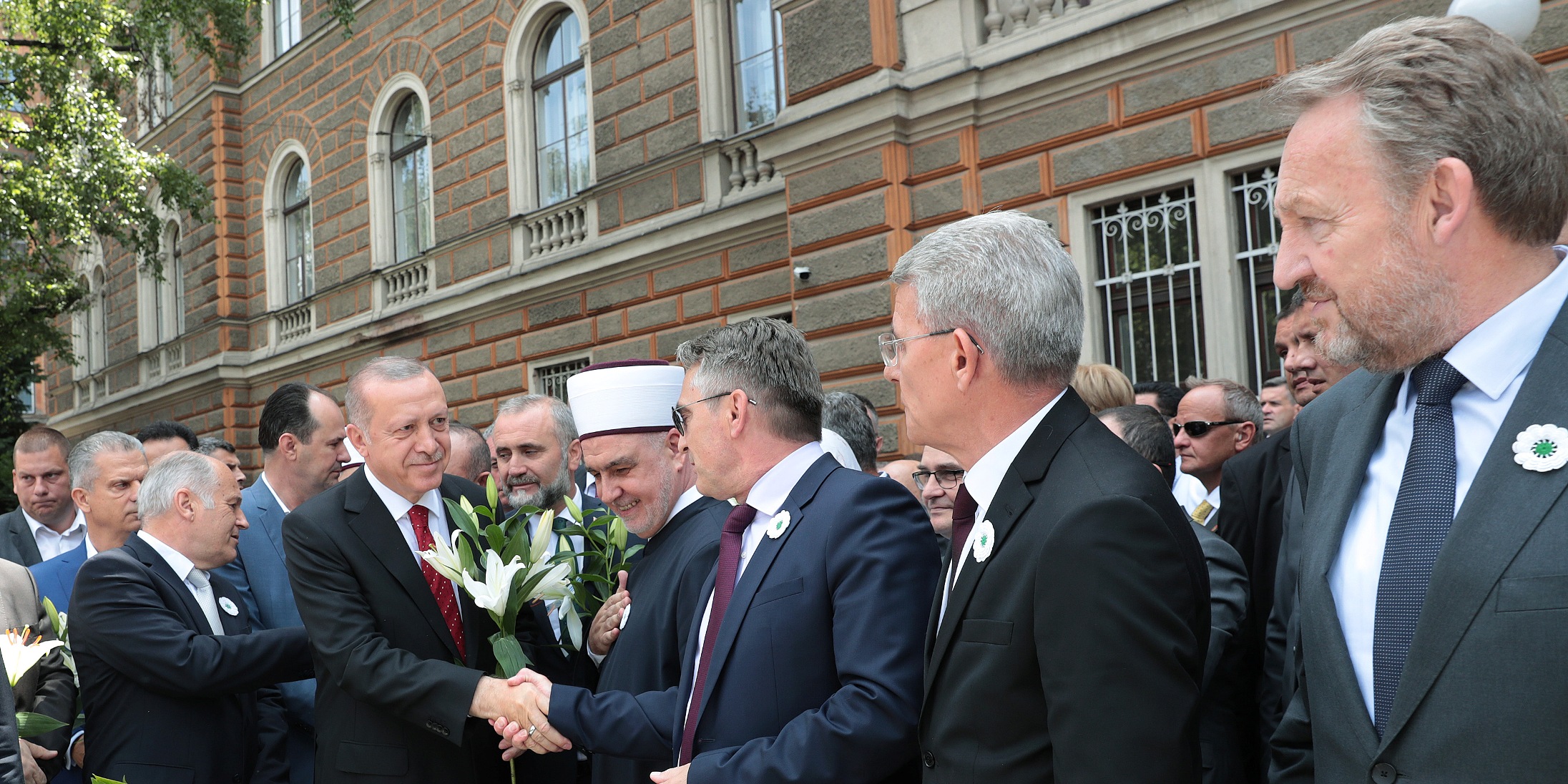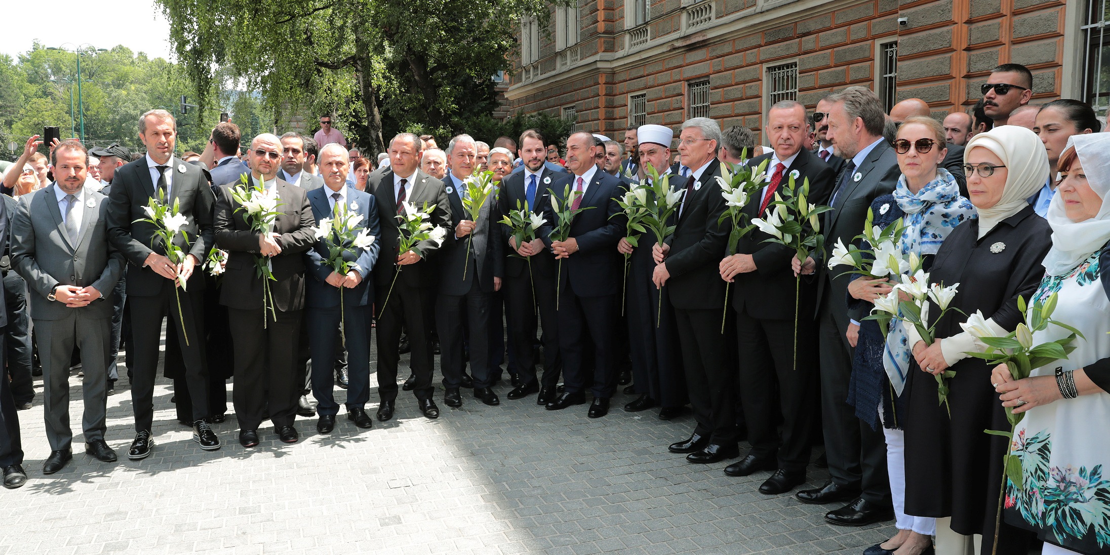 Törene Cumhurbaşkanı Erdoğan ve eşi Emine Erdoğan'ın yanı sıra Bosna Hersek Devlet Başkanlığı Konsey üyeleri Şefik Caferoviç ve Zeljko Komşiç, Bosna Hersek Halklar Meclisi Başkanı Bakir İzzetbegoviç, Dışişleri Bakanı Mevlüt Çavuşoğlu, Hazine ve Maliye Bakanı Berat Albayrak, Milli Savunma Bakanı Hulusi Akar, Tarım ve Orman Bakanı Bekir Pakdemirli, Ulaştırma ve Altyapı Bakanı Cahit Turhan, Milli İstihbarat Teşkilatı Başkanı Hakan Fidan, Cumhurbaşkanlığı İletişim Başkanı Prof. Dr. Fahrettin Altun ve Cumhurbaşkanlığı Sözcüsü İbrahim Kalın da katıldı.