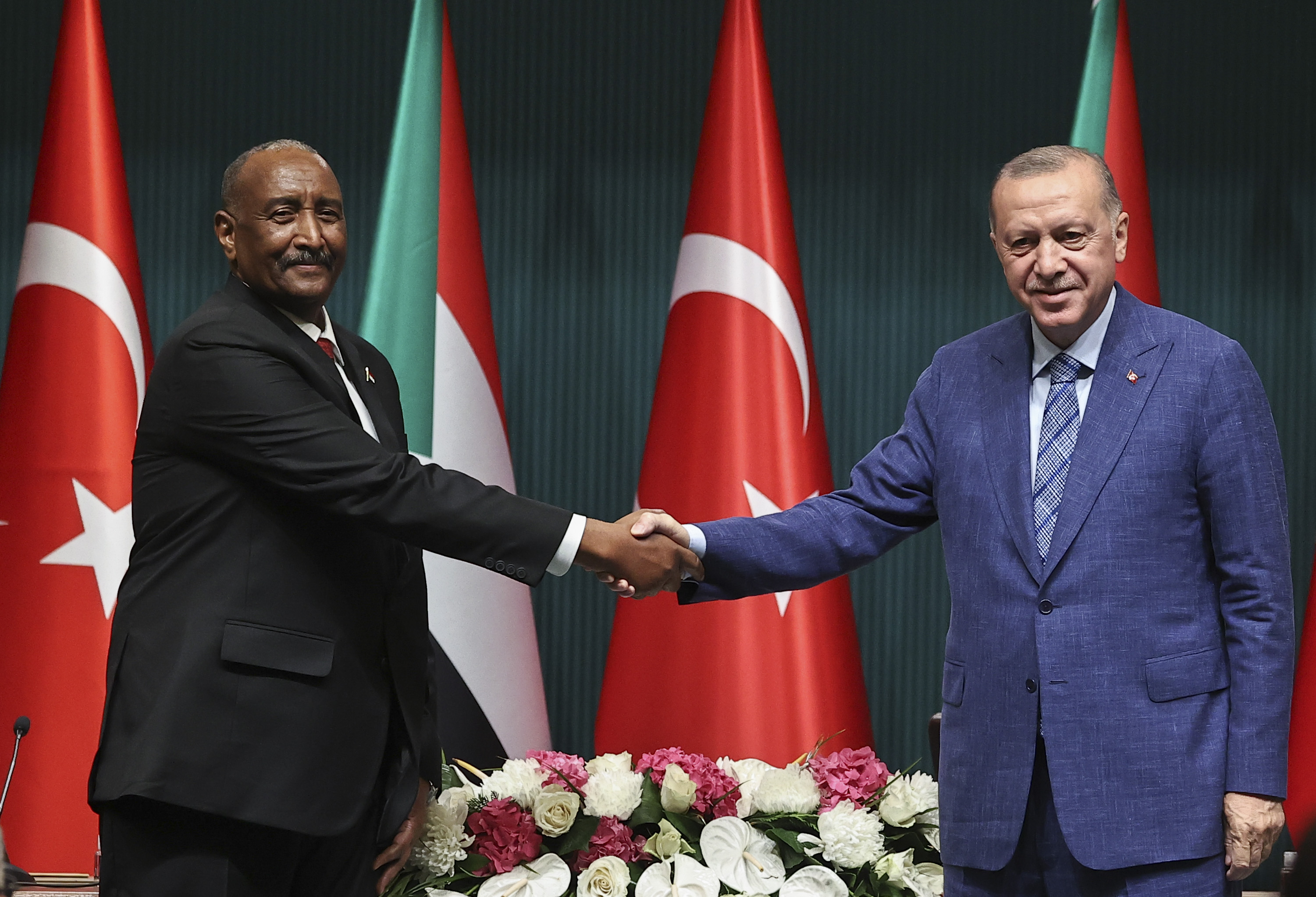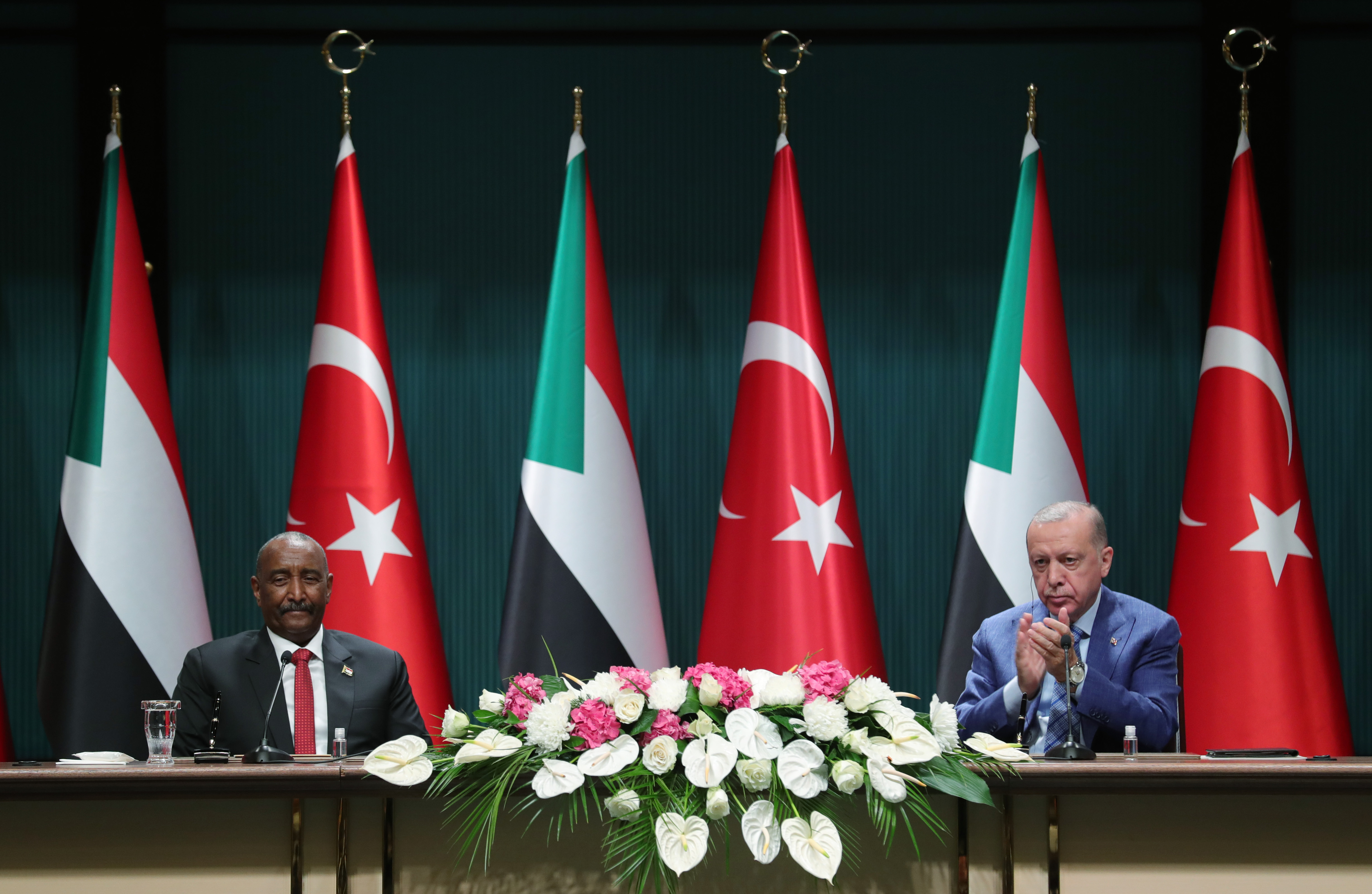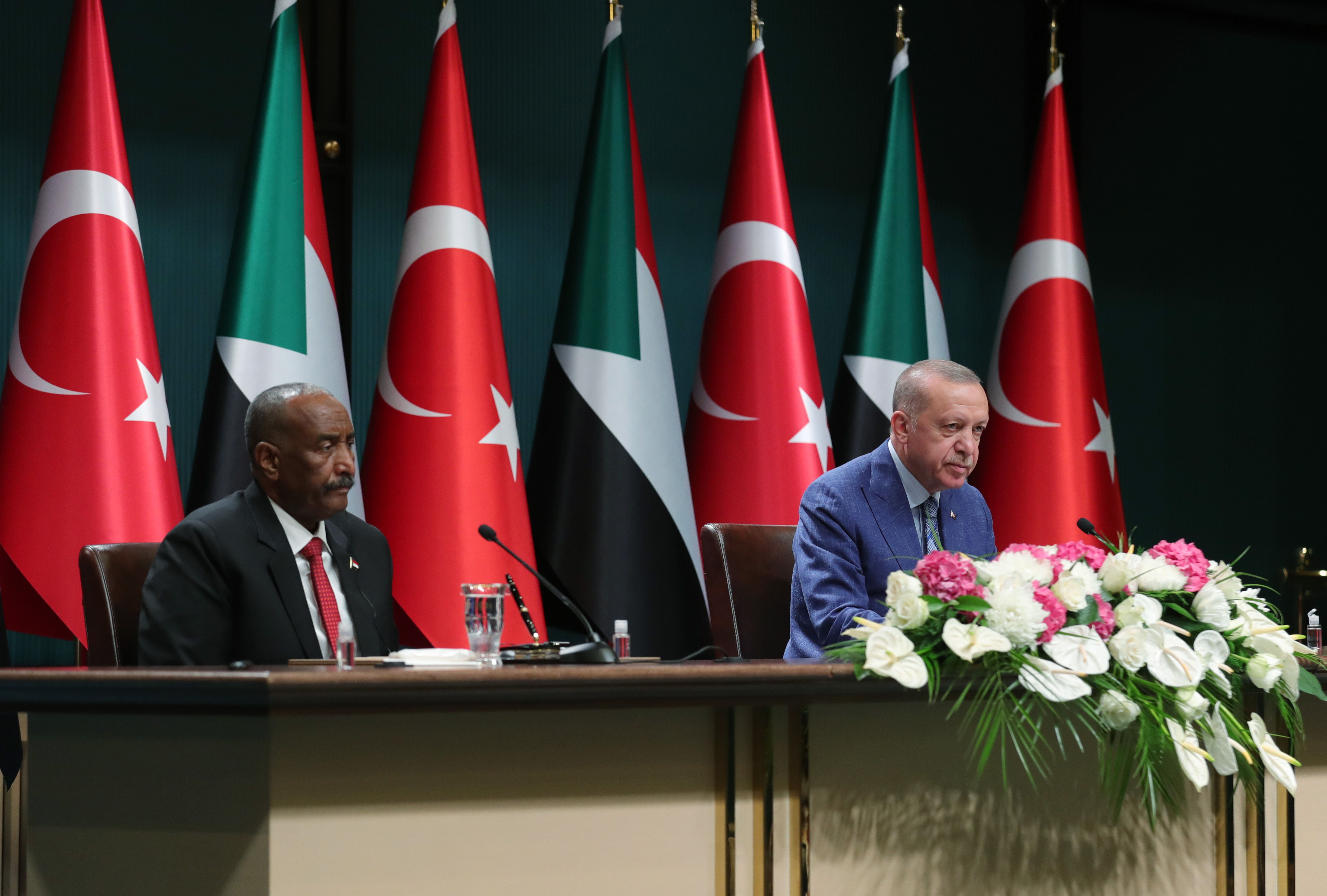 Cumhurbaşkanı Erdoğan, son yıllarda Sudan dahil Afrika Boynuzu bölgesi ülkeleriyle her alanda ilişkileri geliştirdiklerini vurgulayarak, "Burhan ile kardeş ve komşu iki ülke olan Sudan ve Etiyopya arasında son dönemde yaşanan gerilime ilişkin endişelerimizi de paylaştık. Bu konunun karşılıklı diyalog ve mutabakatla çözülmesinin önemine işaret ettim. Türkiye, önümüzdeki dönemde Sudan'ın yanında olmayı sürdürecektir. Kardeşim Burhan'ın da gayretleriyle inşallah Türkiye-Sudan dayanışması güçlenerek yoluna devam edecektir. Görüşmelerimizin ülkelerimiz için hayırlara vesile olmasını temenni ediyorum. Değerli kardeşim Burhan ve heyetine bu tarihi ziyaretleri için teşekkür ediyorum." dedi.