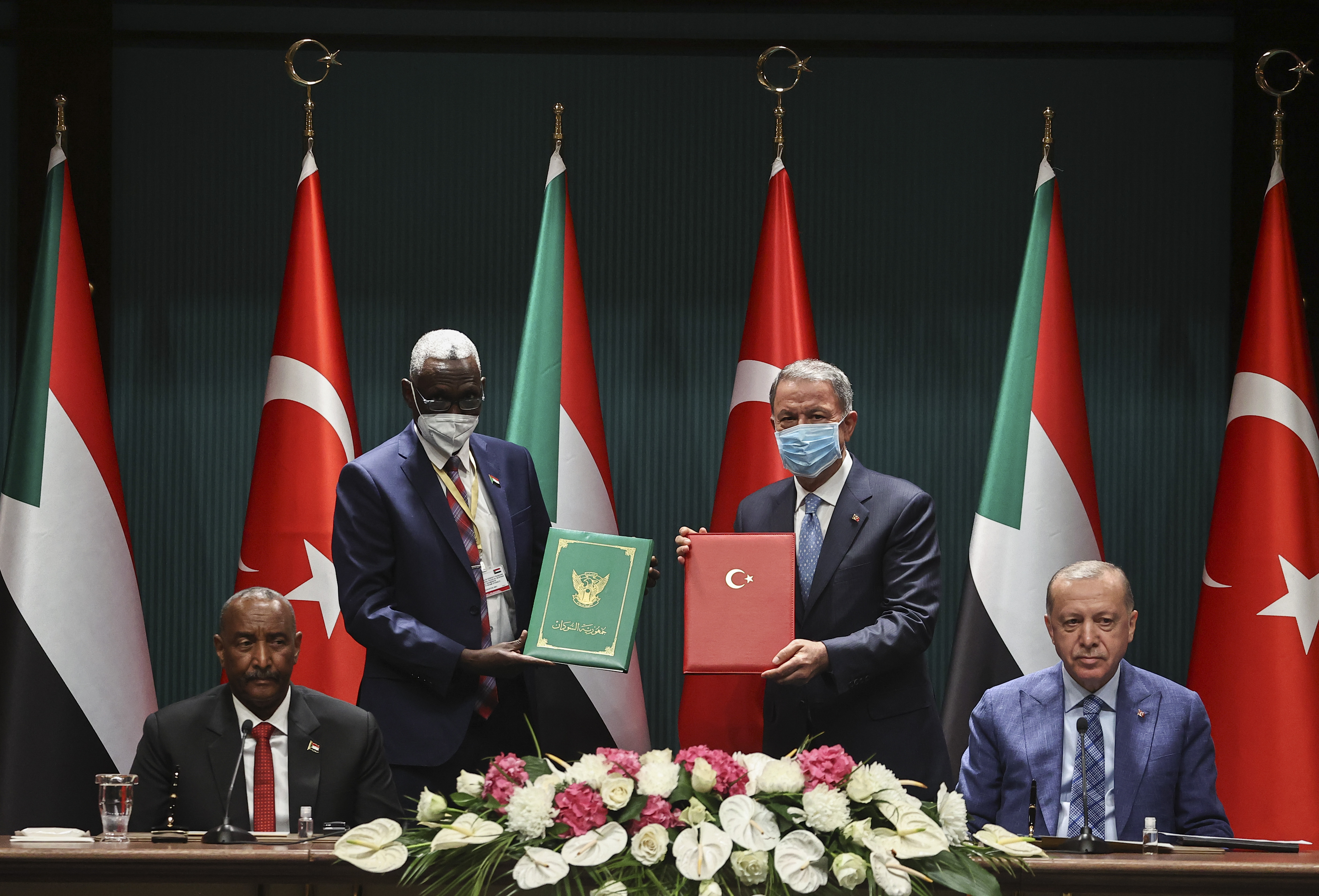 "Sudan Cumhuriyeti Egemenlik Konseyi Başkanının 12-13 Ağustos 2021 tarihlerinde Türkiye Cumhuriyeti Ziyaretine Dair Ortak Açıklama" ise Cumhurbaşkanı Erdoğan ve Sudan Egemenlik Konseyi Başkanı El-Burhan tarafından imzalandı.