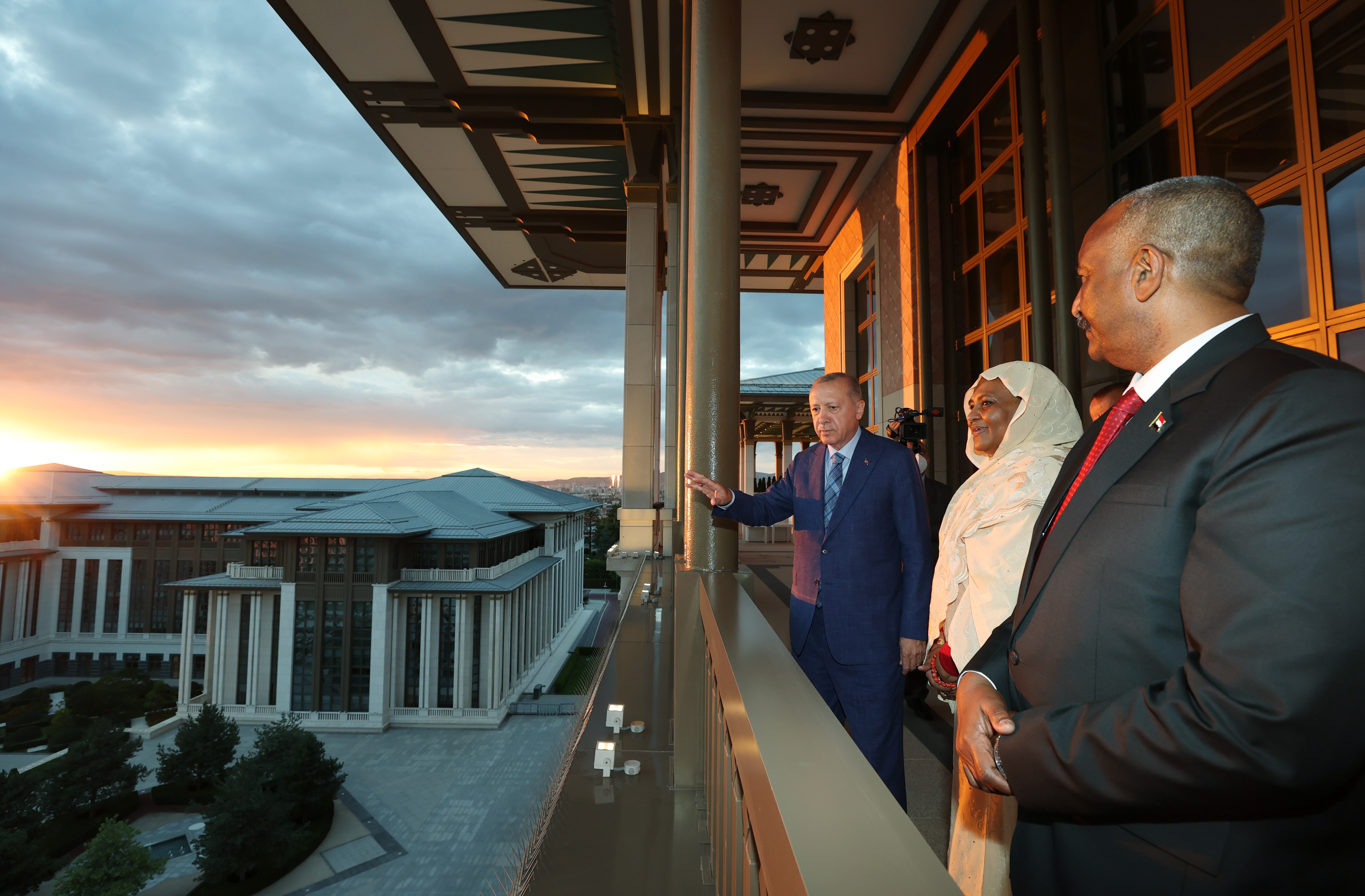 Sudan Egemenlik Konseyi Başkanı El-Burhan'ın Sudan'ın geçiş döneminde devlet başkanı düzeyinde bir ilki teşkil eden tarihi ziyaretinden büyük bir bahtiyarlık duyduğunu ifade eden Cumhurbaşkanı Erdoğan, Sudan Egemenlik Konseyi Başkanı El-Burhan ve heyetine "hoş geldiniz" dileklerini iletti.