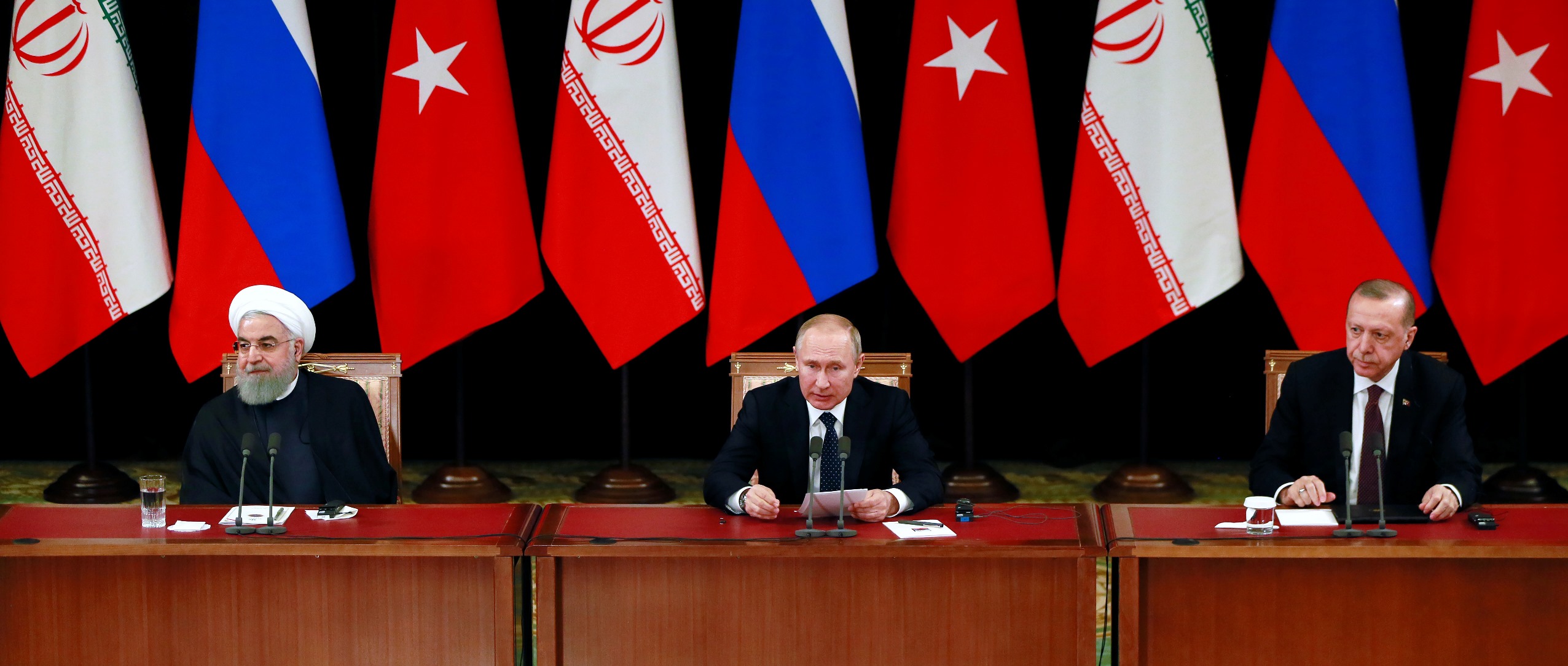 Sanatoryum Rus'da, Cumhurbaşkanı Erdoğan, Rusya Devlet Başkanı Vladimir Putin ve İran Cumhurbaşkanı Hasan Ruhani'nin katılımıyla yapılan "Suriye" konulu Türkiye-Rusya-İran Üçlü Zirvesi'nin ardından ortak basın toplantısı düzenlendi.