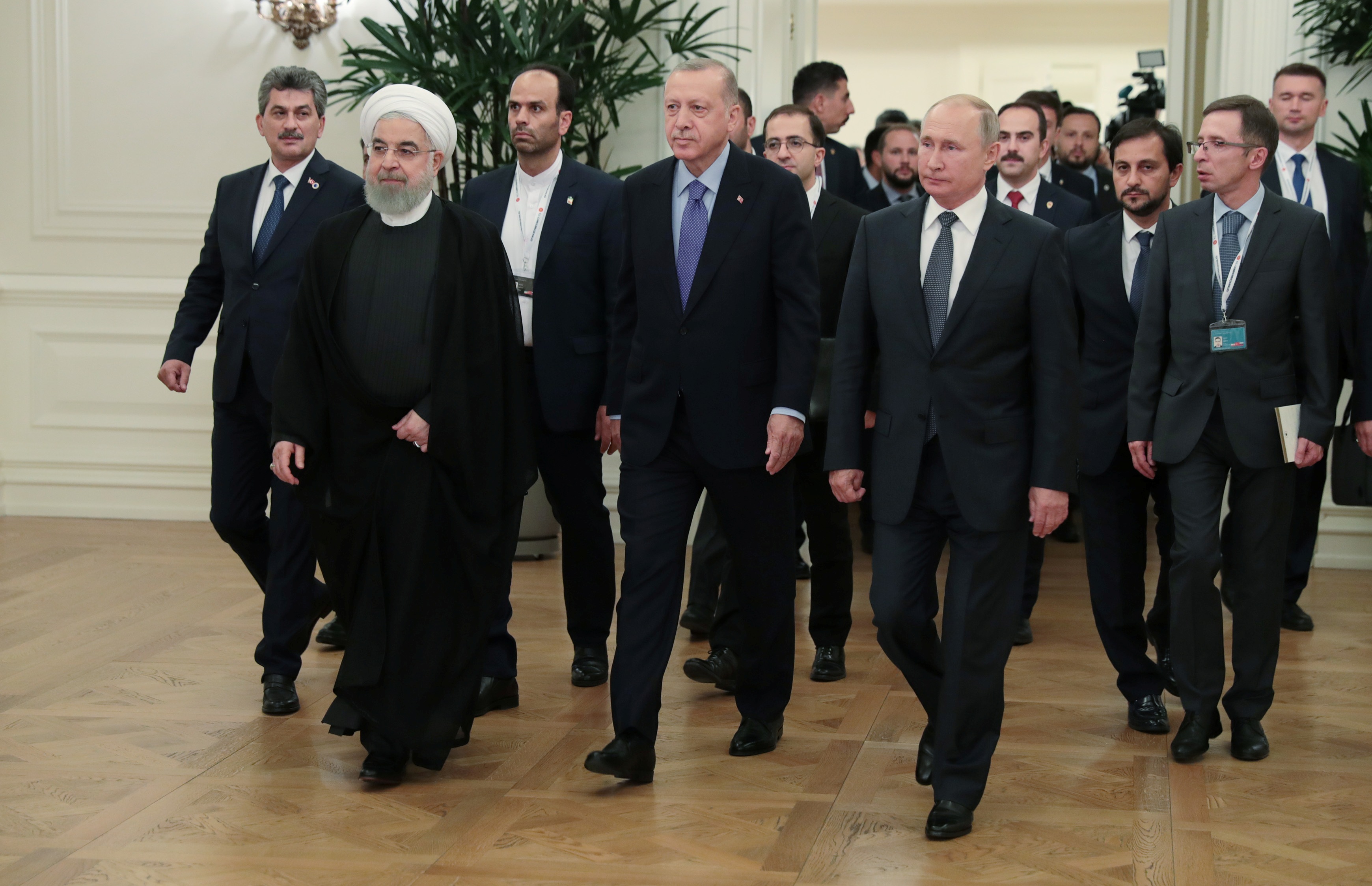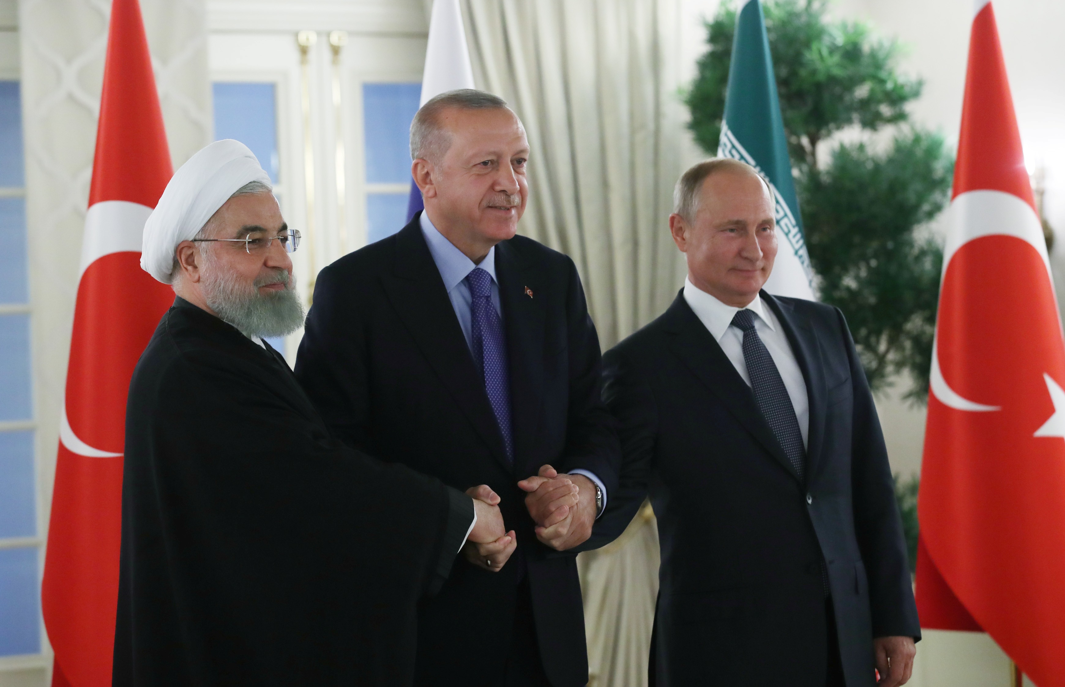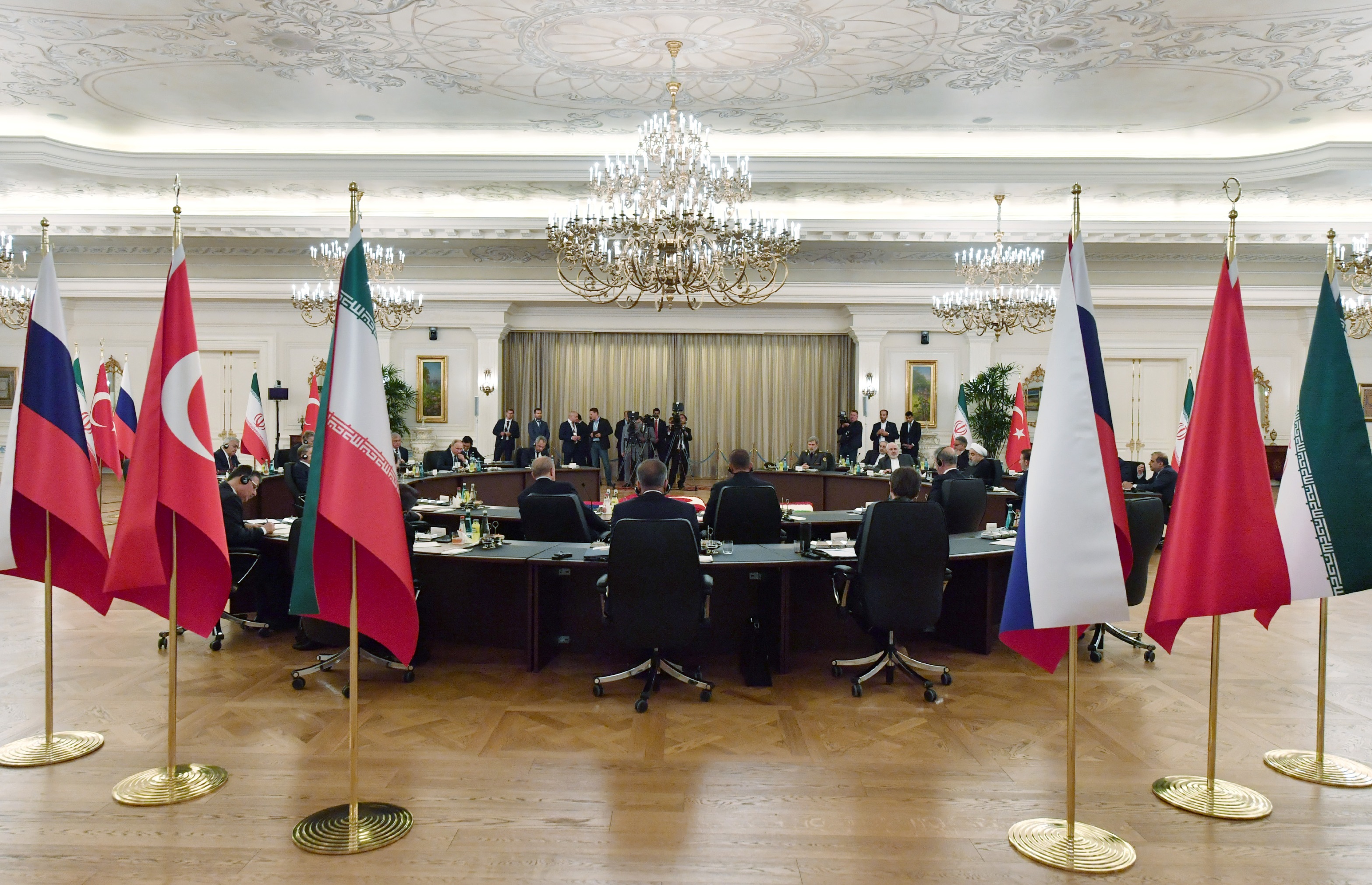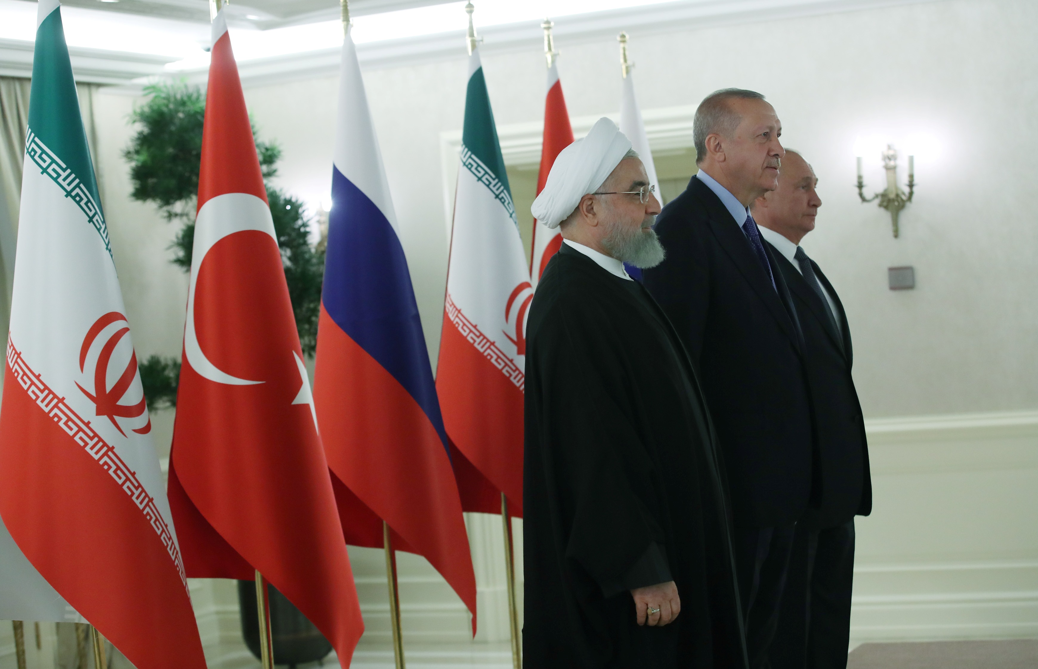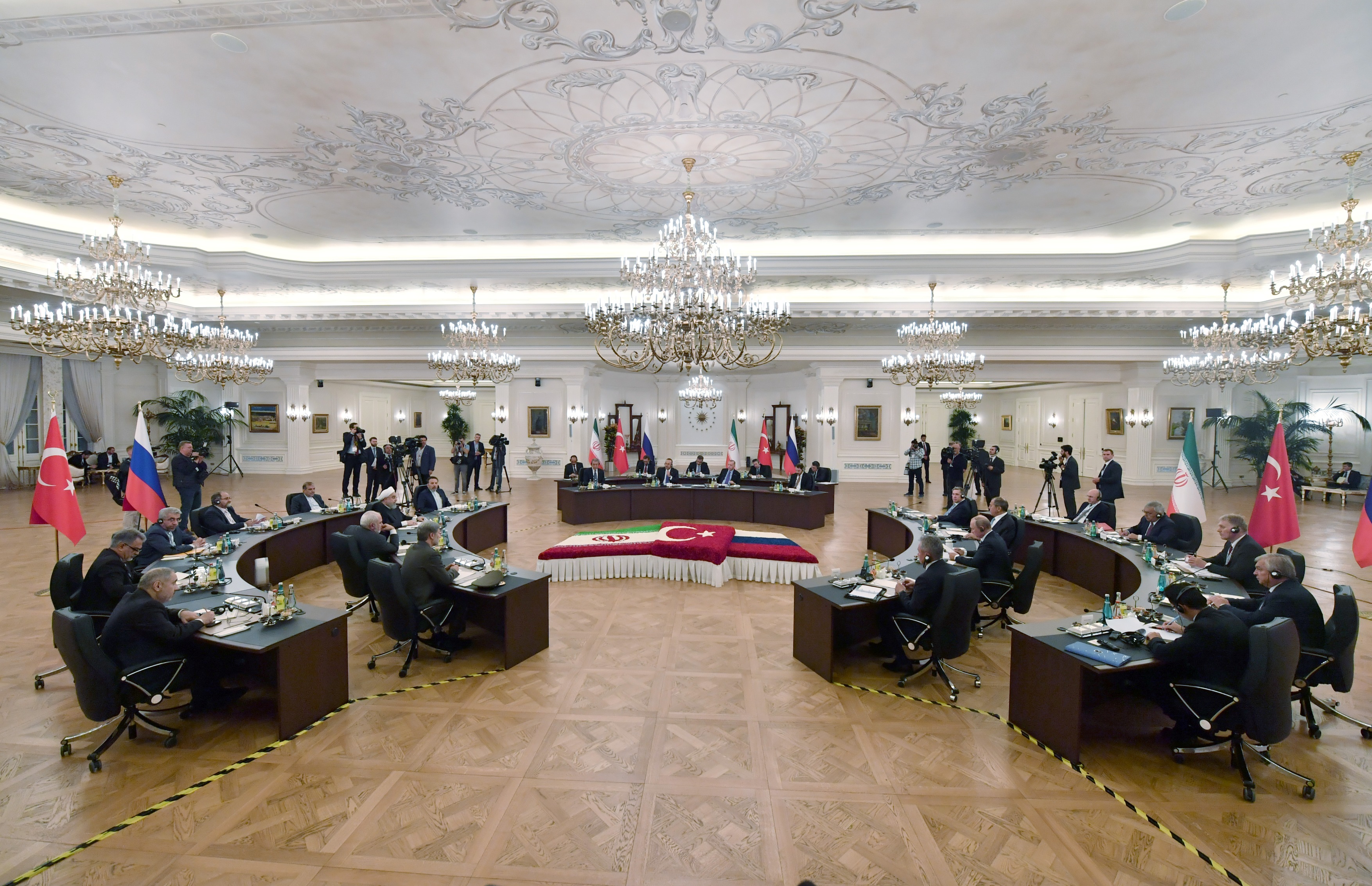 Cumhurbaşkanı Recep Tayyip Erdoğan, Rusya Devlet Başkanı Vladimir Putin ve İran Cumhurbaşkanı Hasan Ruhani'nin katılımıyla Çankaya Köşkü'nde Türkiye-Rusya-İran Üçlü Zirvesi başladı.