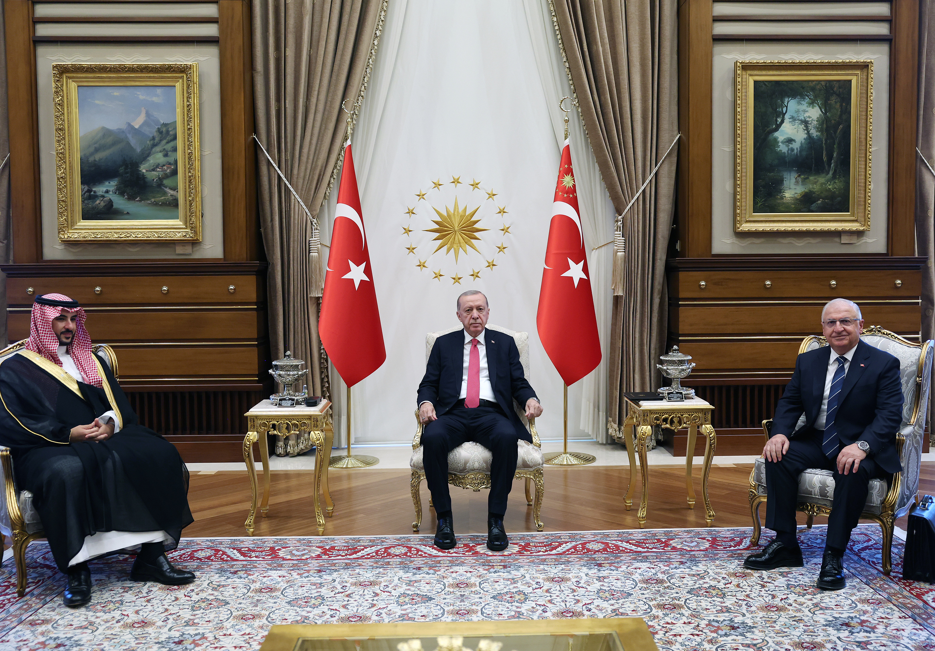 Cumhurbaşkanı Recep Tayyip Erdoğan, Suudi Arabistan Savunma Bakanı Halid bin Selman Al-Suud'u, Cumhurbaşkanlığı Külliyesi'nde kabul etti. Kabulde, Millî Savunma Bakanı Yaşar Güler de yer aldı.
