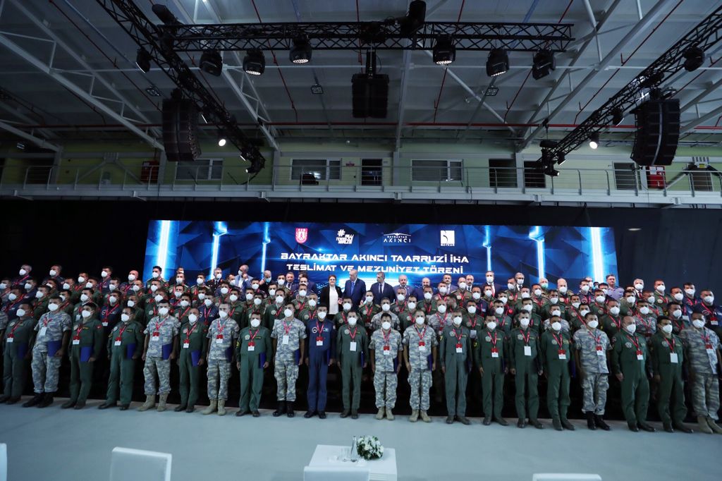 Cumhurbaşkanı Erdoğan konuşmasının ardından kursu dereceyle bitirenlere hediye ve sertifikalarını verdi. Demir ve Haluk Bayraktar konuşma sonrası ilk Akıncı teslimatını yaptıktan sonra Cumhurbaşkanı Erdoğan'a hava aracının 1/10 ölçekli maketini sundu.