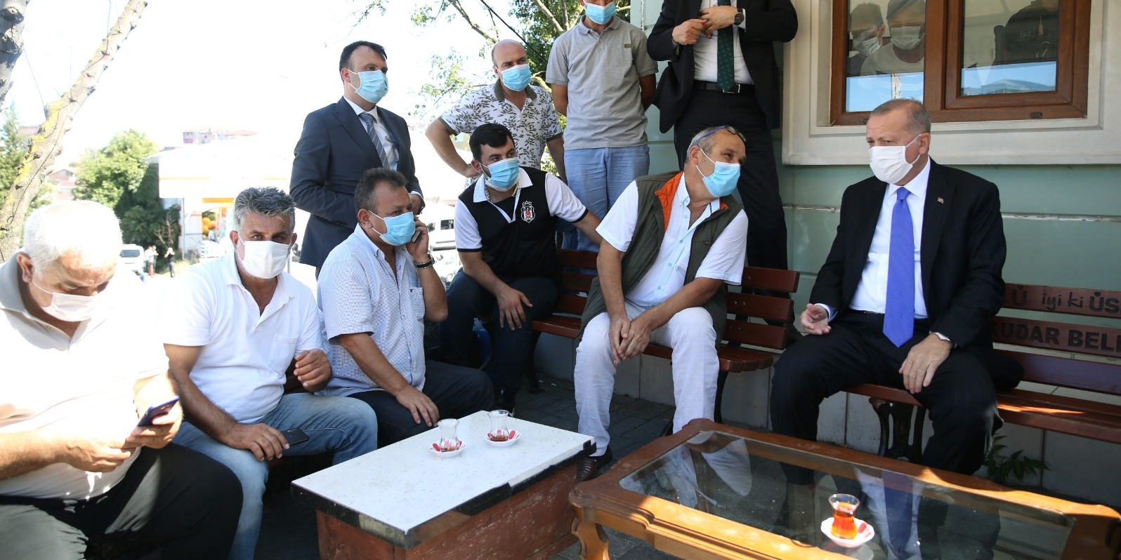 Burada vatandaşlarla bir süre sohbet ederek çay içen Erdoğan, vatandaşlarla fotoğraf da çektirdi.