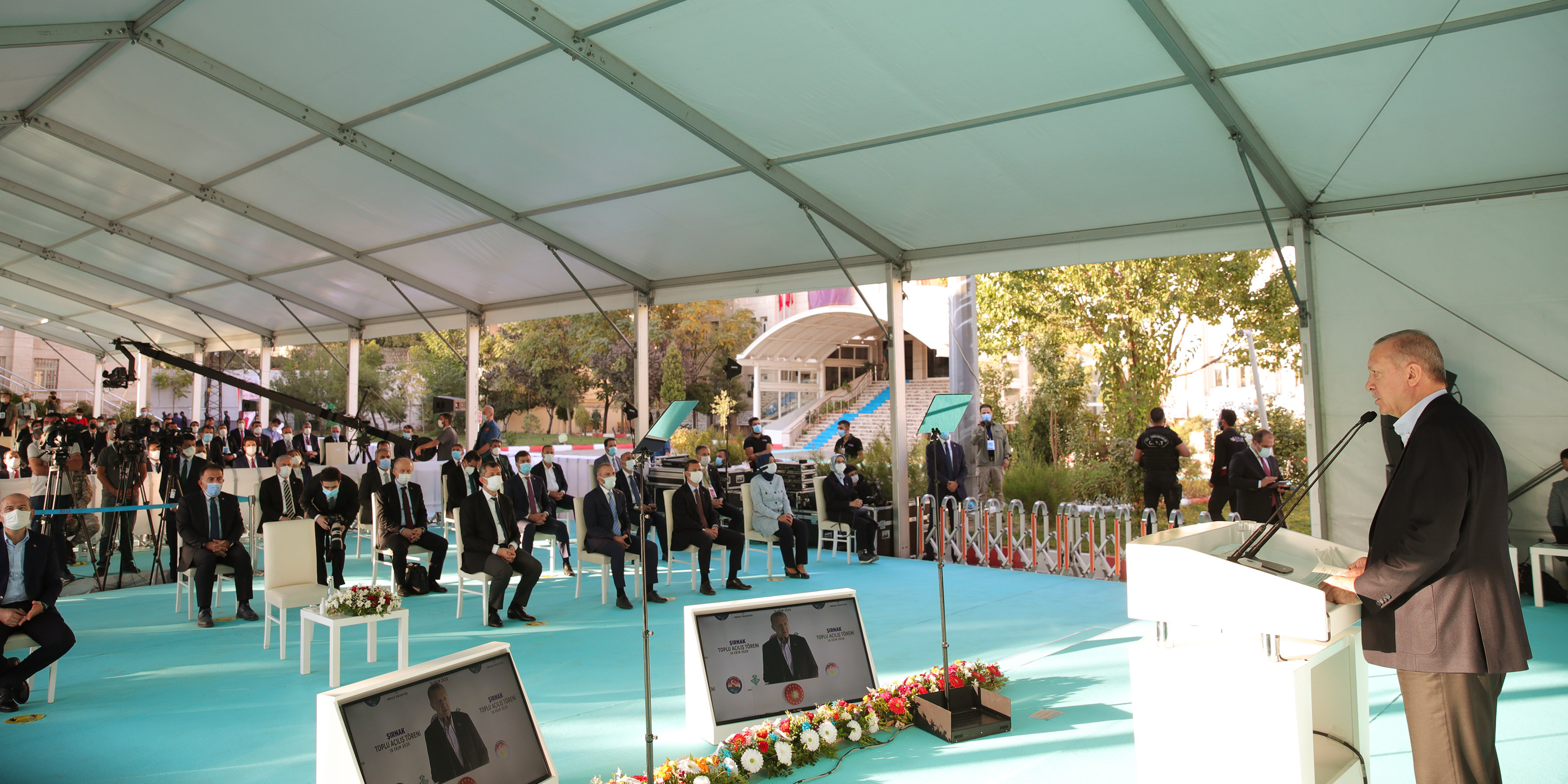 Toplu Konut İdaresinin (TOKİ) yaptığı konutların Şırnak'ta görüldüğünü söyleyen Cumhurbaşkanı Erdoğan, "Nereden nereye geldik. Bir zamanlar Şırnak'ta caddelerin ortasında maalesef foseptik akıntıları vardı. Şimdi bunlar artık yok, tarih oldu." ifadesini kullandı.