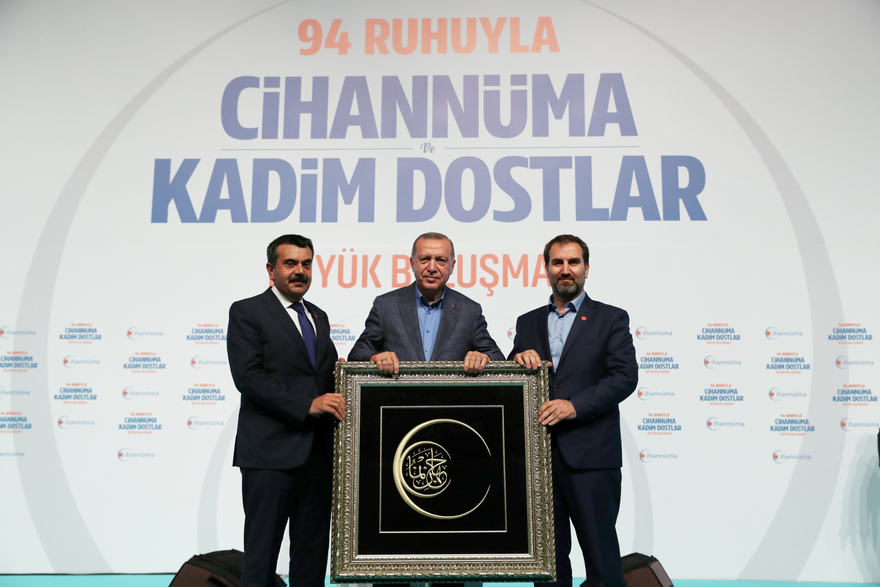 Program sonunda Cihannüma Derneği Genel Başkanı Mustafa Şen ve Cihannüma Kurucu Genel Başkanı Yusuf Tekin tarafından Cumhurbaşkanı Erdoğan’a tablo hediye edildi.