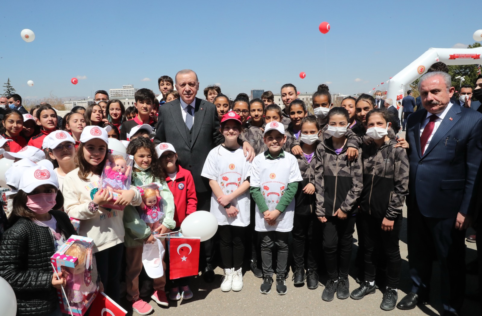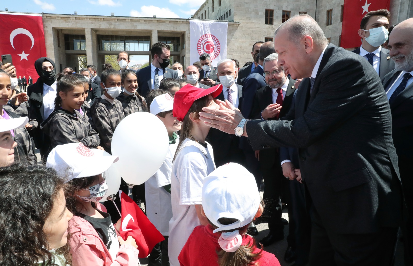 Cumhurbaşkanı Recep Tayyip Erdoğan, katıldığı AK Parti TBMM Grup Toplantısı sonrası 23 Nisan Ulusal Egemenlik ve Çocuk Bayramı dolayısıyla Meclis'te düzenlenen etkinliklere iştirak eden küçük sporcularla sohbet etti, fotoğraf çektirdi.