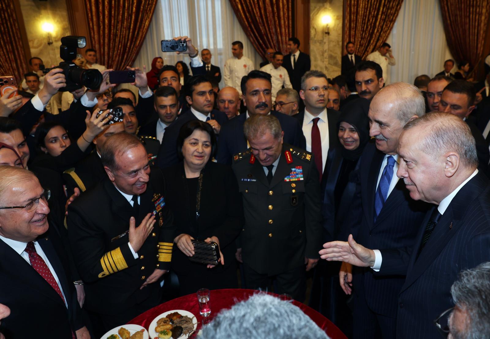 Cumhurbaşkanı Recep Tayyip Erdoğan, Meclis Tören Salonu'nda, TBMM Başkanı Numan Kurtulmuş'un ev sahipliğinde gerçekleştirilen 23 Nisan Resepsiyonu'na katıldı.