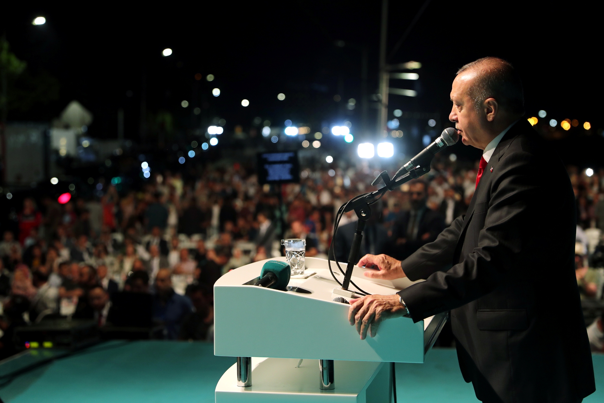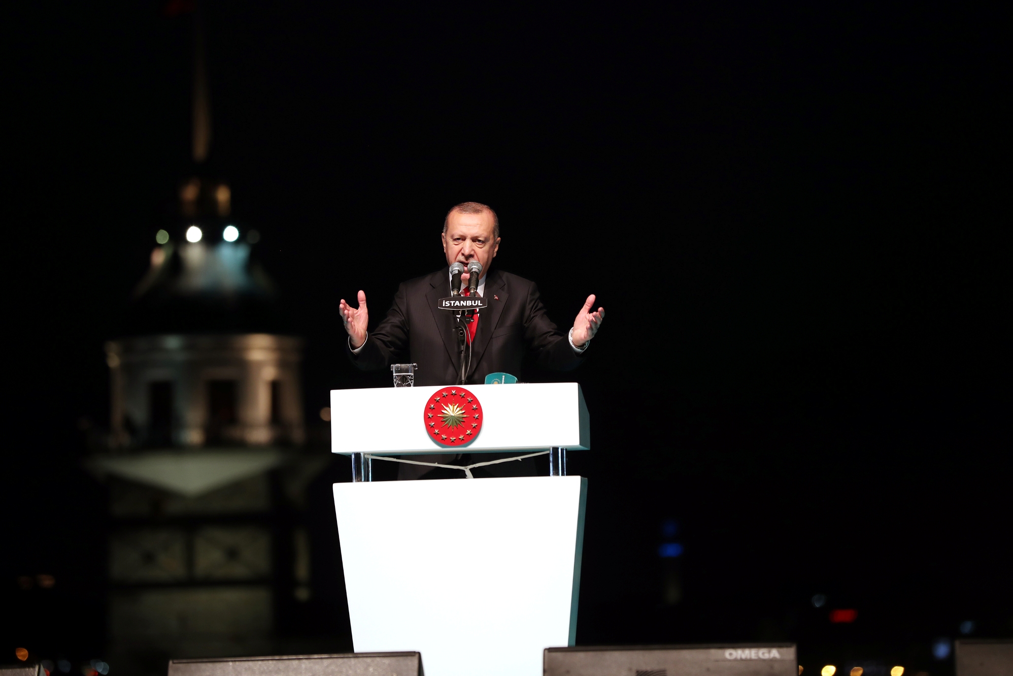 Erdoğan burada yaptığı konuşmada, İstanbul'da, Türkiye'nin ve dünyanın dört bir yanında, bu gece semaya açılan ellerin boş çevrilmeyeceğine inandığını ifade ederek, "Rabbim bizleri ağız tadıyla daha nice ramazanlara, nice bayramlara ulaştırsın. Rabbim bizlere dünyanın neresinde olursa olsun yardım bekleyen tüm mazlumlara, mağdurlara el uzatacak güç, kuvvet, imkan versin. Rabbim ülkemizin diz çökmesini bekleyenlere, milletimizin birlik ve beraberliğini bozmaya çalışanlara fırsat tanımasın." ifadelerini kullandı.
