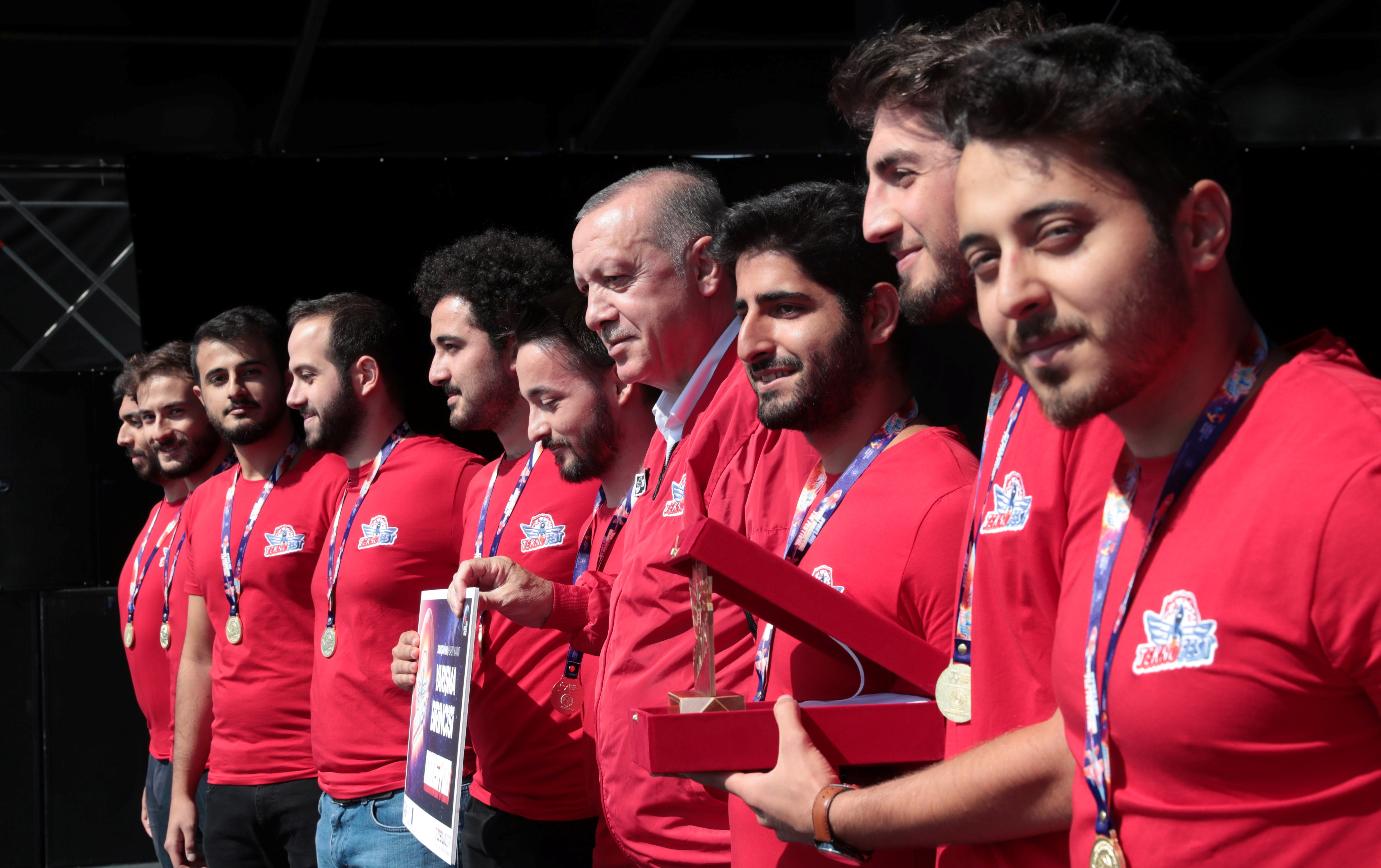 Erdoğan, bugün burada ortaokul, lise, üniversite takımları ile profesyonelliğin ayrı ayrı geliştiği ve yarıştığı her etkinliği, adeta milli teknoloji hamlesinin yeni bir ayak sesi olarak gördüğünü anlattı.