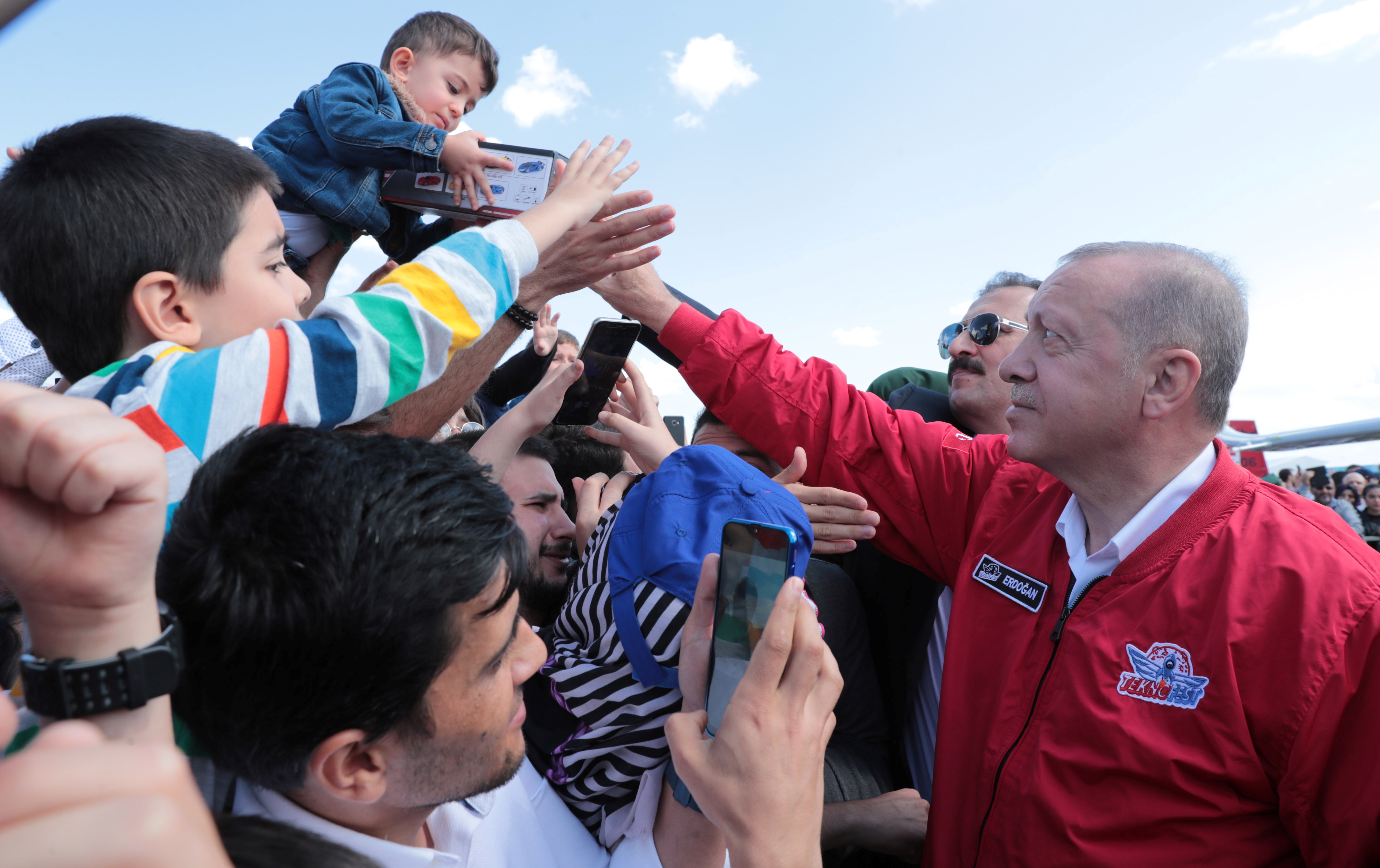 Erdoğan ile birlikte eşi Emine Erdoğan, kızı Sümeyye Erdoğan Bayraktar, torunu Ahmet Akif Albayrak da TEKNOFEST İstanbul'un düzenlendiği etkinlik alanına geldi.
