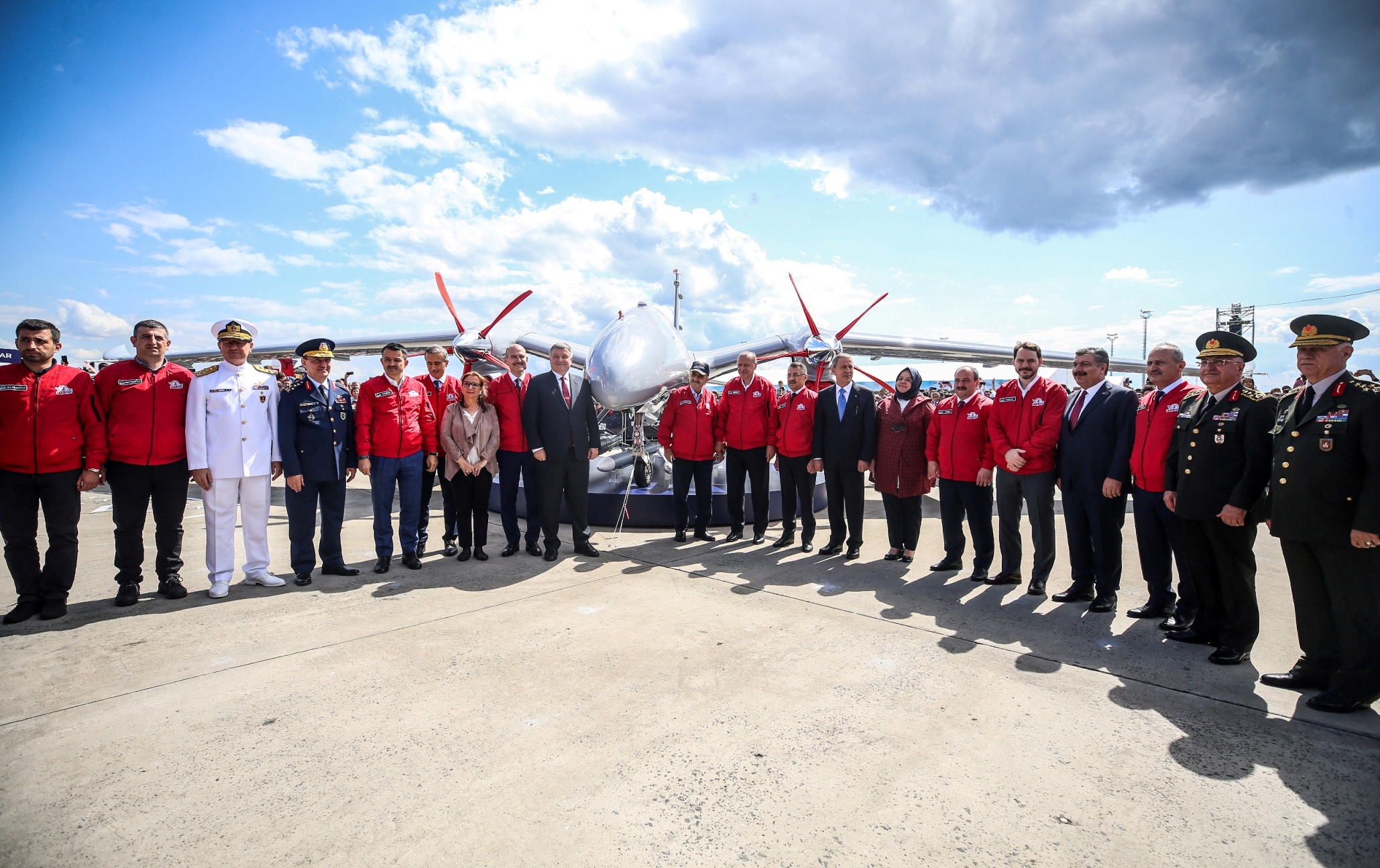 Atatürk Havalimanında düzenlenen etkinlik alanında Erdoğan'ı, Sanayi ve Teknoloji Bakanı Mustafa Varank, Milli Savunma Bakanı Hulusi Akar, İçişleri Bakanı Süleyman Soylu, Milli Eğitim Bakanı Ziya Selçuk, Hazine ve Maliye Bakanı Berat Albayrak, Aile, Çalışma ve Sosyal Hizmetler Bakanı Zehra Zümrüt Selçuk, Tarım ve Orman Bakanı Bekir Pakdemirli, Sağlık Bakanı Fahrettin Koca, Ulaştırma Bakanı Cahit Turhan, İstanbul Valisi Ali Yerlikaya, Baykar Teknik Müdürü ve T3 Vakfı Mütevelli Heyeti Başkanı Selçuk Bayraktar ile diğer ilgililer karşıladı.