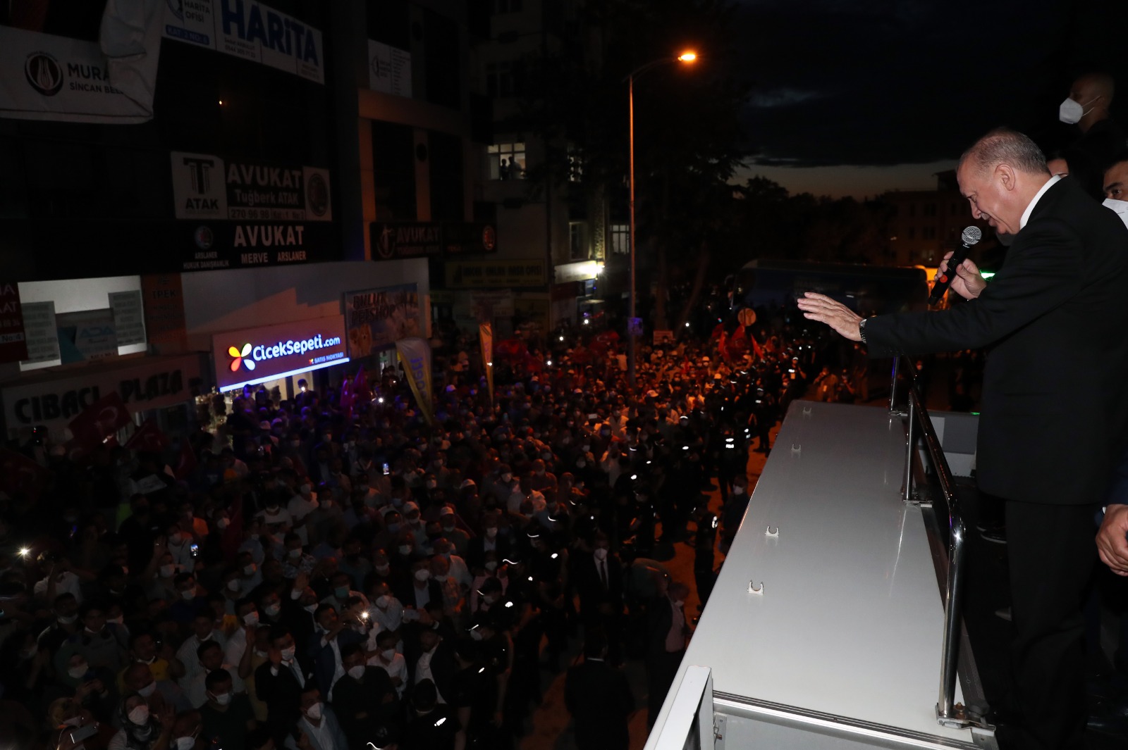 Cumhurbaşkanı Erdoğan, tören sonrası Sincan Belediyesi'ni ziyaret etti. Ziyaretin ardından Cumhurbaşkanı Erdoğan belediye önünde kendisini bekleyen vatandaşlara hitap etti.