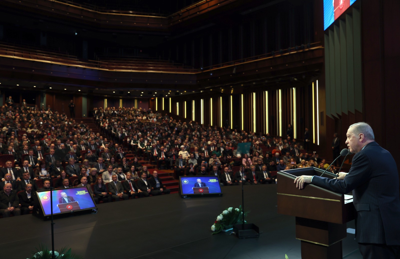 Cumhurbaşkanı Recep Tayyip Erdoğan, Beştepe Millet Kongre ve Kültür Merkezi'nde Tarım ve Orman Bakanlığınca düzenlenen Devlet Su İşleri (DSİ) tarafından yapımı tamamlanan 564 Tesisin Toplu Açılış Töreni'nde konuştu.