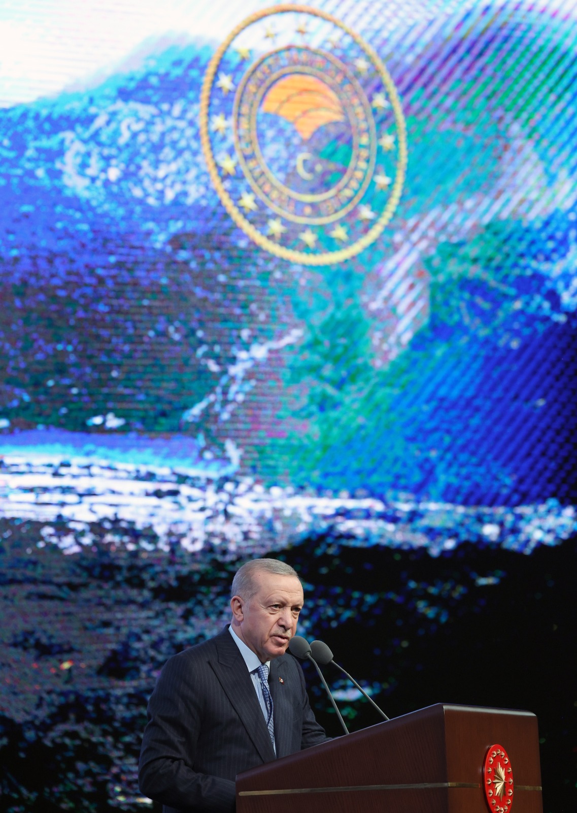 "Açık söylüyorum, temiz su kaynaklarına erişim, bir beka meselesidir. Pek çok alanda gecikme telafi edilebilir ama su konusunda yaşanacak en ufak bir gecikme, telafisi imkânsız sonuçlar doğuracaktır. Türkiye olarak, bu anlayışla geniş bir yelpazede kritik adımlar atıyoruz. İklim kriziyle mücadeleye en fazla destek veren ülkeler arasındayız. Ağaçlandırma seferberliği ve tasarrufu teşvik eden kampanyalarımızla toplumsal farkındalığı artırmaya çalışıyoruz. Aynı şekilde 'Sıfır Atık' projemizle israfı önlemeyi, kaynaklarımızı daha verimli kullanmayı amaçlıyoruz. 2053 yılı için belirlediğimiz net sıfır emisyon hedefimize ulaşıncaya kadar bu mücadelemizi kararlıkla devam ettireceğiz."