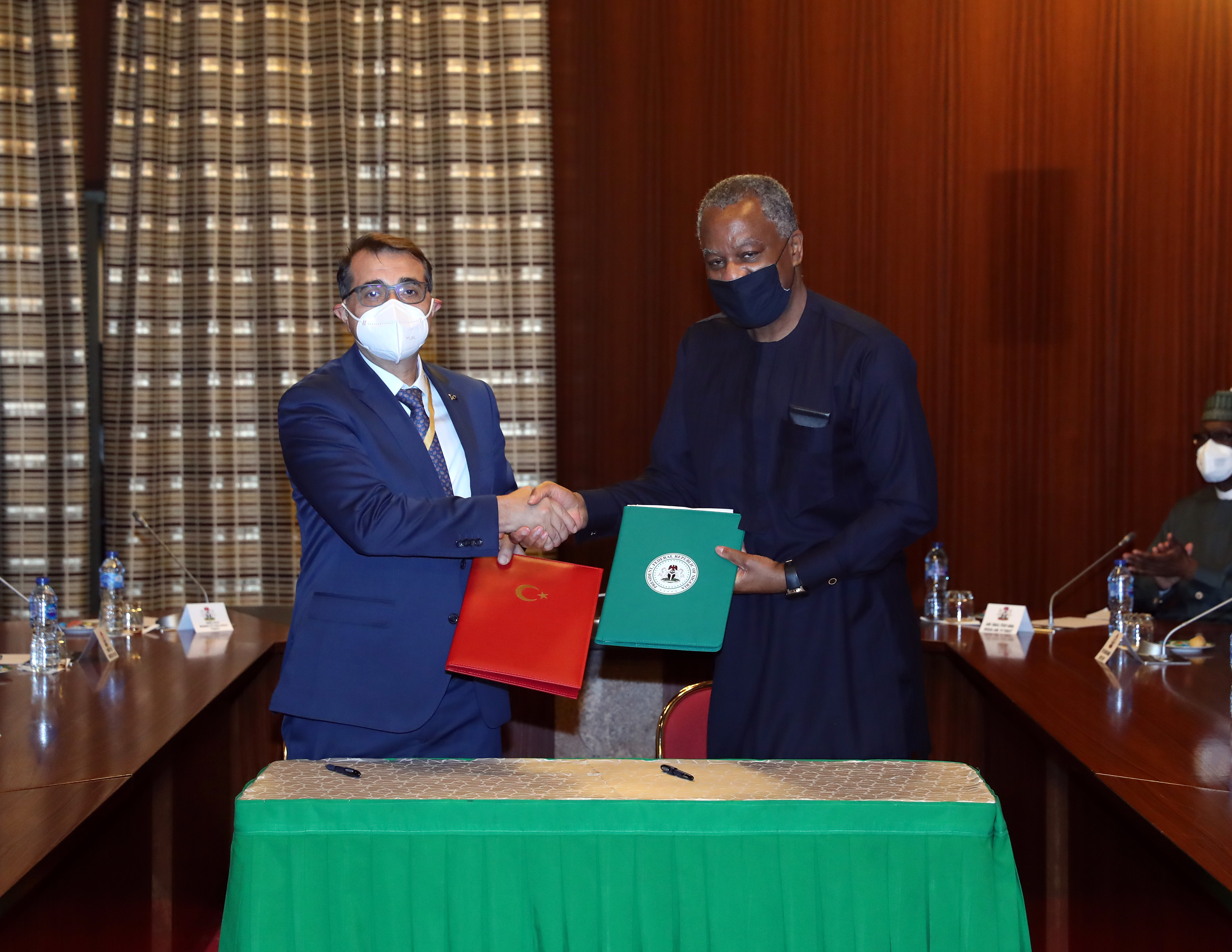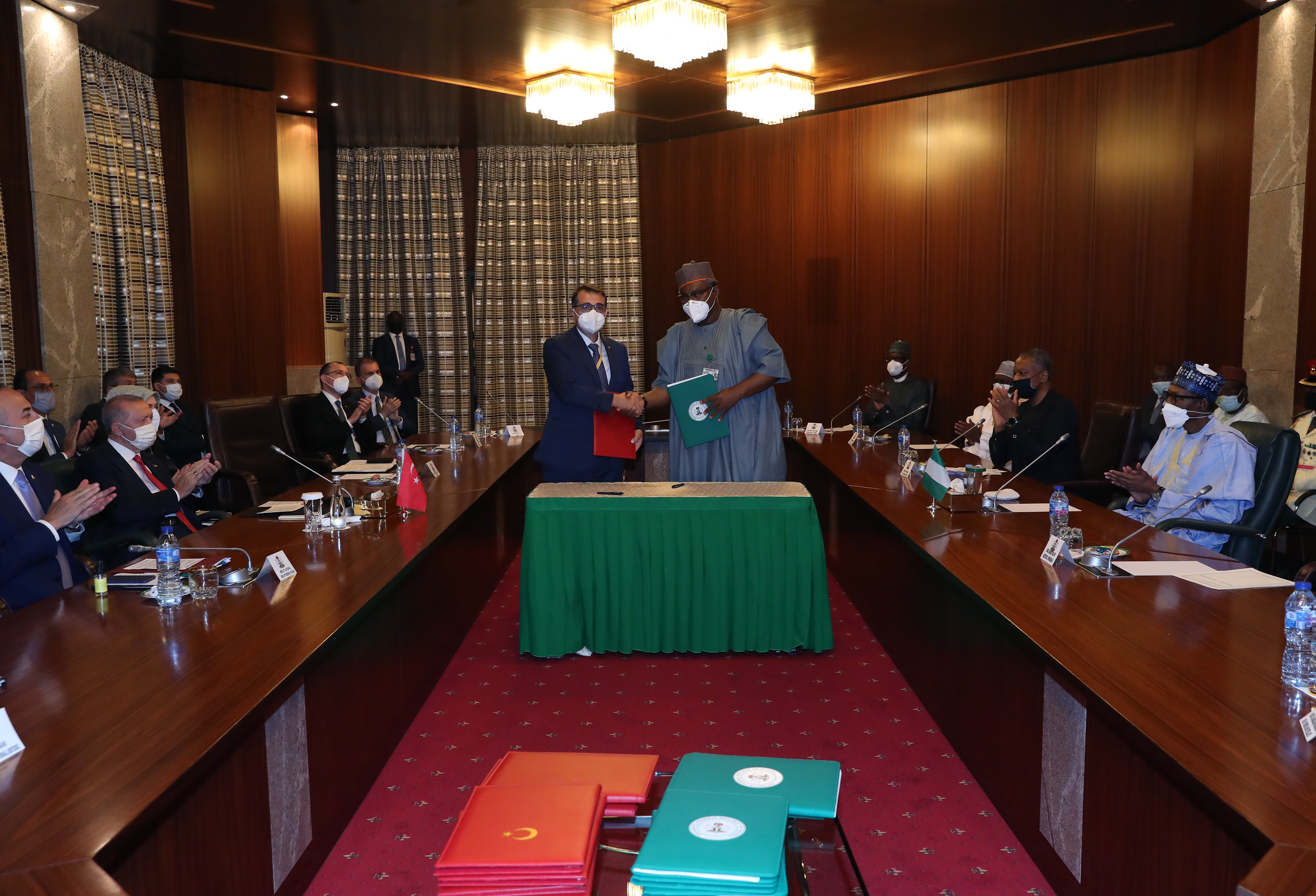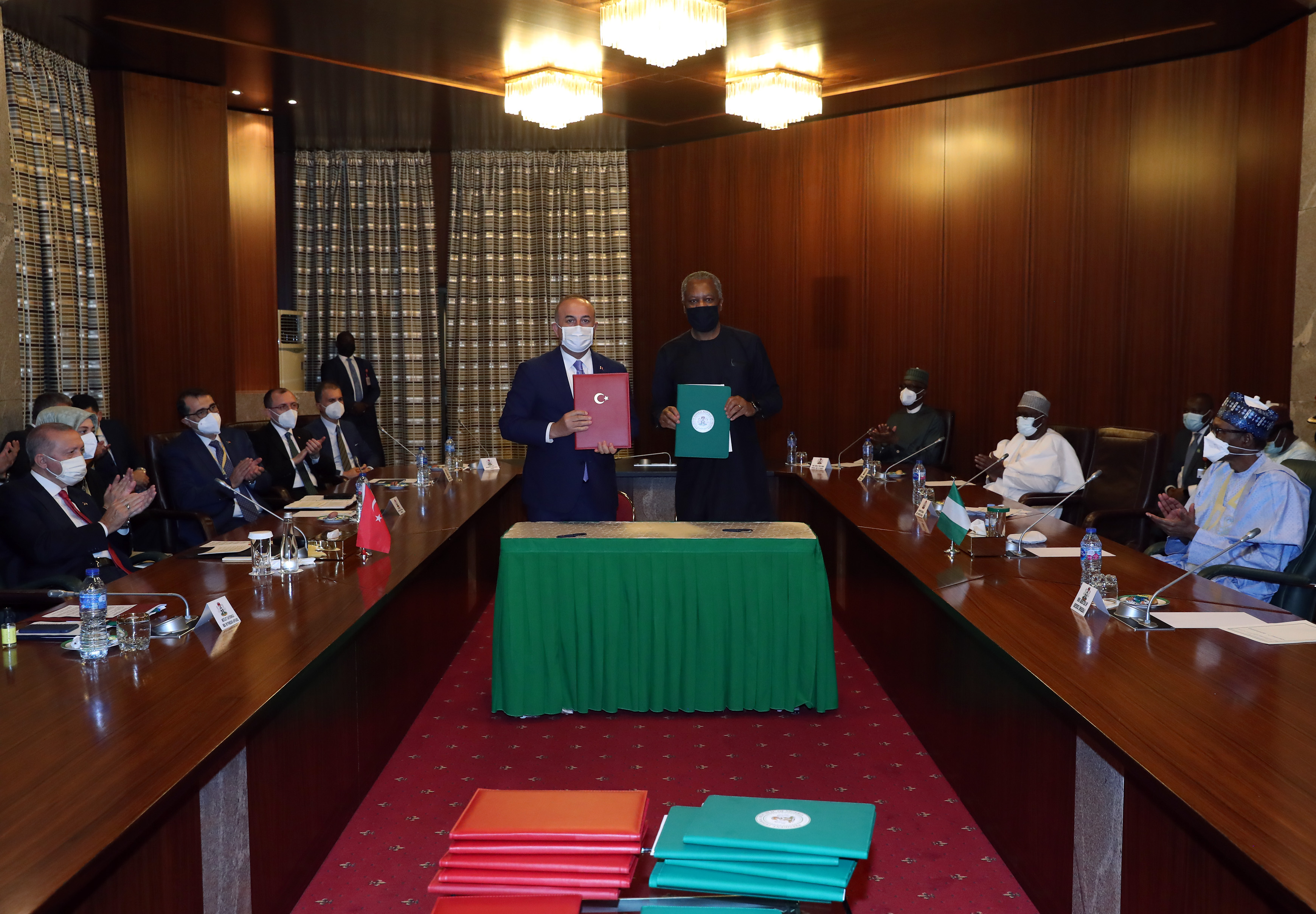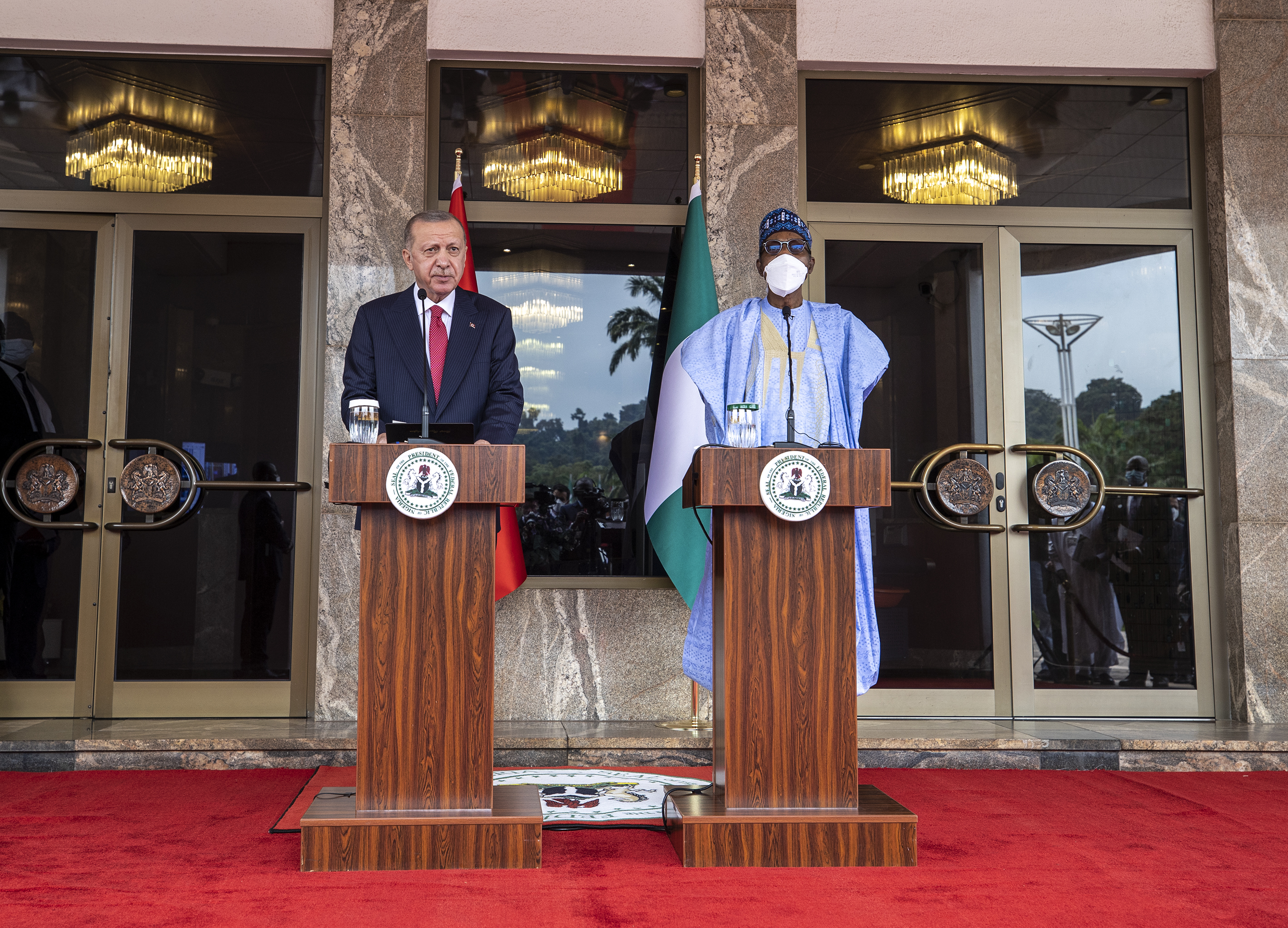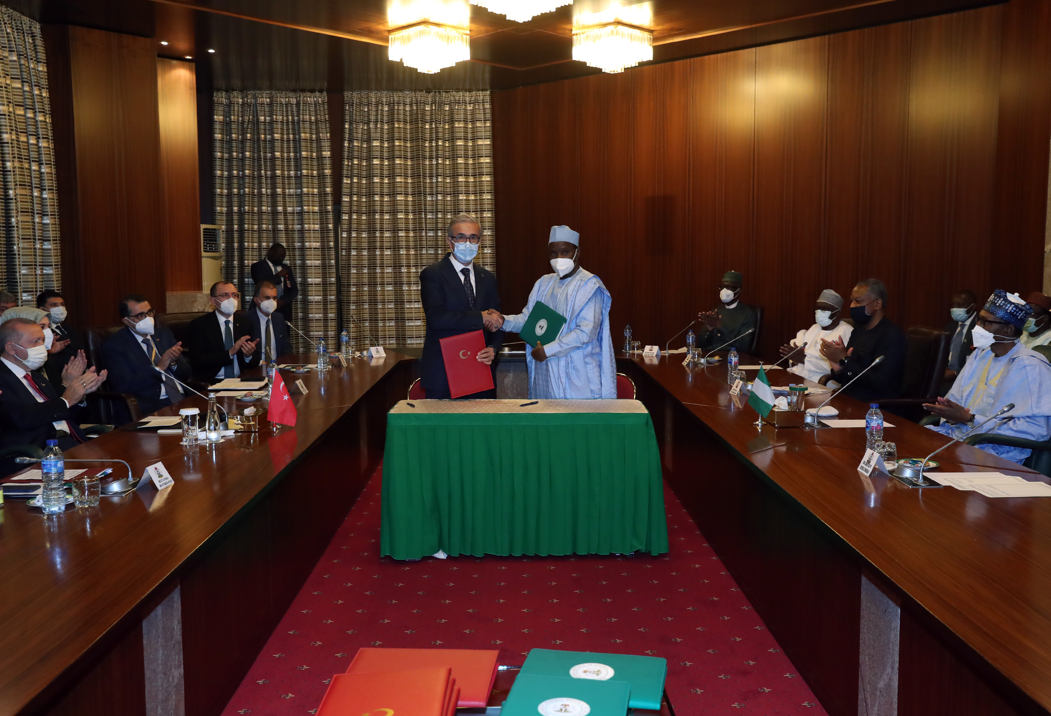 Cumhurbaşkanı Recep Tayyip Erdoğan, "Terör örgütleri, silahlı çeteler ve deniz haydutlarıyla mücadele yürüten Nijerya ile askeri savunma ve güvenlik konularında iş birliğimizi güçlendiriyoruz." dedi.
