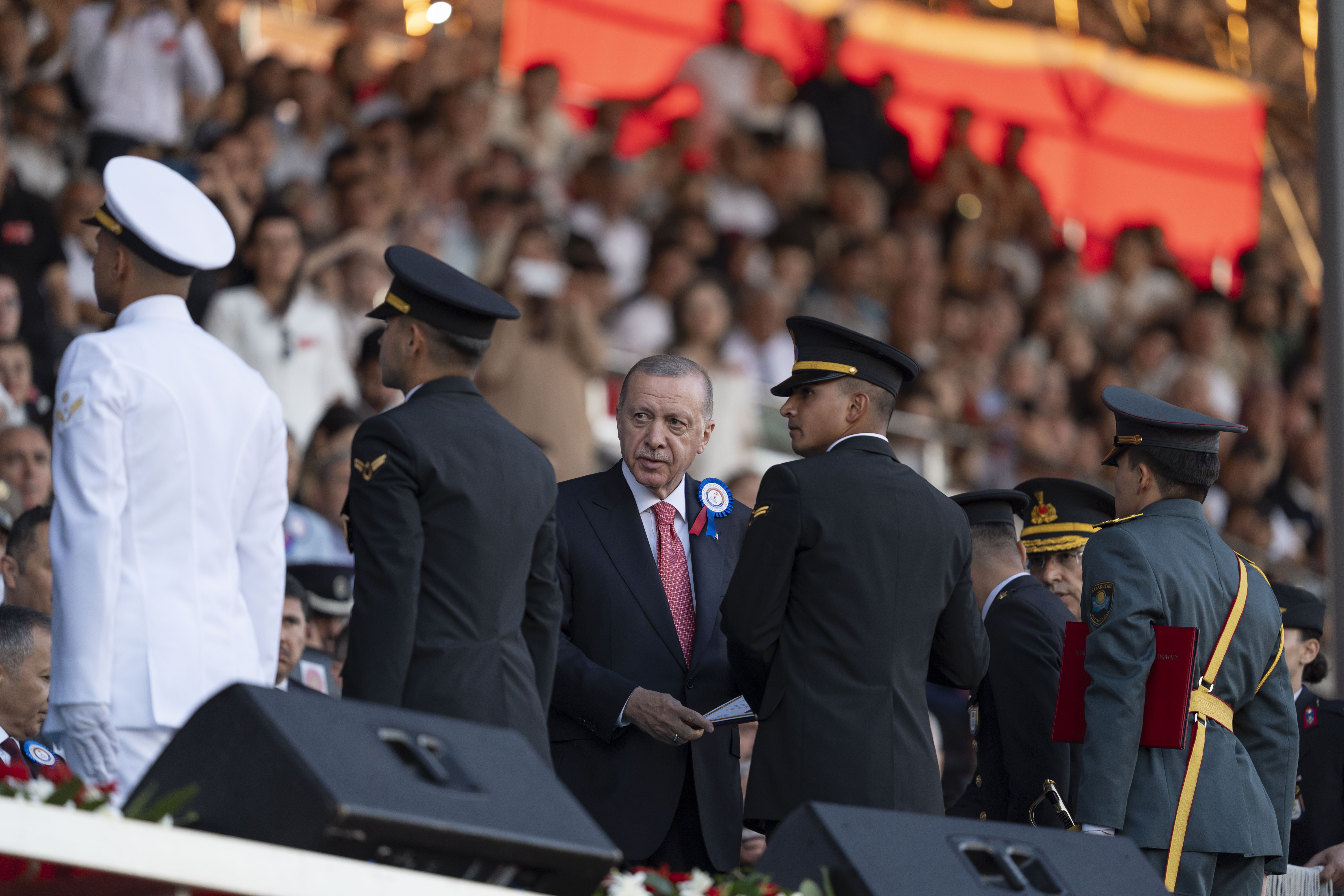 Başta dereceye girenler olmak üzere, 2023-2024 akademik yılını başarıyla tamamlayan tüm öğrencileri tebrik eden Cumhurbaşkanı Erdoğan, "Eğitim hayatınız boyunca gerek mesleki olarak gerekse diğer hususlarda sizlere destek olan hocalarımıza, komutanlarımıza, emri geçen herkese teşekkür ediyorum. Sizleri büyük bir emekle, çileyle, fedakârlıkla büyüten, vatan, millet ve devlet aşkıyla yetiştiren, ilayı kelimetullah sevdasını gönüllerinize nakış nakış işleyen ailelerinize şükranlarımı sunuyor, Allah onlardan razı olsun diyorum." diye konuştu.