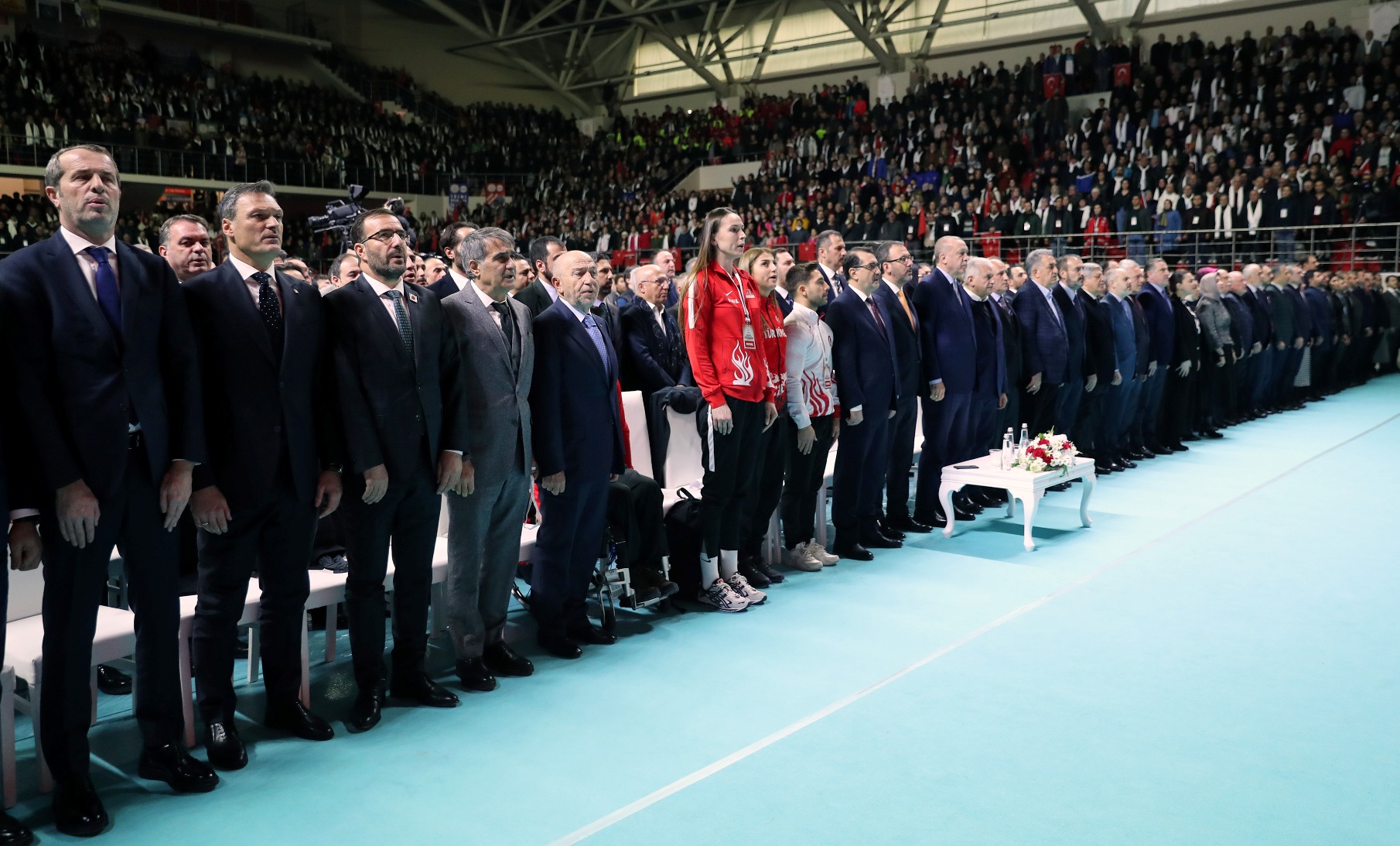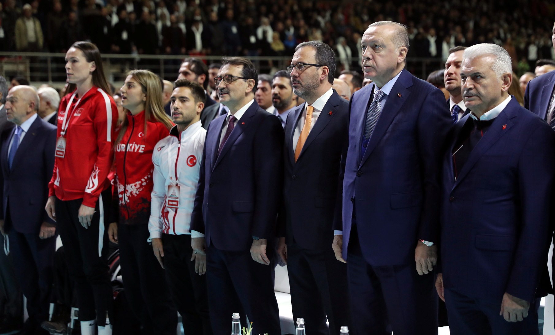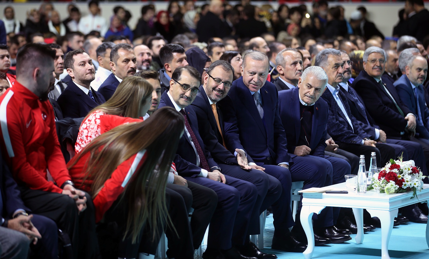 "Şu ana kadar ülke genelinde 2 bin 425 mahalle ve okul sahası inşa ettik. Bunlara ilave olarak, 1018 mahalle tipi sahamızın yapımı da sürüyor. İstanbulumuzun da her ilçesini yüzme havuzları, kortlar, atletizm pistleri, basketbol, futbol ve voleybol sahalarıyla donatmaya devam edeceğiz. Tabii bu vesileyle Voleybol Milli Takımımızı kutluyorum, tebrik ediyorum. Zira Dünya Şampiyonasına katılma vizesini de aldılar. Bu sahalarda ter döken evlatlarımızın arasından geleceğin şampiyonları çıkacak. Diğer yandan Türkiye Olimpiyat Hazırlık Merkezlerimizi geliştiriyoruz. Hala 22 ilimizde faaliyetlerine devam eden Türkiye Olimpiyat Hazırlık Merkezleri'nde 696'sı gündüzlü, 439'u yatılı olmak üzere, toplam 1135 sporcumuz bulunuyor. Buralarda yetişen sporcularımız dünyanın dört bir yanında ülkemizi temsil ediyor. Biz daima gençlere güvendik ve bugün de güveniyoruz. Bunu da lafta bırakmadık. Yaptığımız icraatlarla açıkça gösterdik. Gençlerimizin potansiyelini en üst seviyede kullanabilmesi için her alanda kendilerine destek oluyoruz. Gençlik merkezlerimizi bu amaçla kurduk ve yaygınlaştırıyoruz. Hala 81 ilimizde 327 gençlik merkezimiz faaliyet gösteriyor. Buralarda gençlerimizle birlikte geleceğimiz için haller kuruyor, birlikte düşünüyor, çalışıyor ve birlikte üretiyoruz. Mutlu ve güçlü bireyler olmalarına katkı sağlamak amacıyla sosyal, kültürel, sportif ve gönüllü faaliyetler gerçekleştiriyoruz."