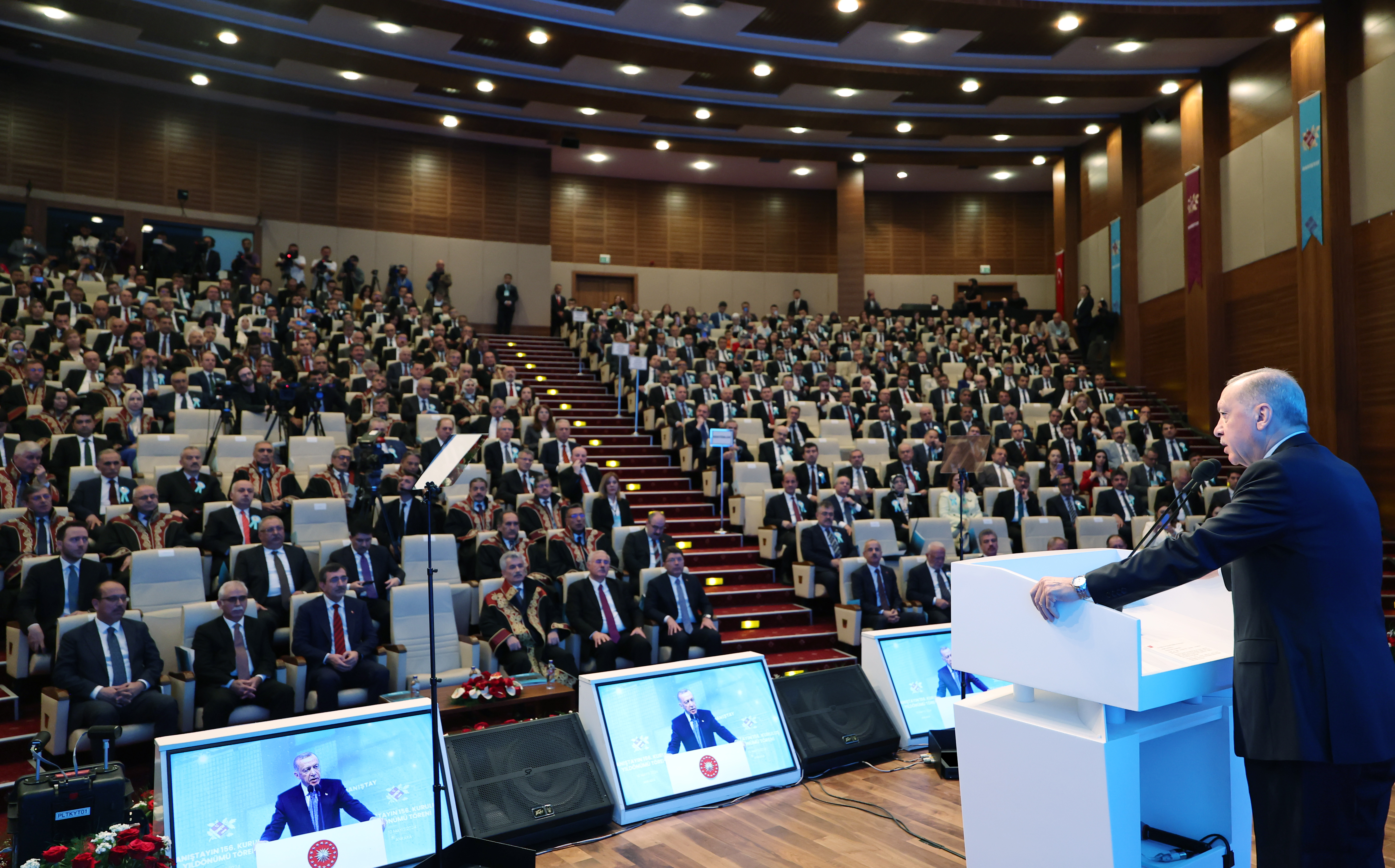 Cumhurbaşkanı Erdoğan, 6 Şubat asrın felaketi sonrasında deprem bölgesindeki idari yargı faaliyetlerinin aksamaması için gerekli tüm tedbirlerin alındığını dile getirerek, vatandaşı idare karşısında koruyan, idari yargının işleyişini hızlandıran, yargı mensuplarının hak ve imkanlarını artıran daha pek çok düzenlemeyi son 21 yılda hayata geçirdiklerini söyledi.